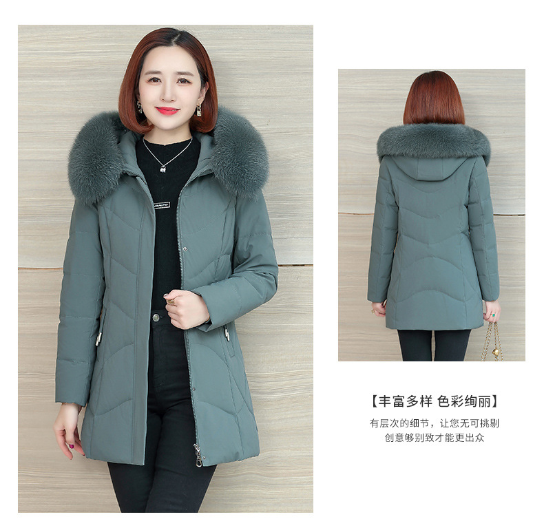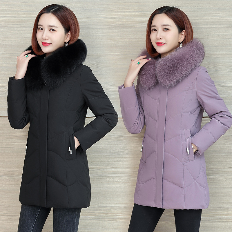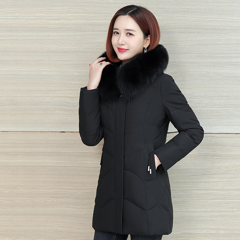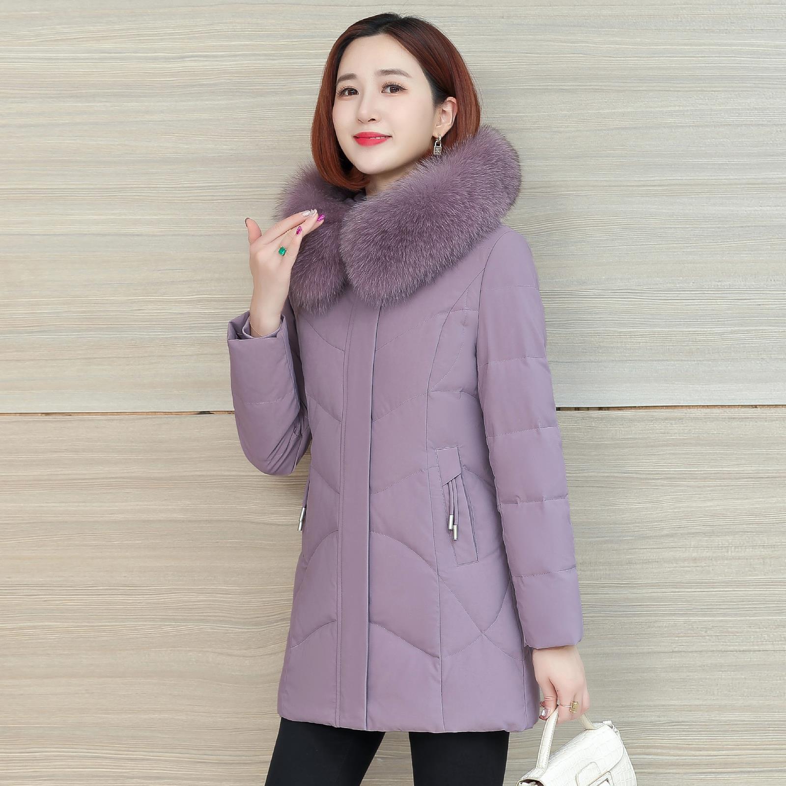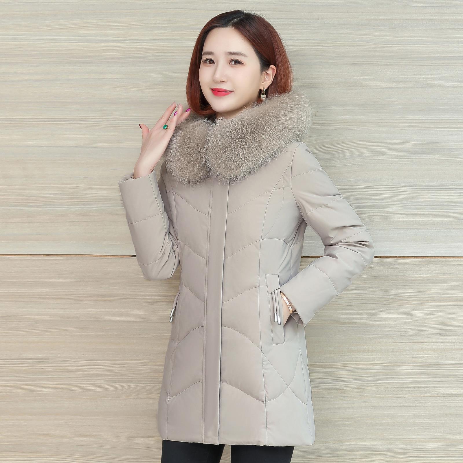 가벼운 럭셔리 빅 폭스 모피 다운 재킷 여성의 2024 새로운 슬림 핏 슬리밍 중년 어머니 따뜻한 화이트 덕 다운 재킷