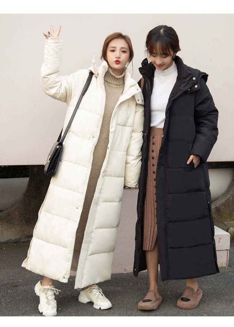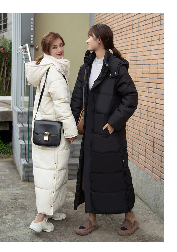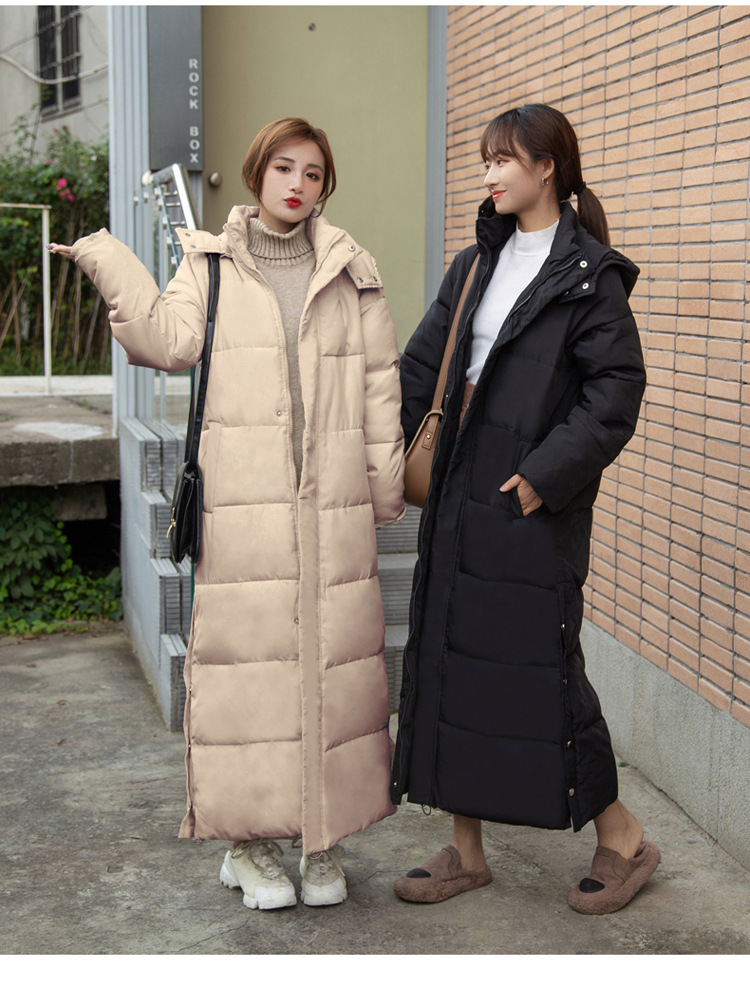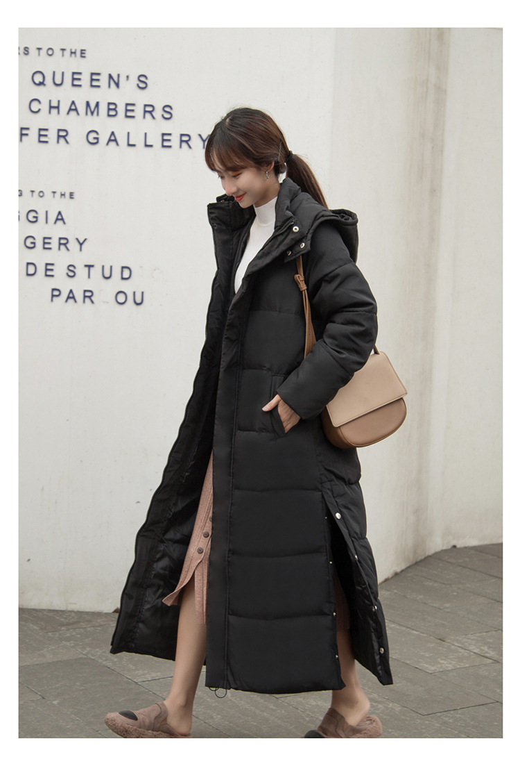 여성용 롱 다운 코튼 패딩 재킷, 무릎 아래 길이, 2025 겨울 신상, 한국 스타일 슬림 핏 다운 코튼 후드 패딩 재킷, 두꺼운