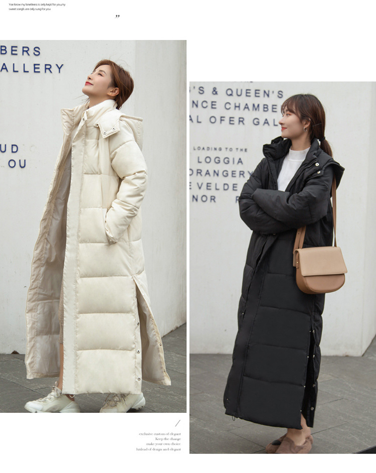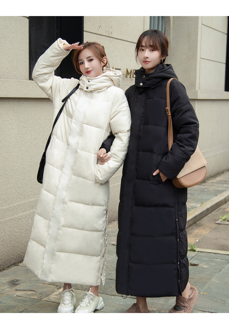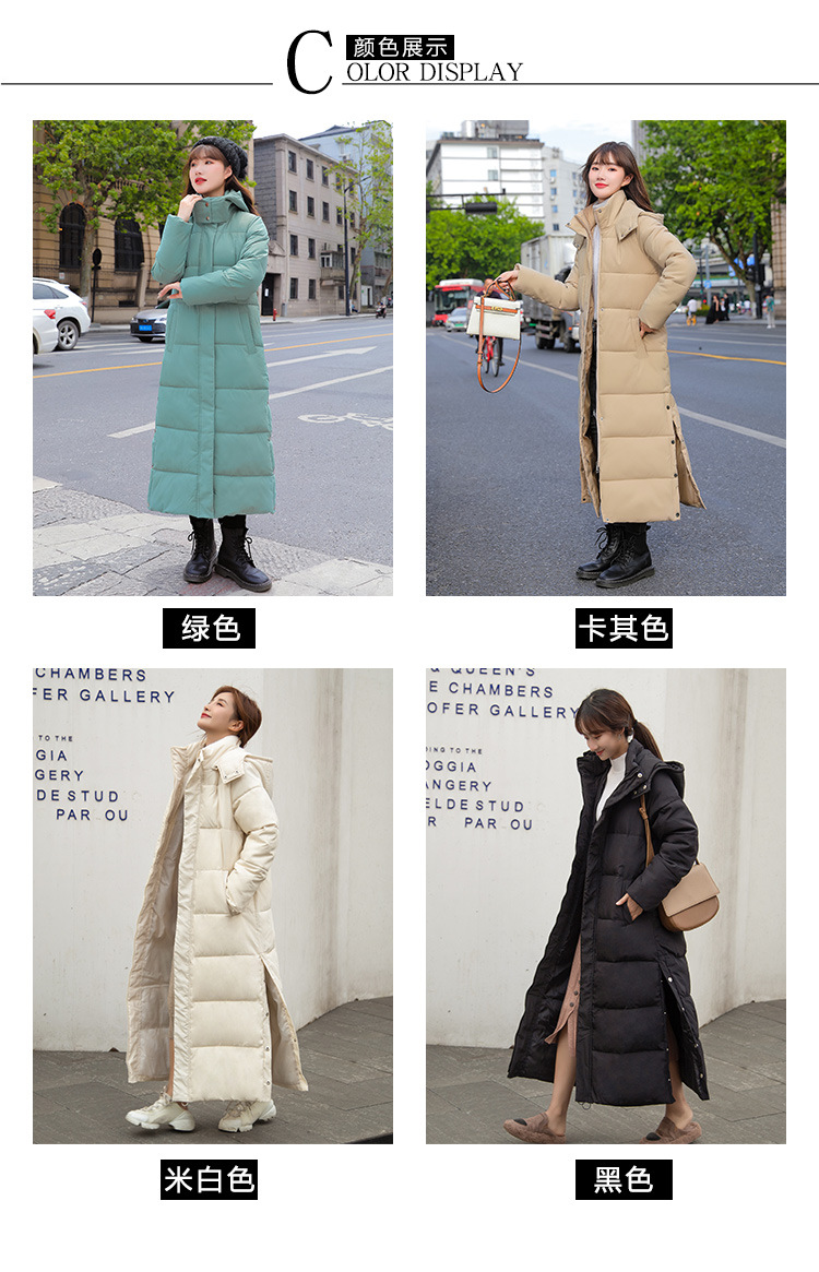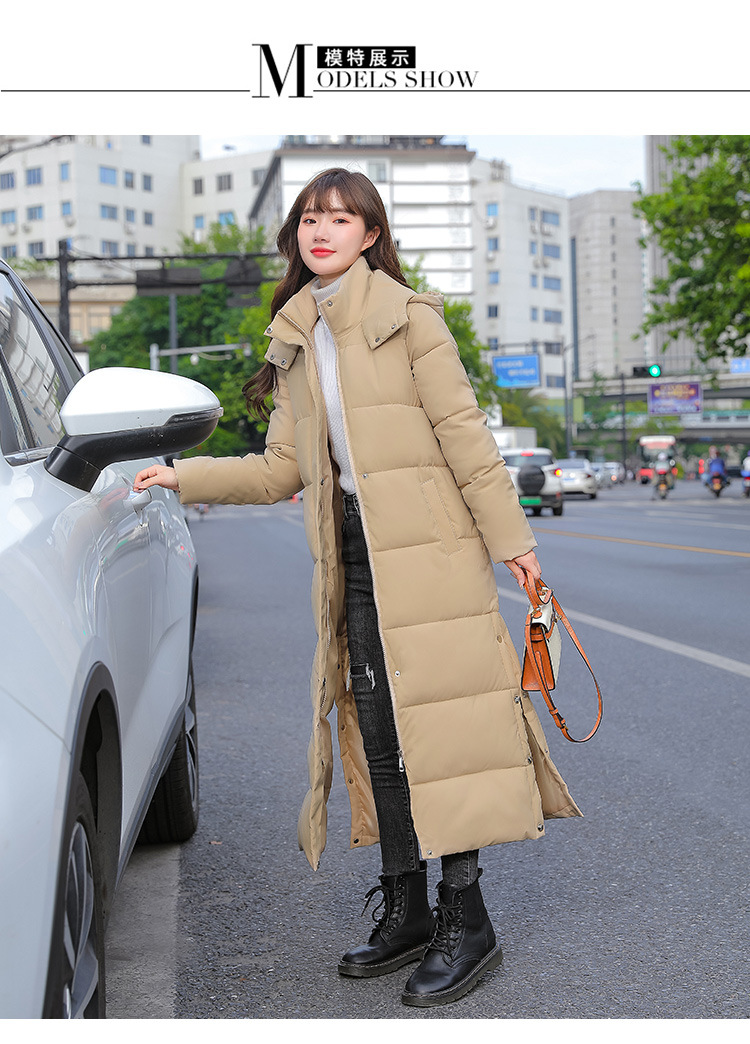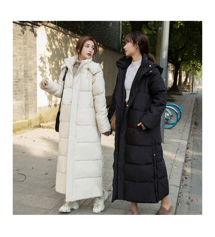 여성용 롱 다운 코튼 패딩 재킷, 무릎 아래 길이, 2025 겨울 신상, 한국 스타일 슬림 핏 다운 코튼 후드 패딩 재킷, 두꺼운