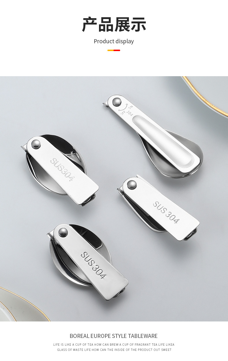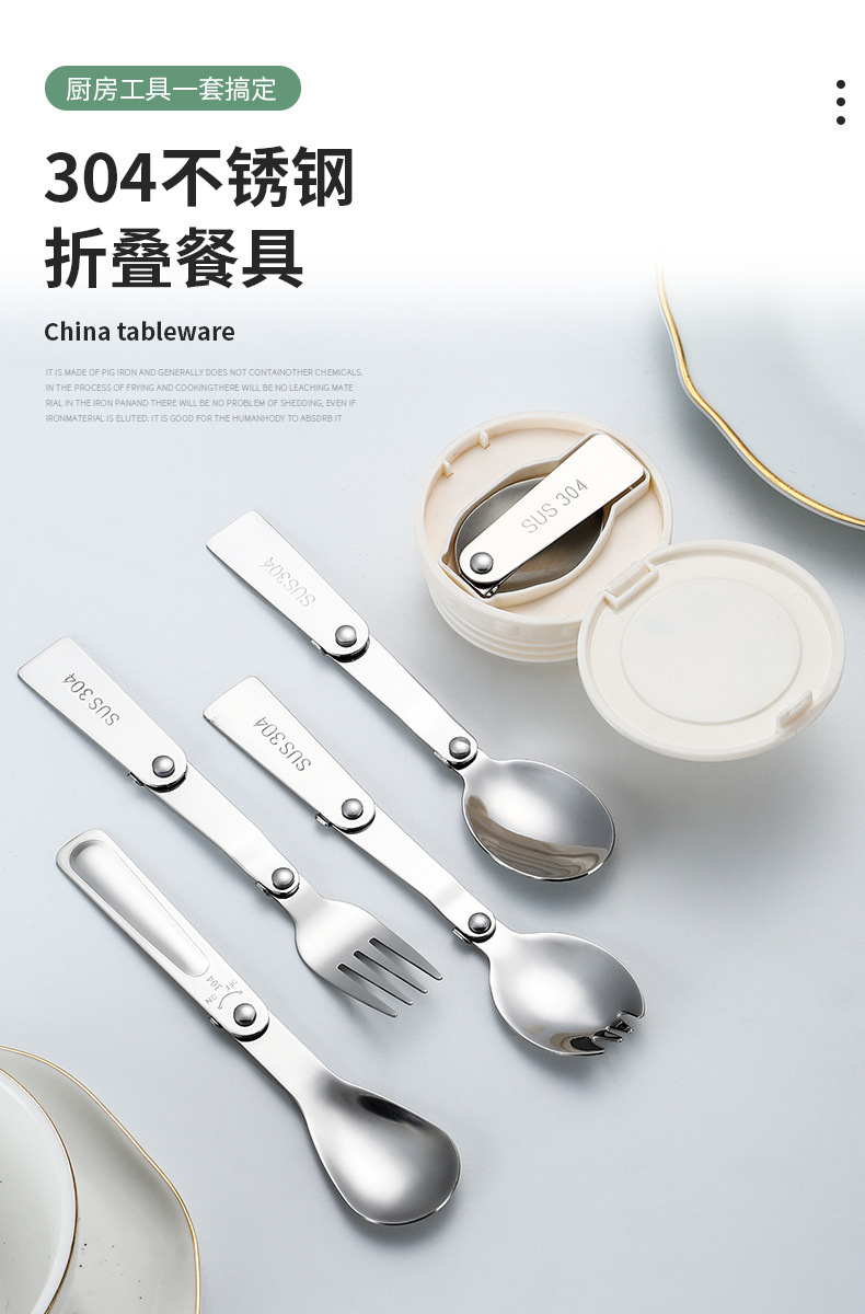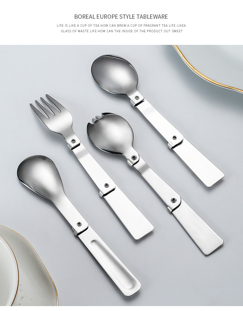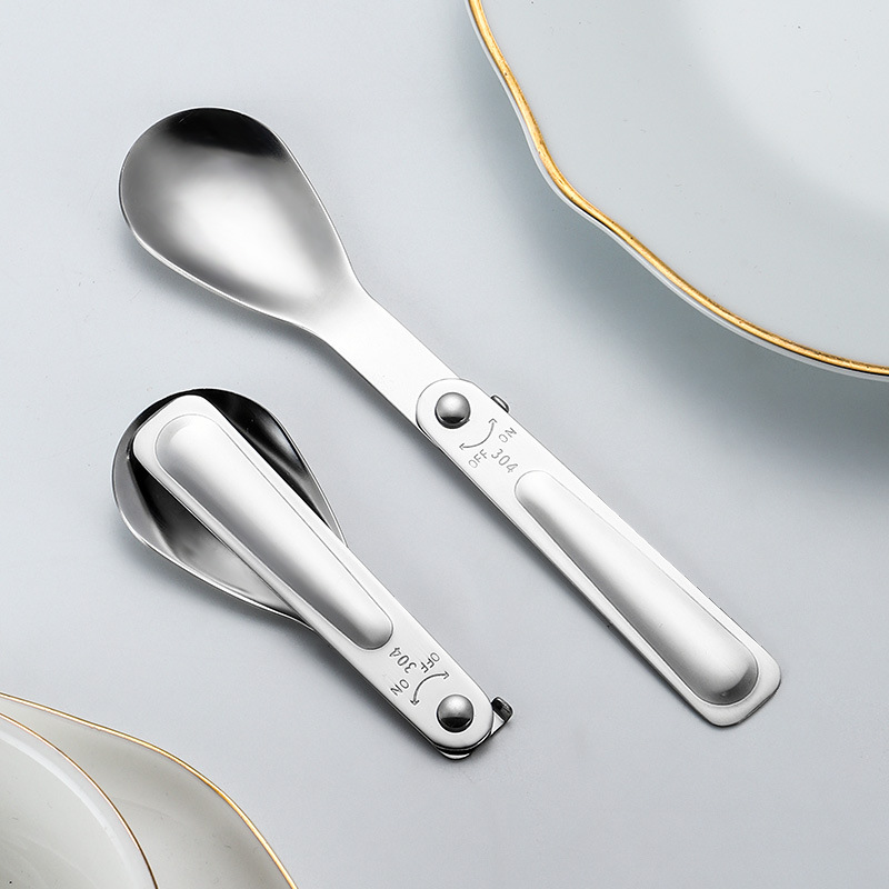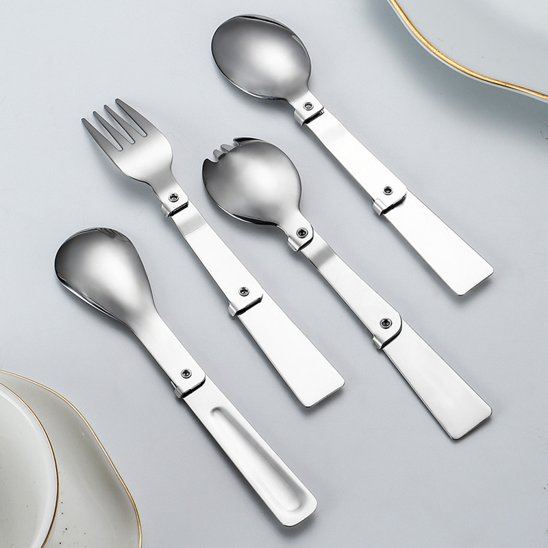 공장 직접 판매 304 # 스테인레스 스틸 접이식 스푼 야외 식기 휴대용 샐러드 스푼 포크 커피 스푼 미니 스푼