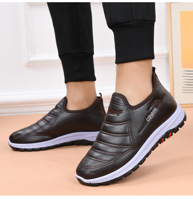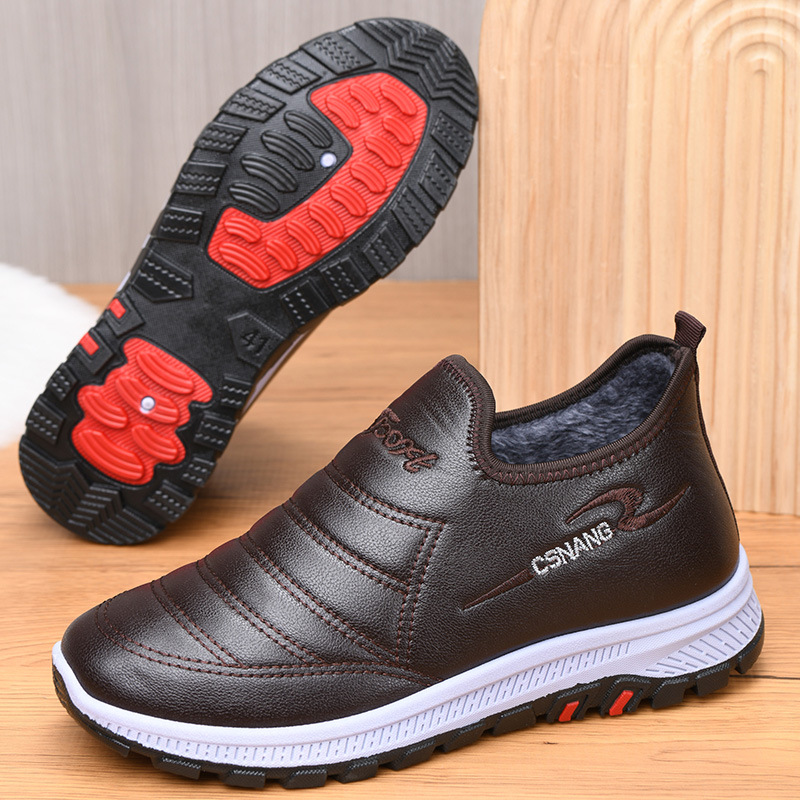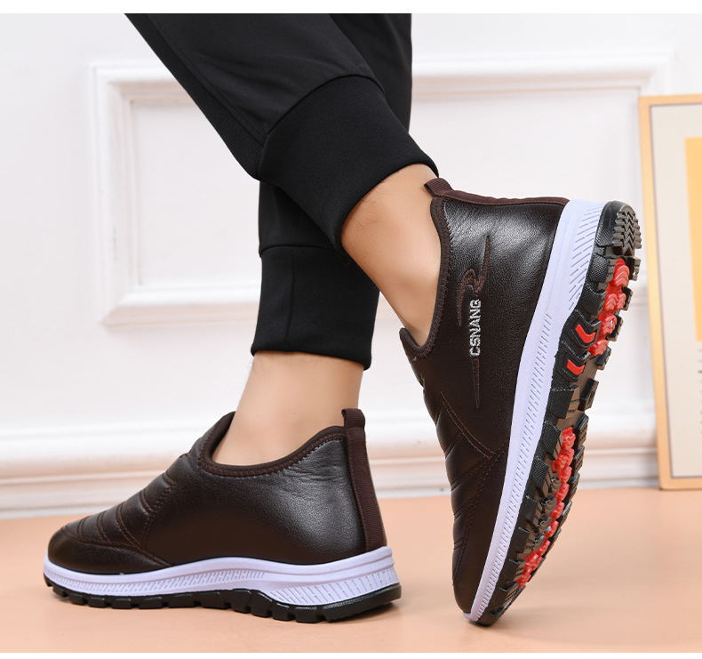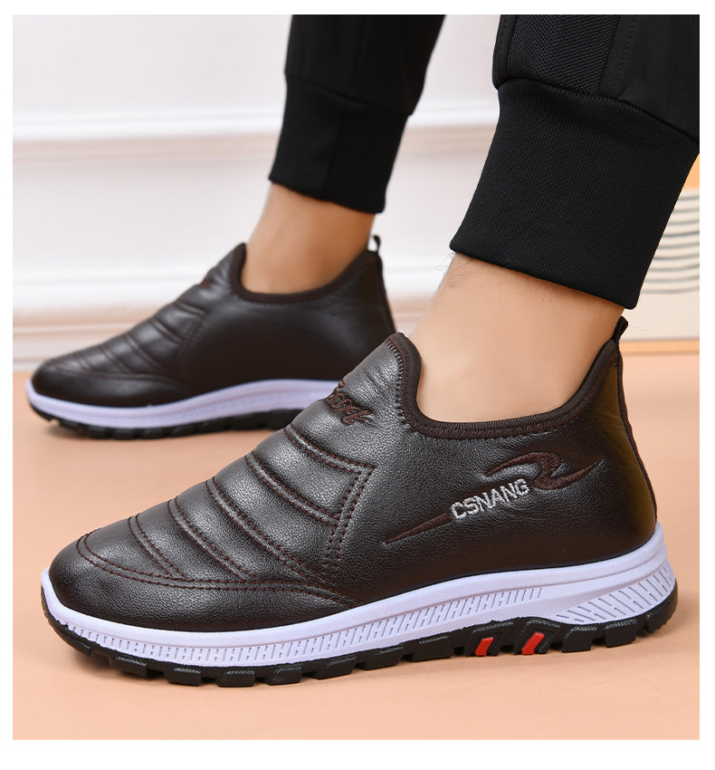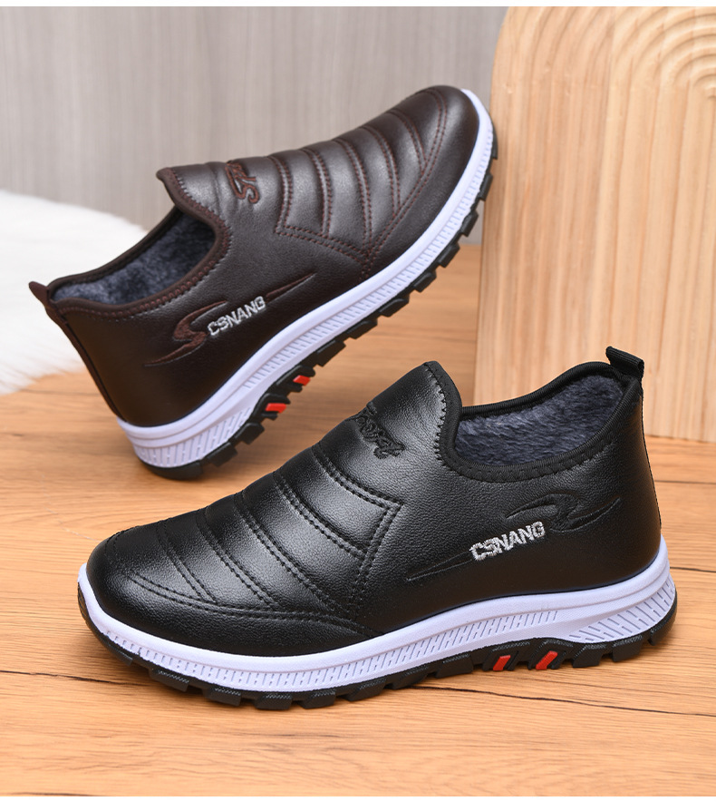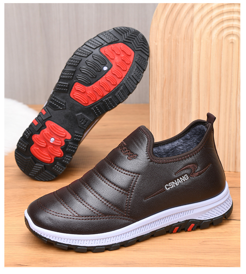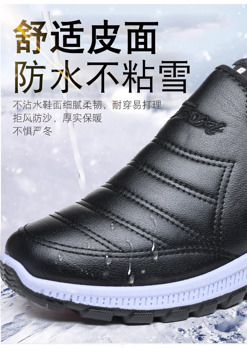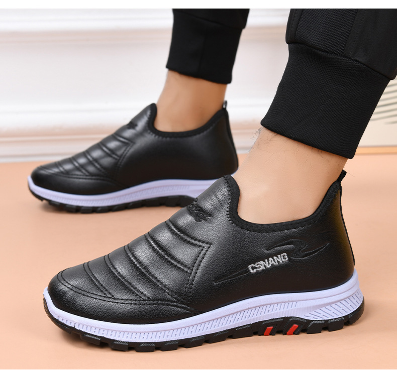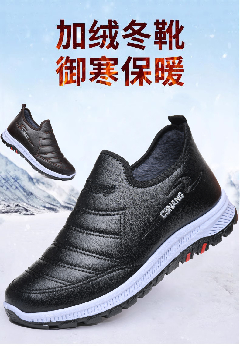 중년 및 노인 면화 2024 겨울 새로운 PU 기모 따뜻한 면화 부츠 도매 남성 원 페달 캐주얼 스노우 부츠