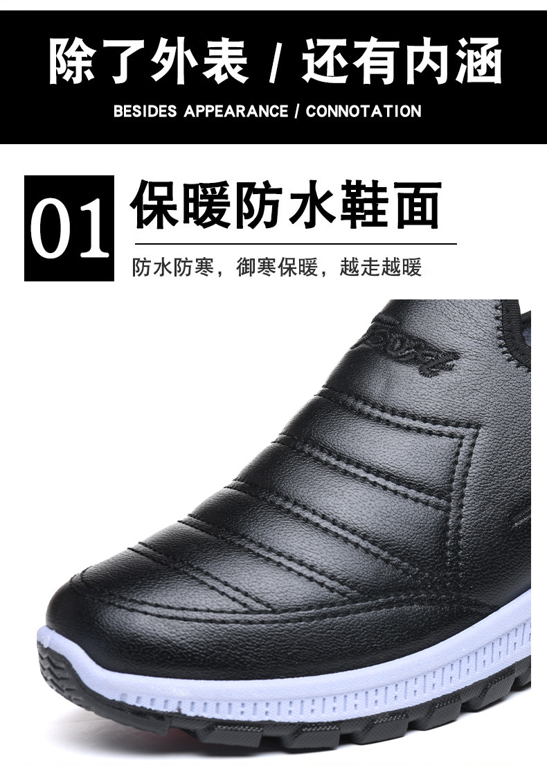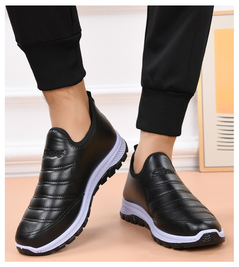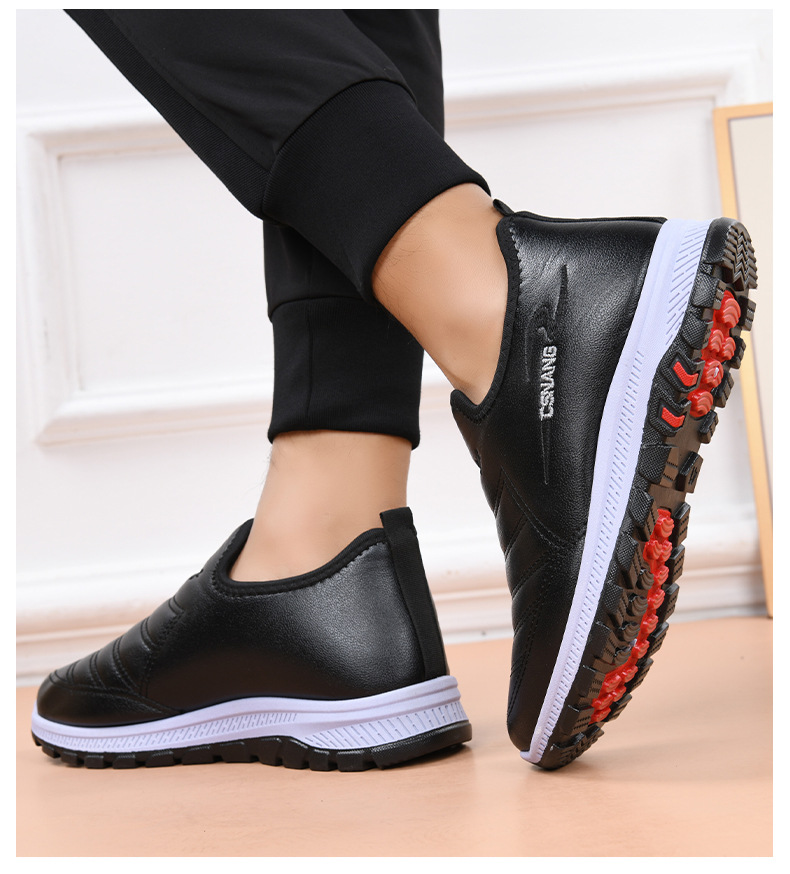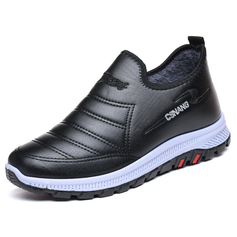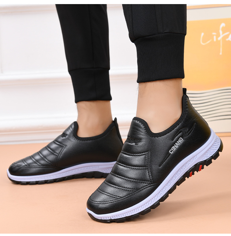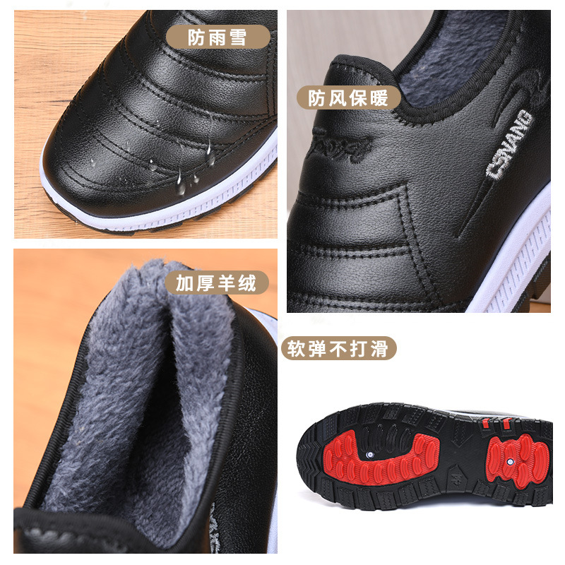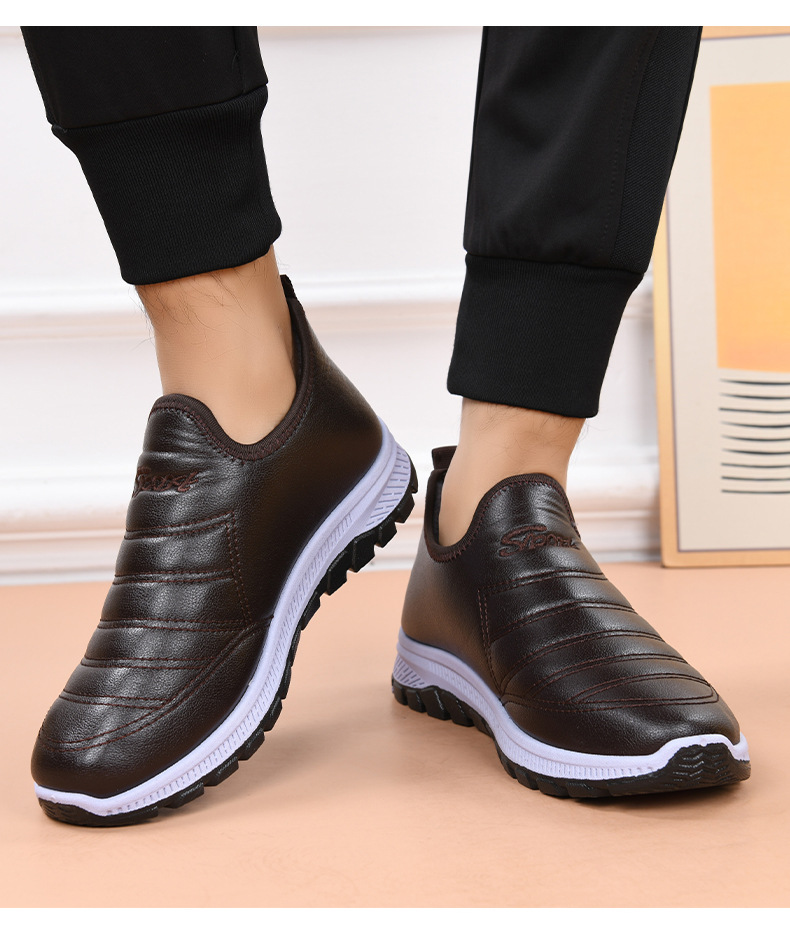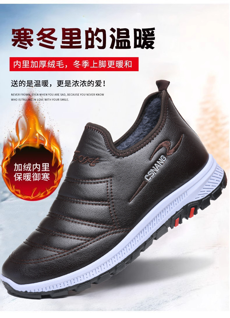 중년 및 노인 면화 2024 겨울 새로운 PU 기모 따뜻한 면화 부츠 도매 남성 원 페달 캐주얼 스노우 부츠