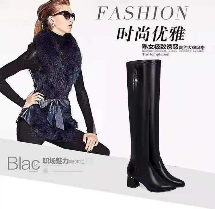 24 크로스보더 가을 겨울 캐주얼 롱부츠, 무릎 위까지 오는 가죽 부츠, 유럽 및 미국 스타일, 내마모성, 다용도 여성 부츠 도매, 슬림한 유럽 및 미국 스타일