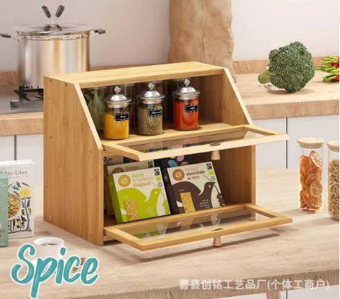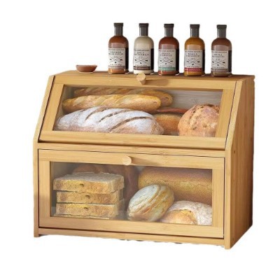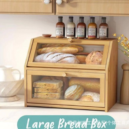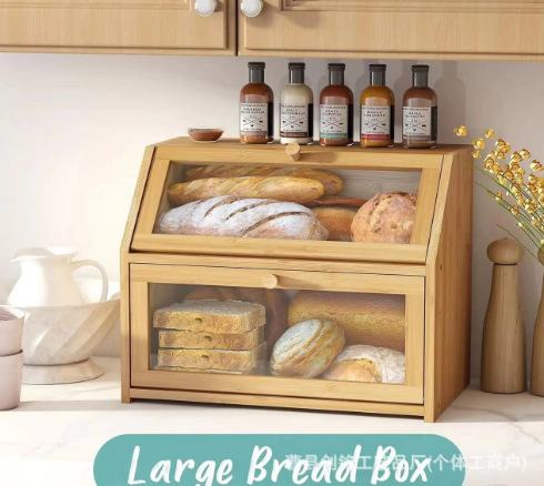 나무 빵 상자 뚜껑이있는 주방 식품 보관 상자 디저트 상자 다기능 대용량 스낵 보관 상자