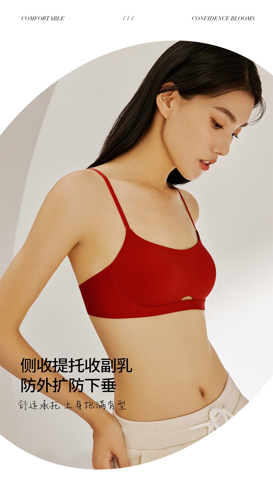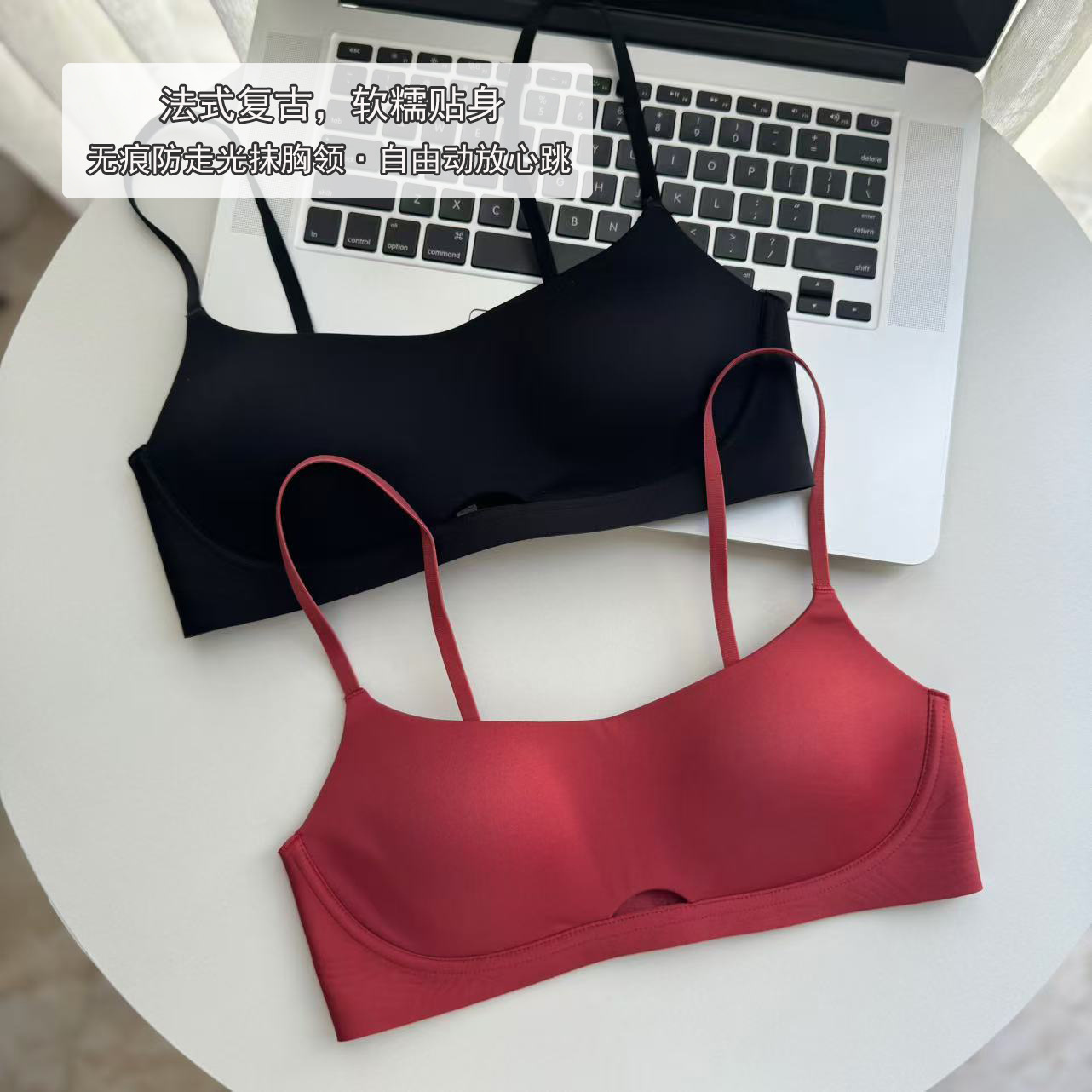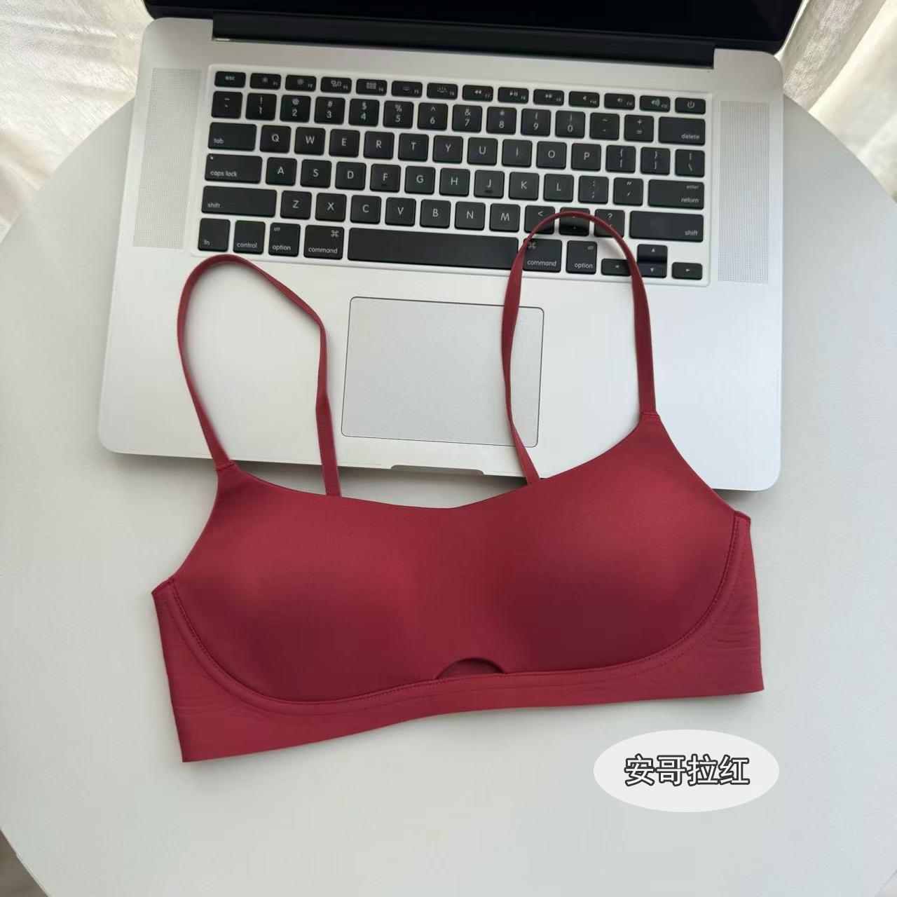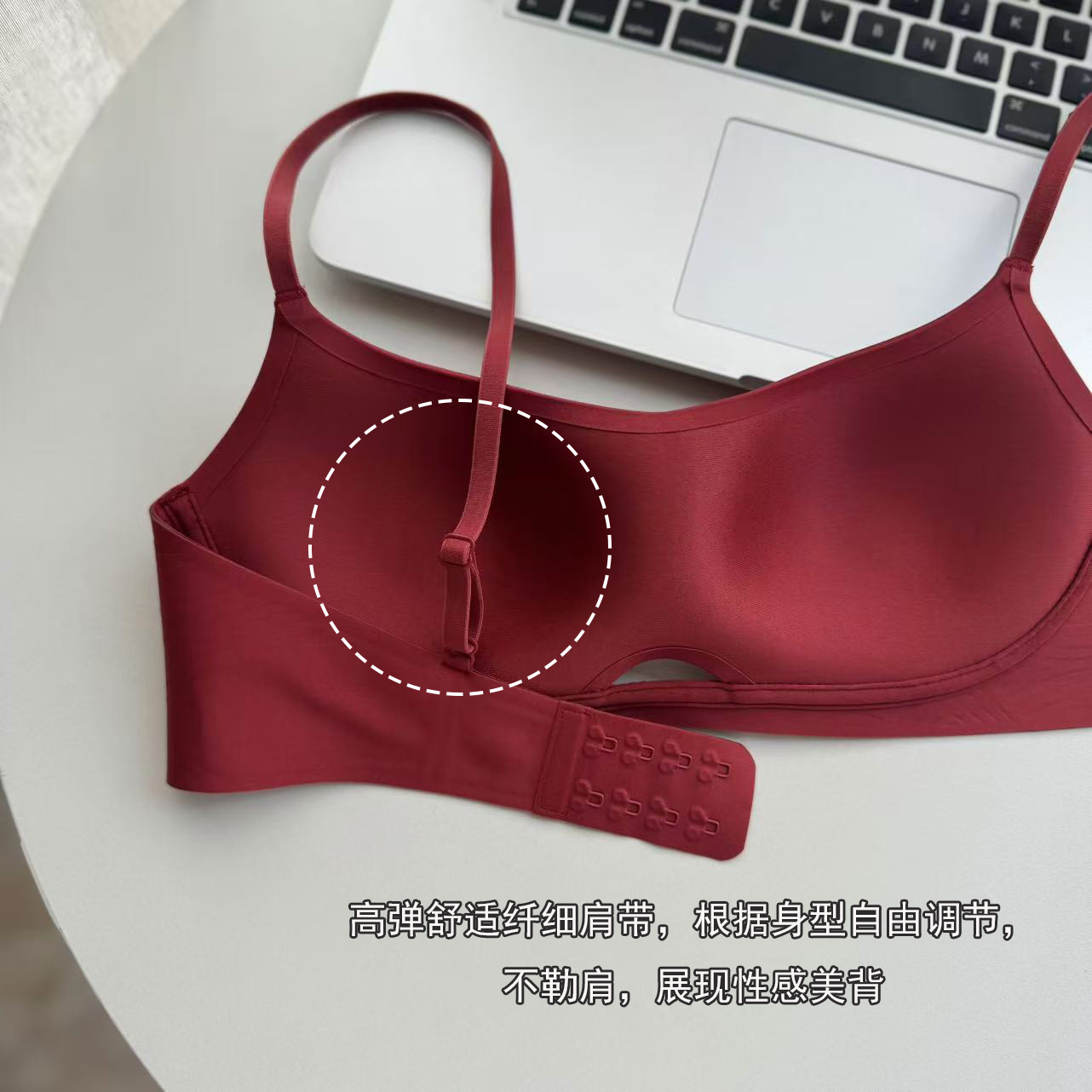 통기성이 좋고 부드러우며 자국이 남지 않는 누드 느낌의 얇은 컵 젤리 스트립 여성용 작은 가슴 레드 컬러 푸쉬업 처짐 방지 브라 (본명년용)