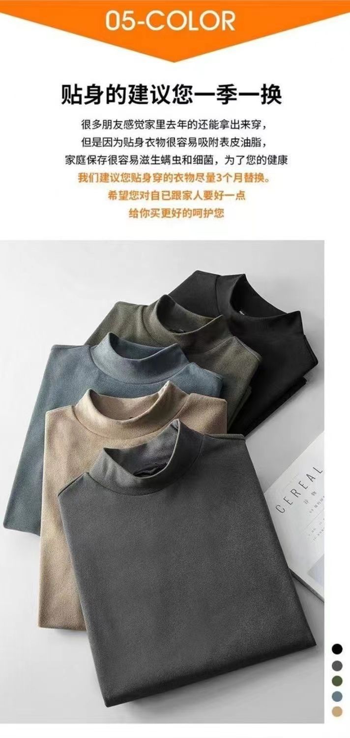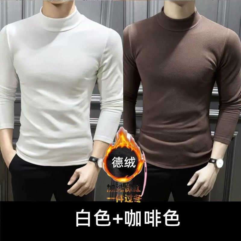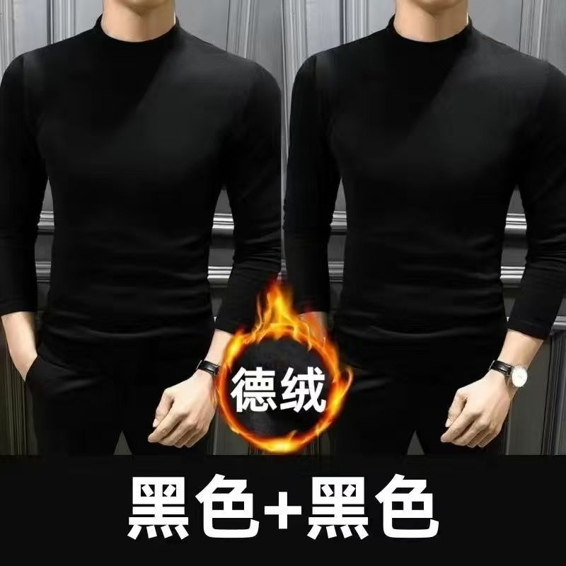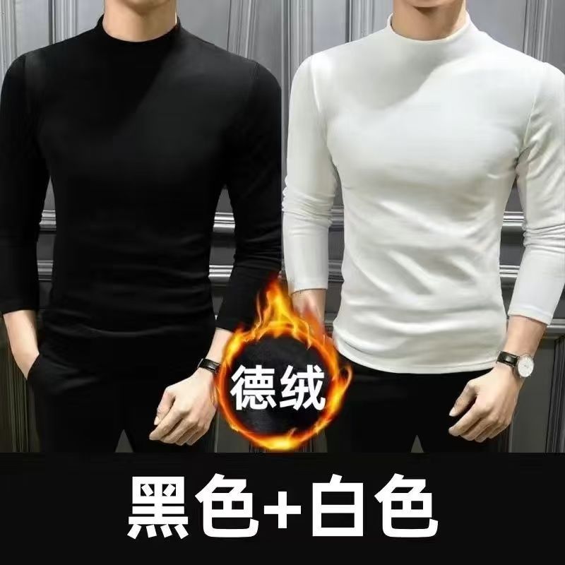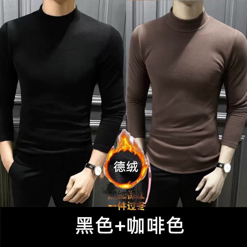양면 벨벳베이스 셔츠 남자 겨울 세미 하이 칼라 올 매치 따뜻한 무제한 긴 소매 슬림베이스 셔츠 12