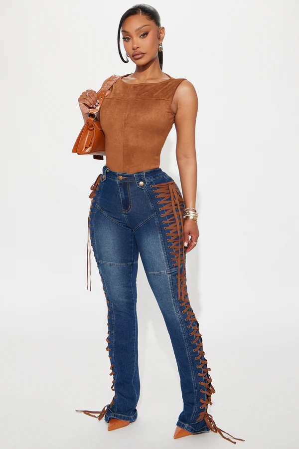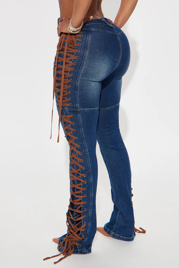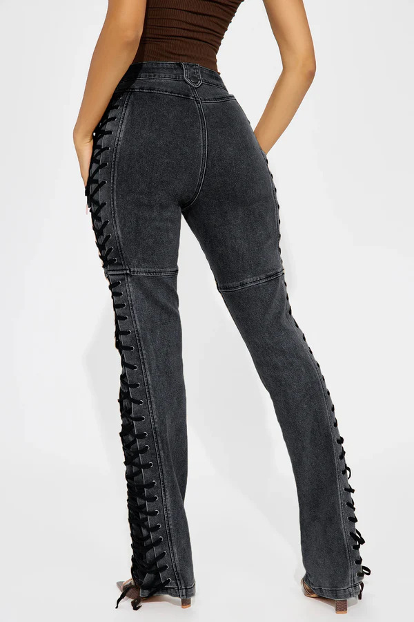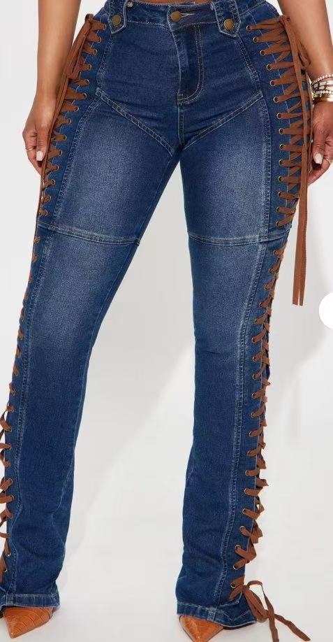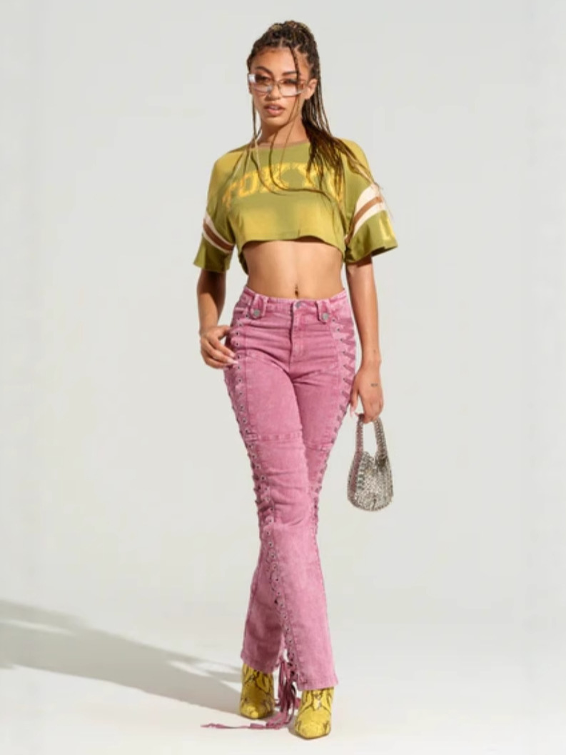 INS 독립 스테이션 유럽과 미국 패션 새로운 여성 패션 스트랩 그린 핫 소녀 청바지 바지