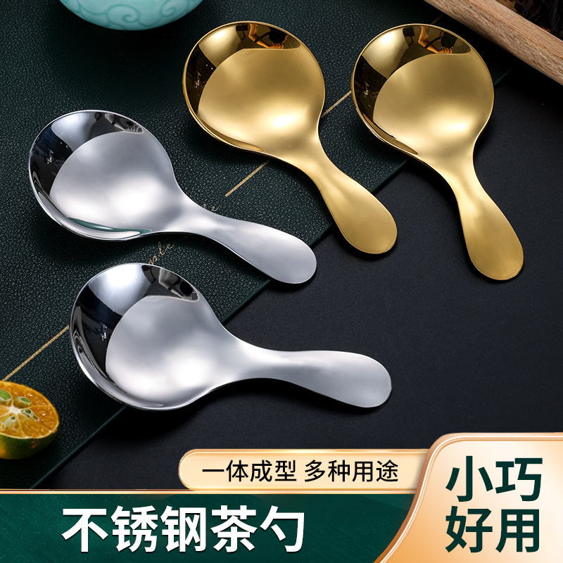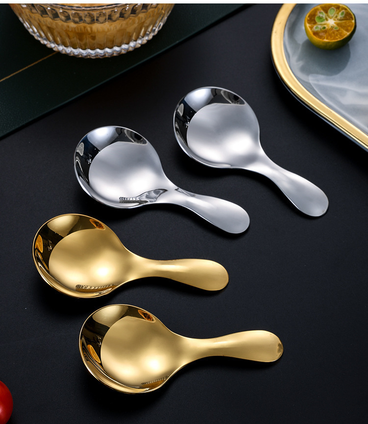 스테인레스 스틸 스푼 짧은 핸들 미니 티 스푼 창조적 인 라운드 헤드 디저트 아이스크림 스푼 차 세트 액세서리 차 주걱 도매