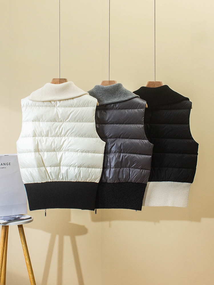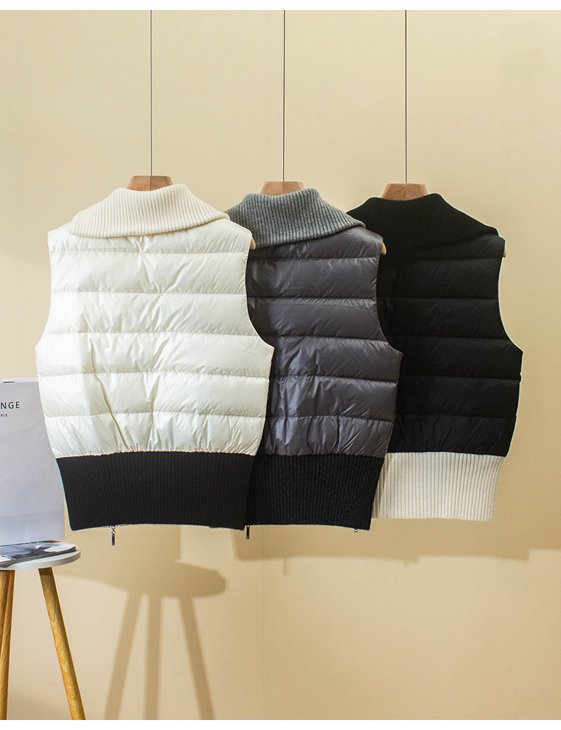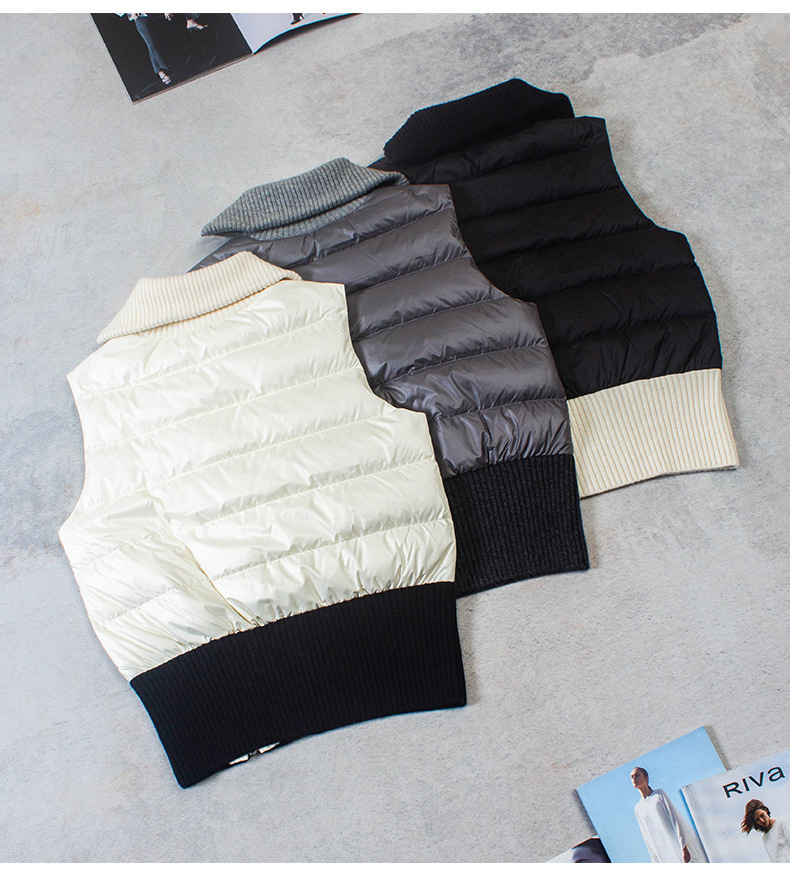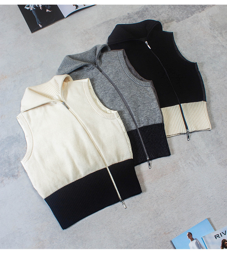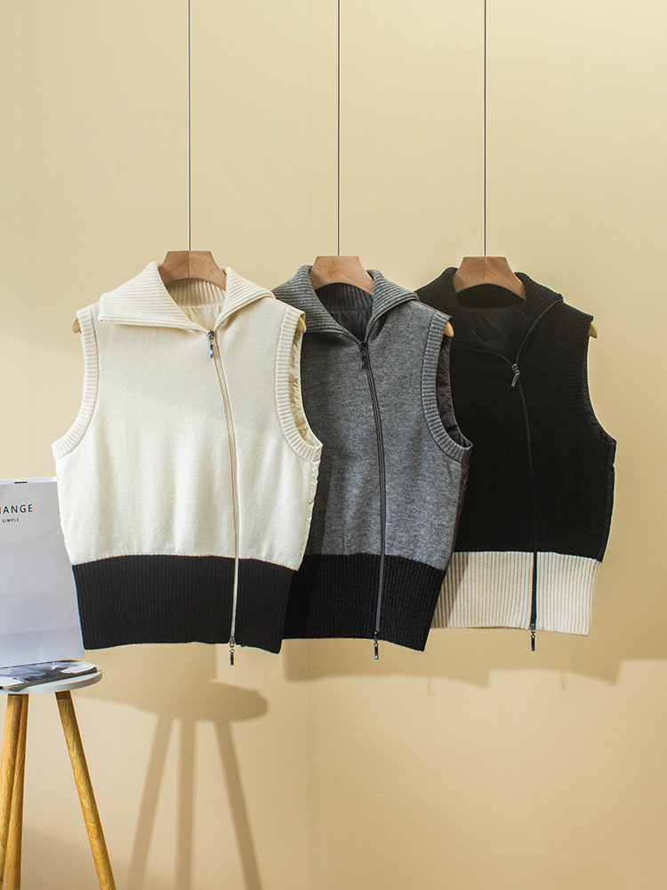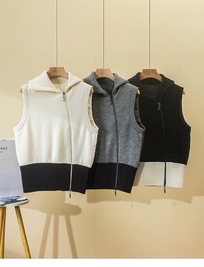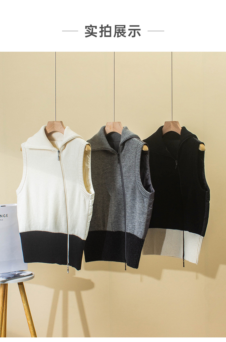 겨울 새로운 LP 다운 조끼 Lel 더블 지퍼 대조 컬러 민소매 캐시미어 조끼 거위 재킷 두꺼운