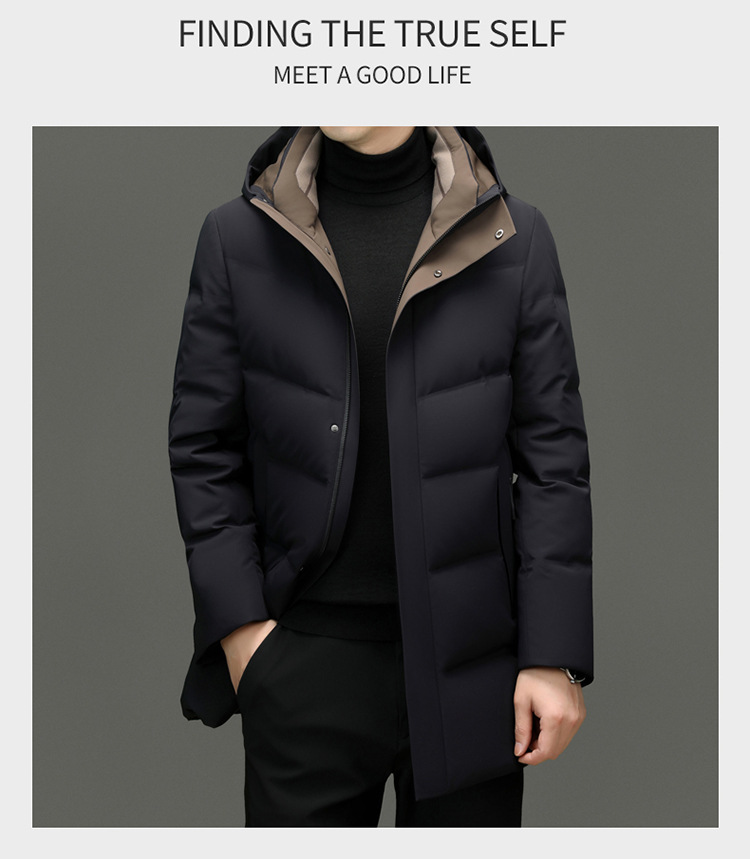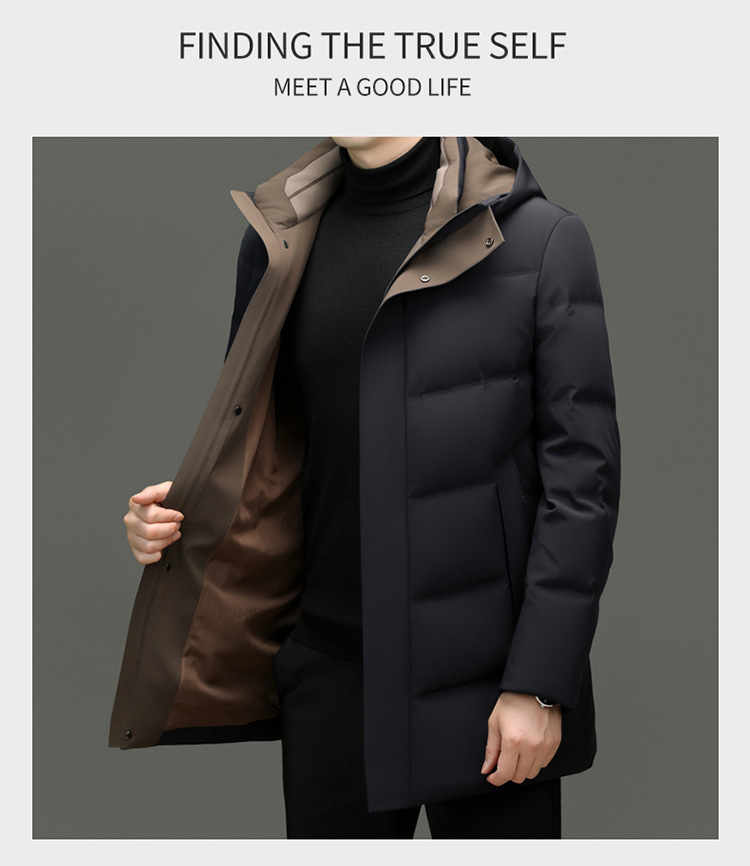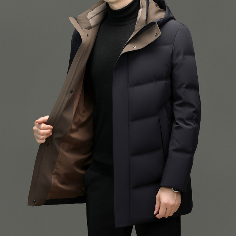 쇼핑몰 같은 남성 다운 재킷 겨울 중년 아빠 비즈니스 빅 브랜드 중간 길이의 후드 내한성 따뜻한 재킷