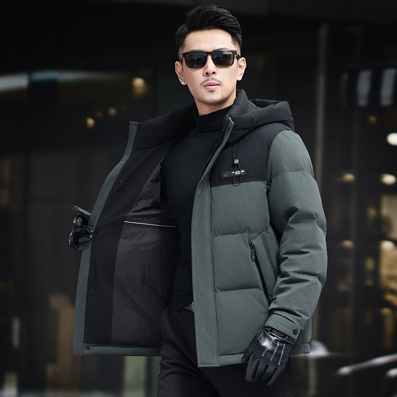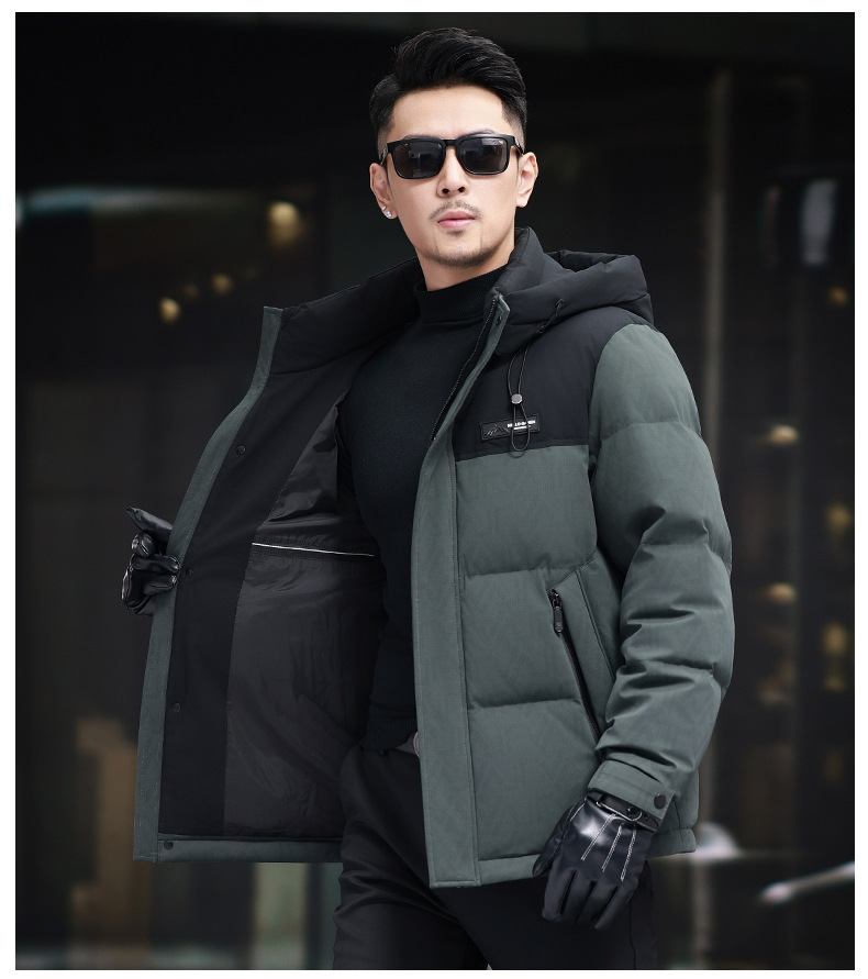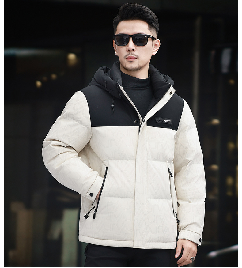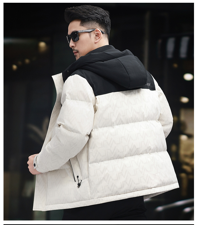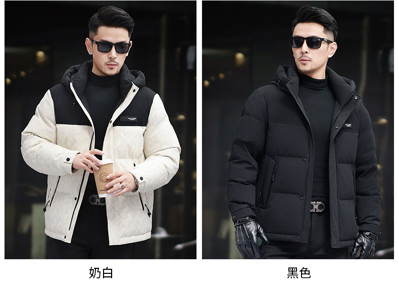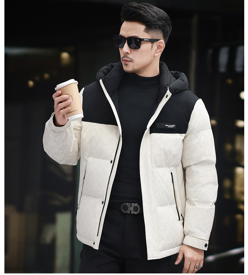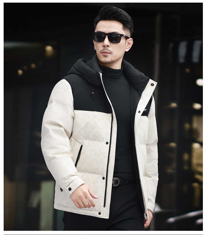 탈부착 가능한 후드가 있는 새로운 겨울 남성용 짧은 다운 재킷, 패셔너블한 대비 프린트, 남성용 따뜻하고 다재다능한 재킷