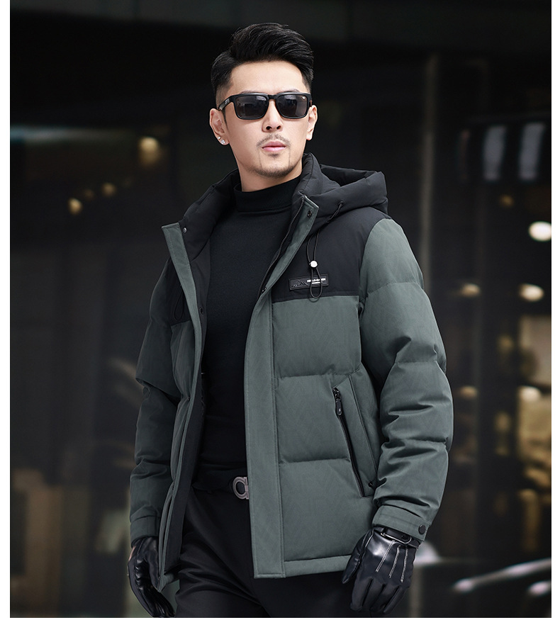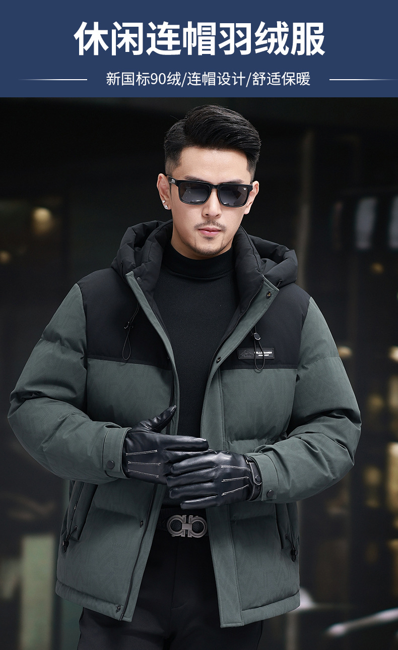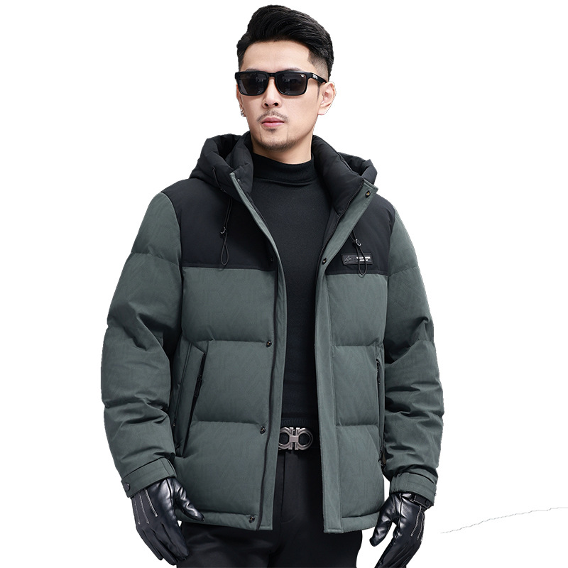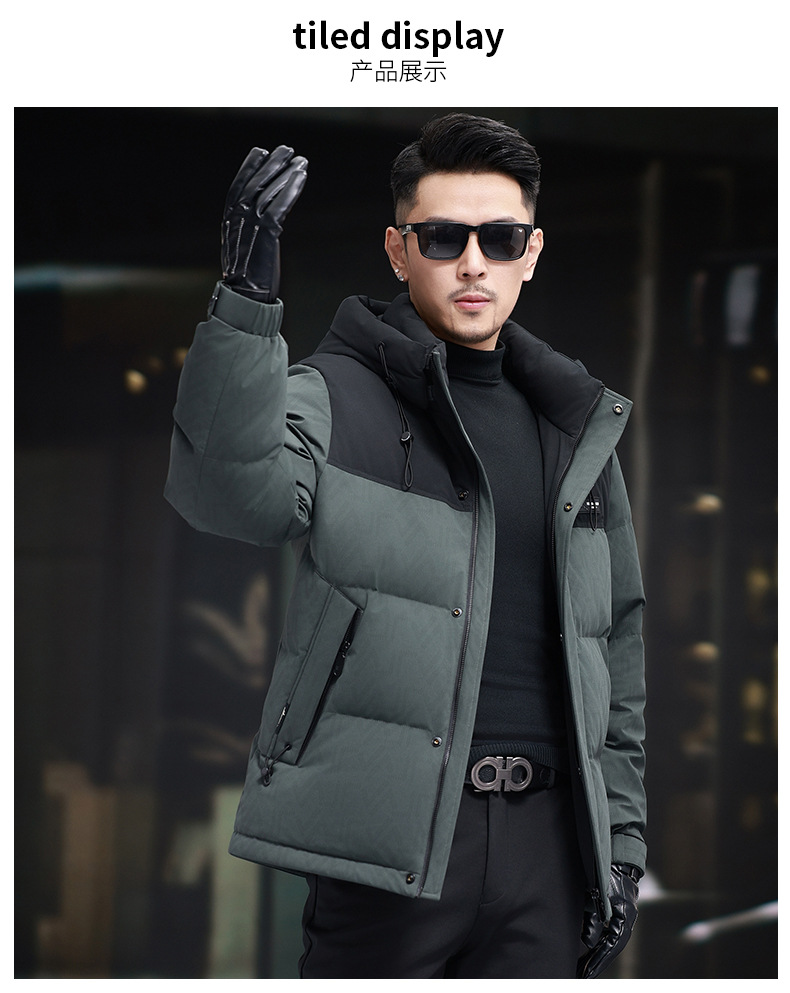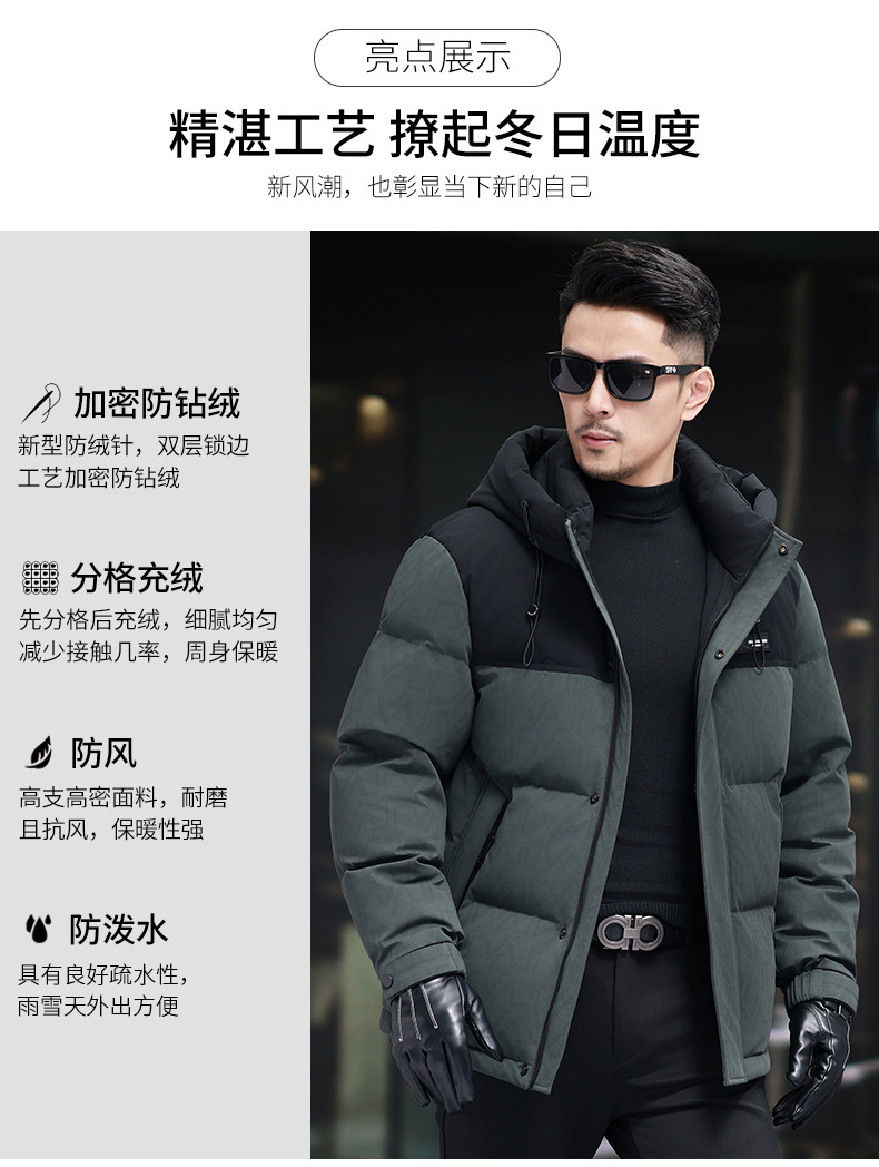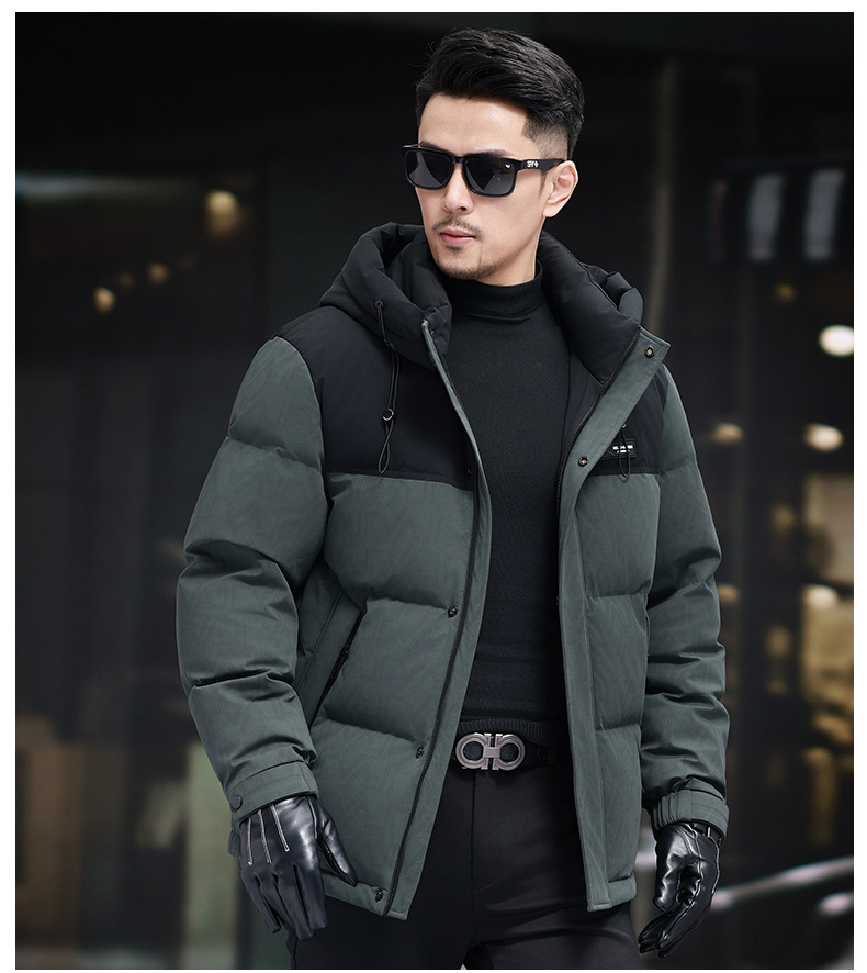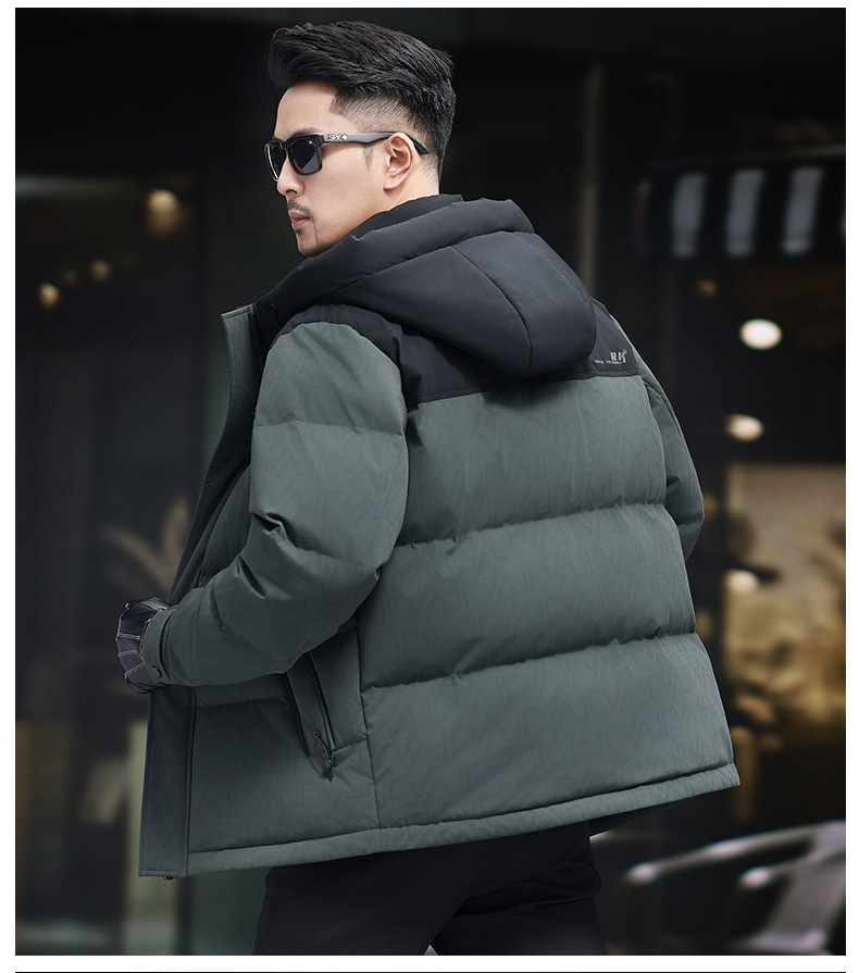 탈부착 가능한 후드가 있는 새로운 겨울 남성용 짧은 다운 재킷, 패셔너블한 대비 프린트, 남성용 따뜻하고 다재다능한 재킷