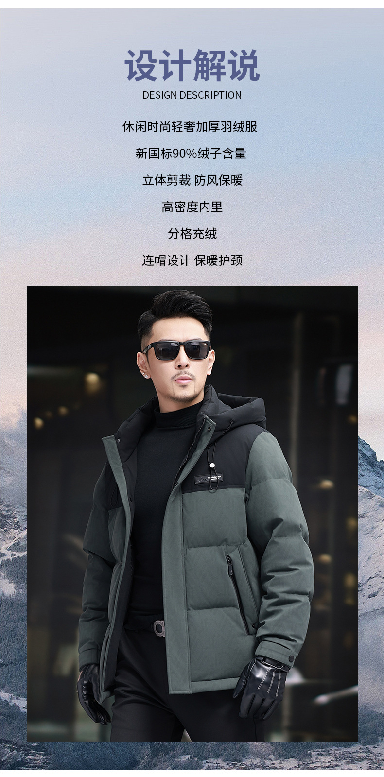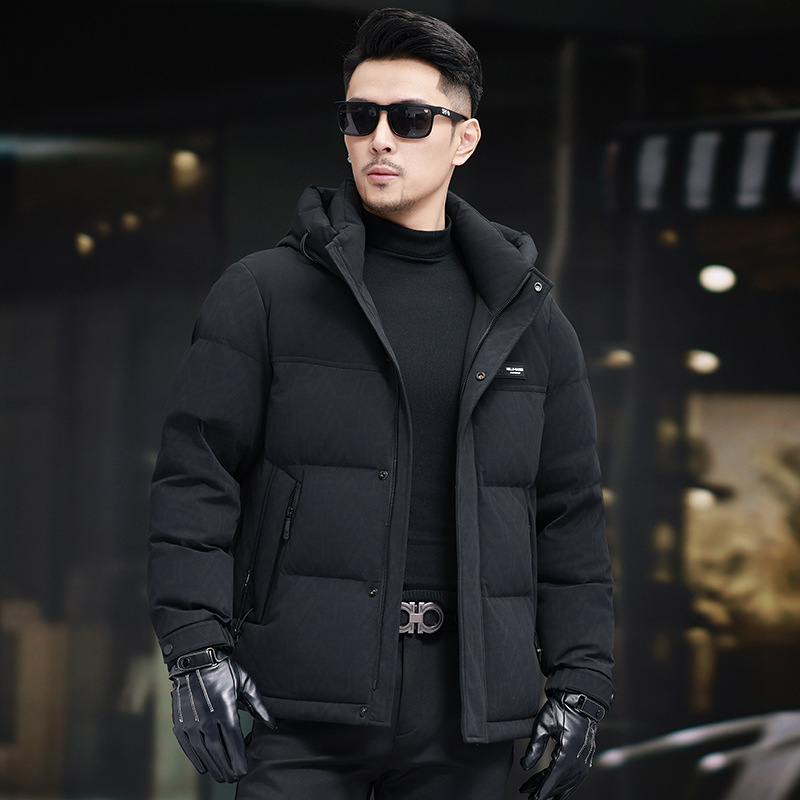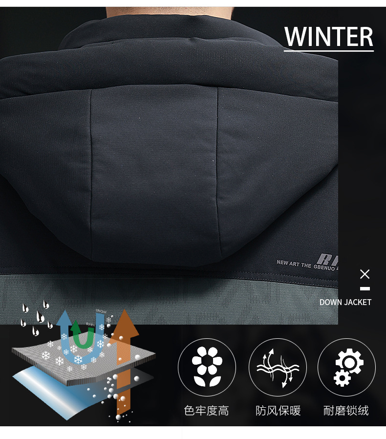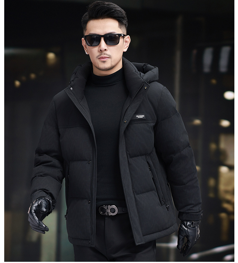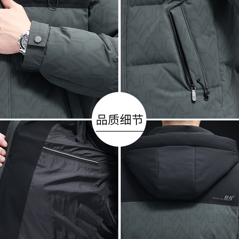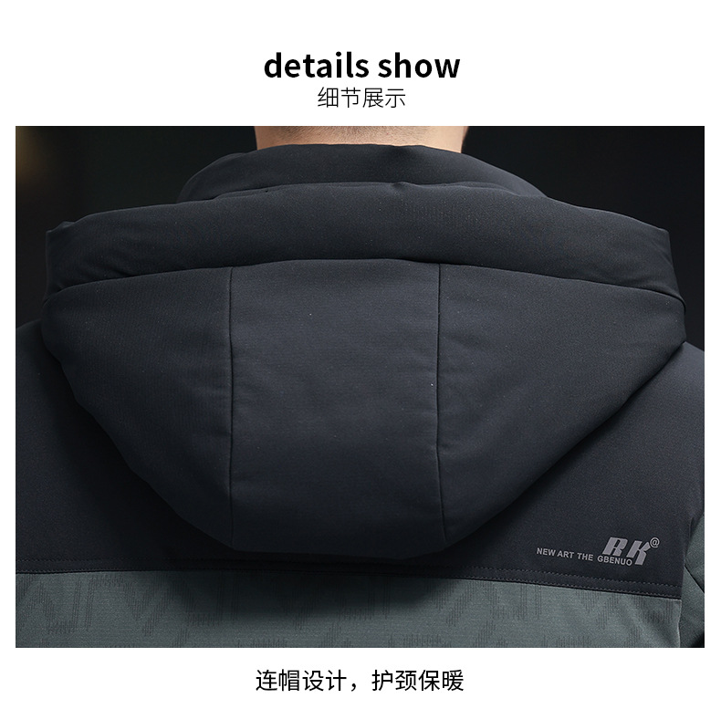 탈부착 가능한 후드가 있는 새로운 겨울 남성용 짧은 다운 재킷, 패셔너블한 대비 프린트, 남성용 따뜻하고 다재다능한 재킷