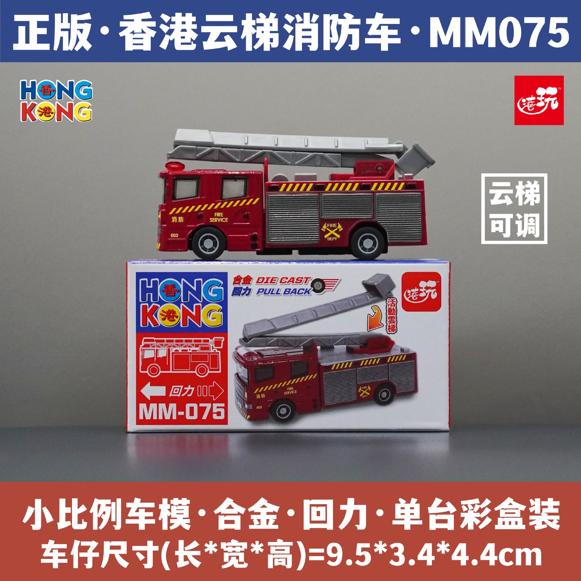 홍콩 사다리 소방차 구조 시뮬레이션 자동차 모델 어린이 장난감 손 선물 기념품 합금 자동차 모델
