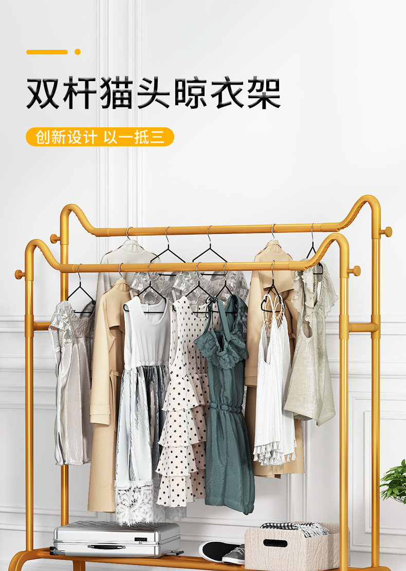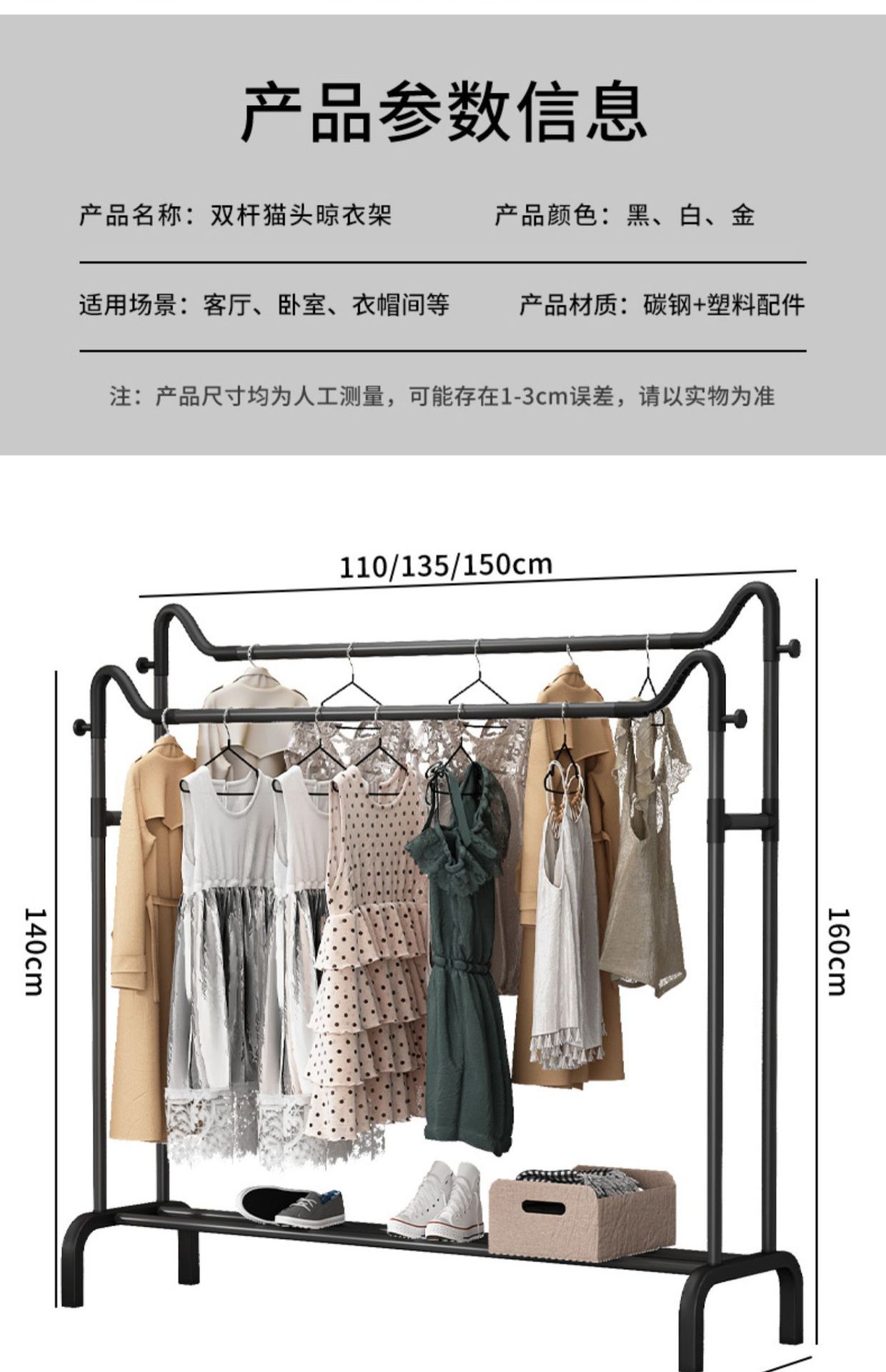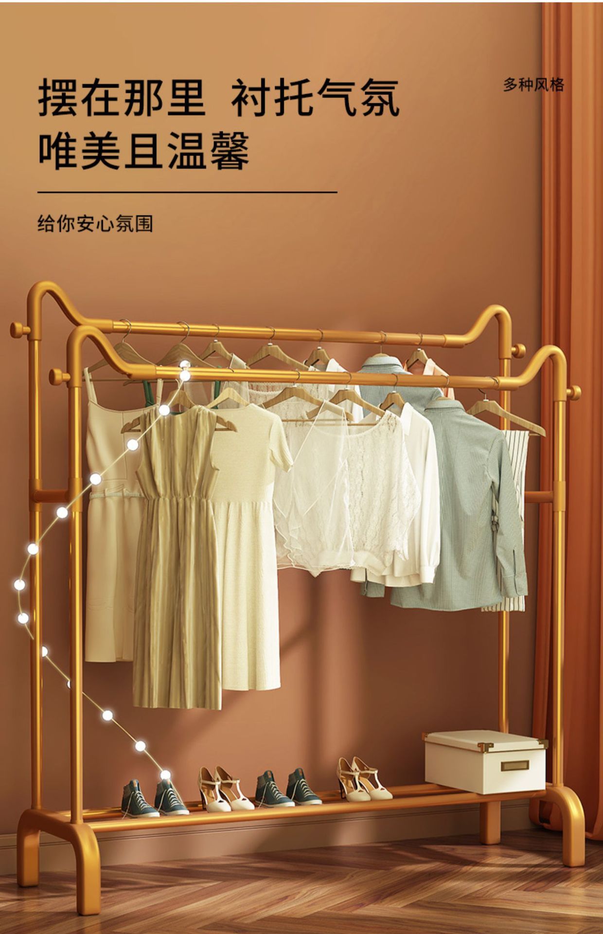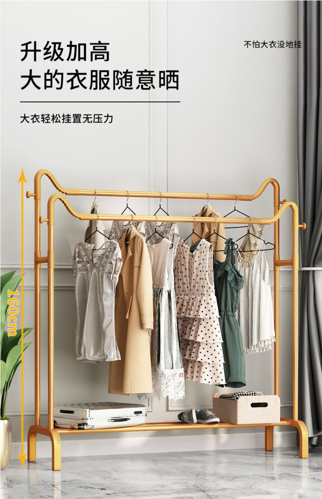 고양이 귀 건조 랙 바닥 대 바닥 발코니 옷걸이 침실 옷 랙 라이트 럭셔리 의류 랙