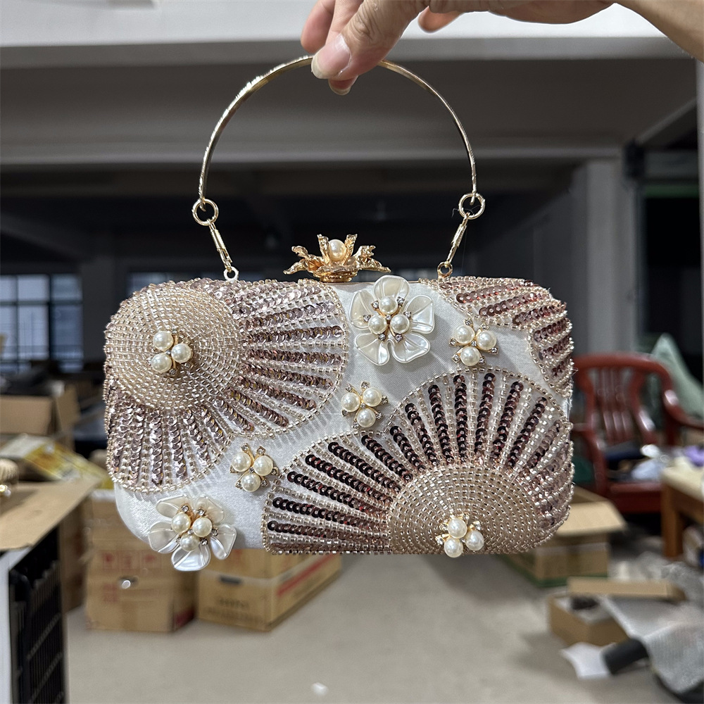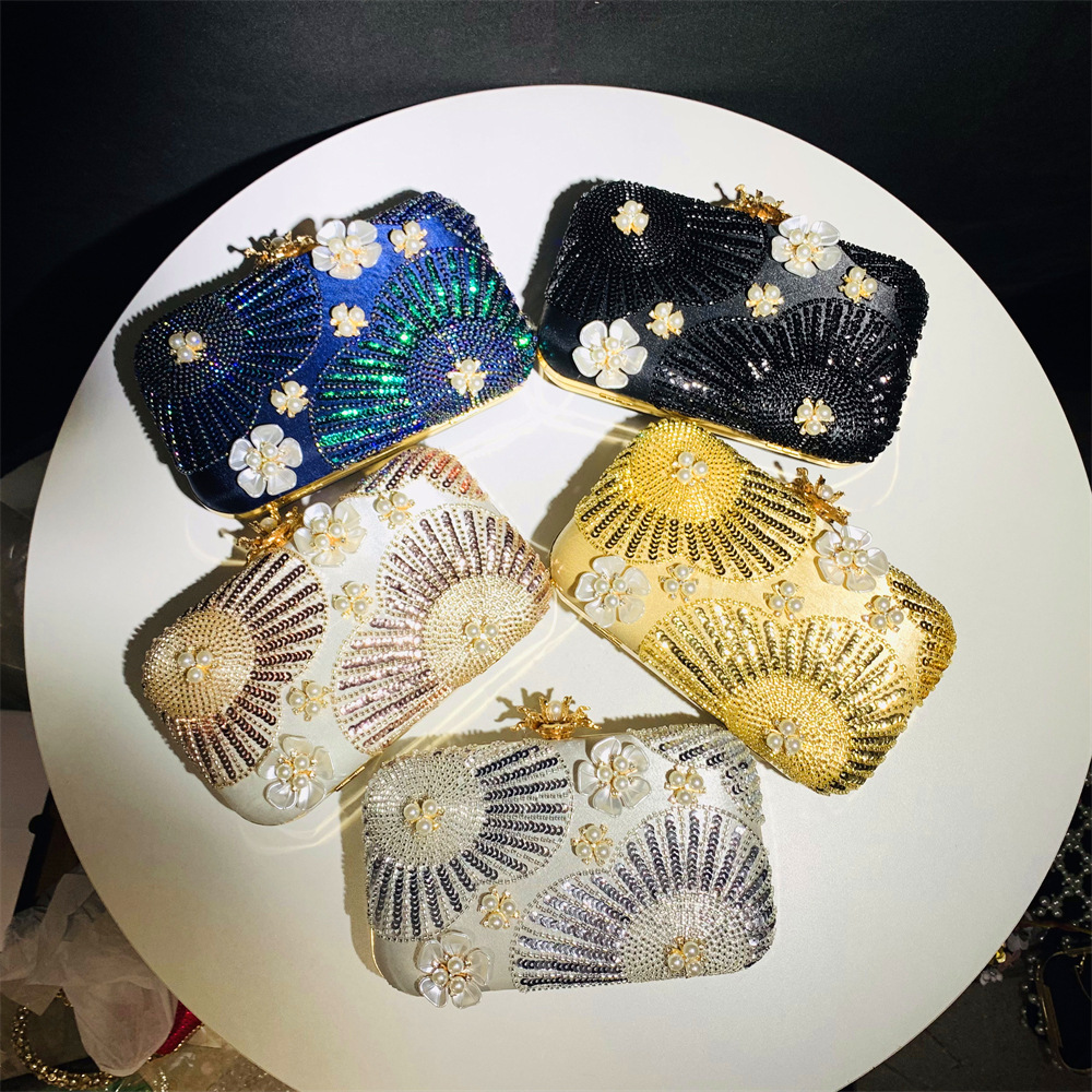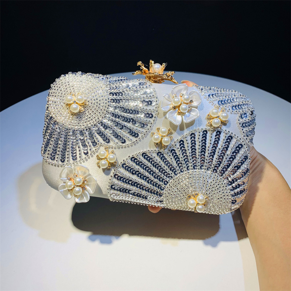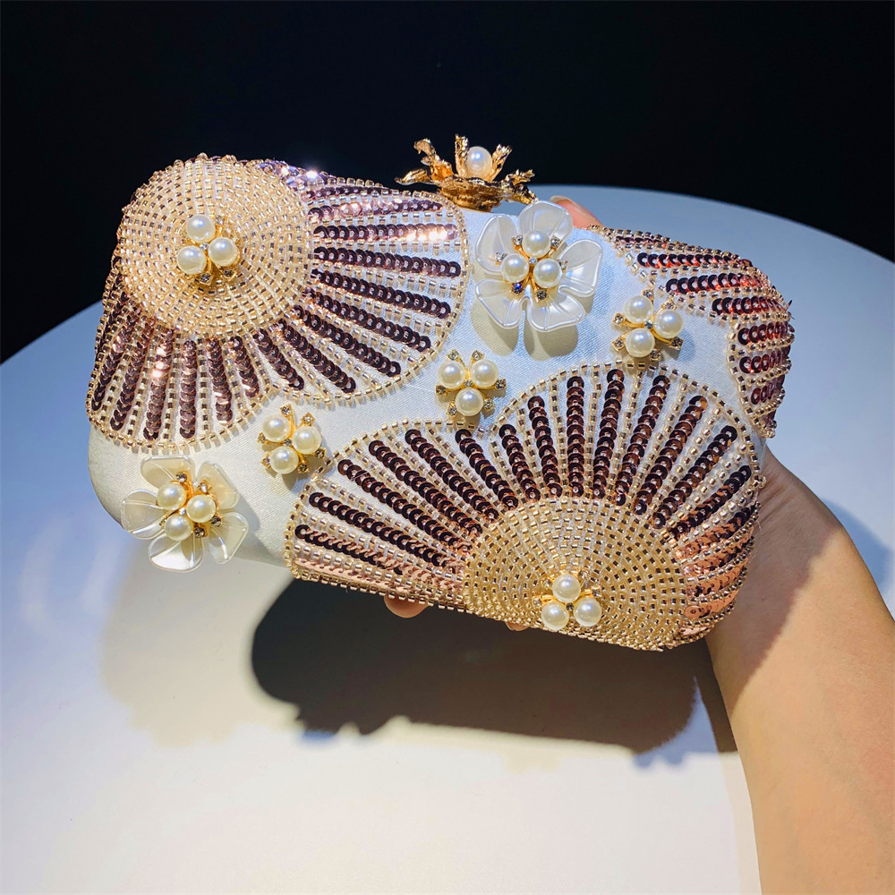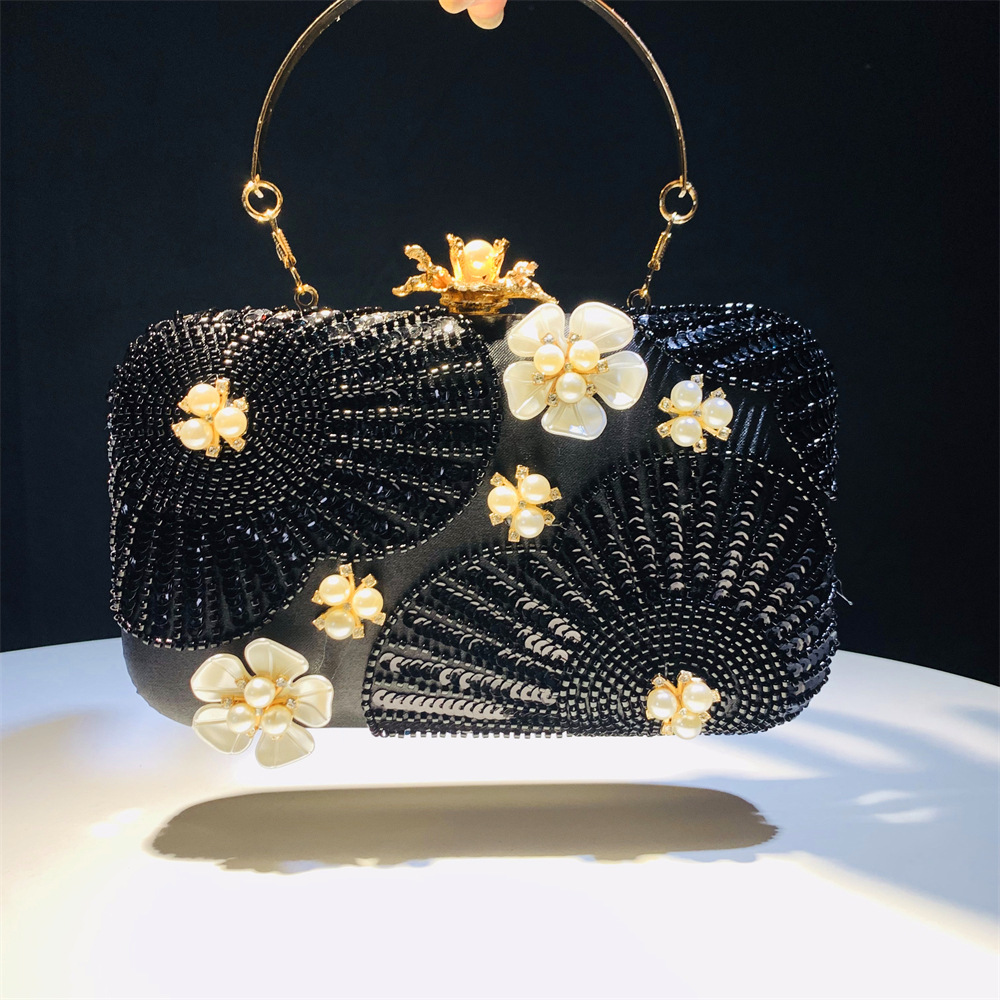 헝메이 차오 저우 새로운 꽃 진주 클러치 국경 패션 스퀸 진주 웨딩 연회 여성용 가방