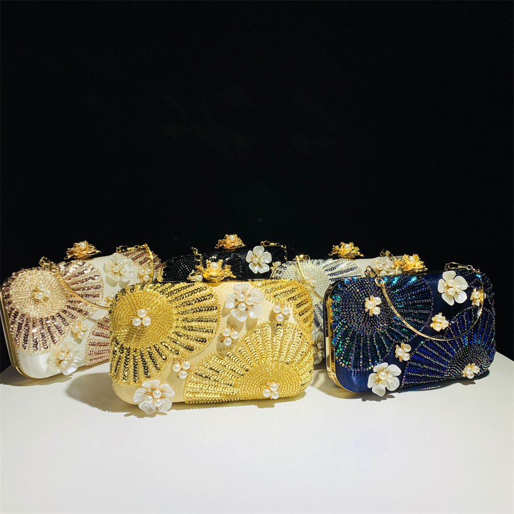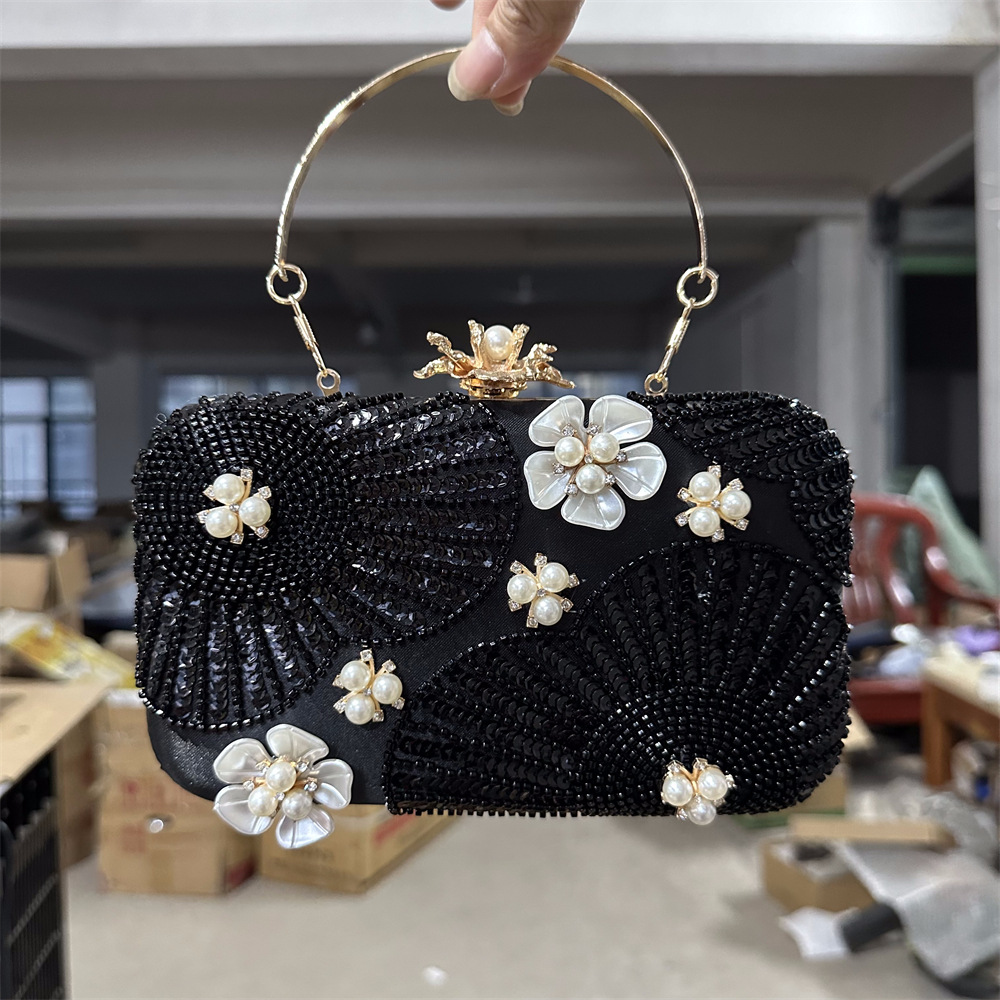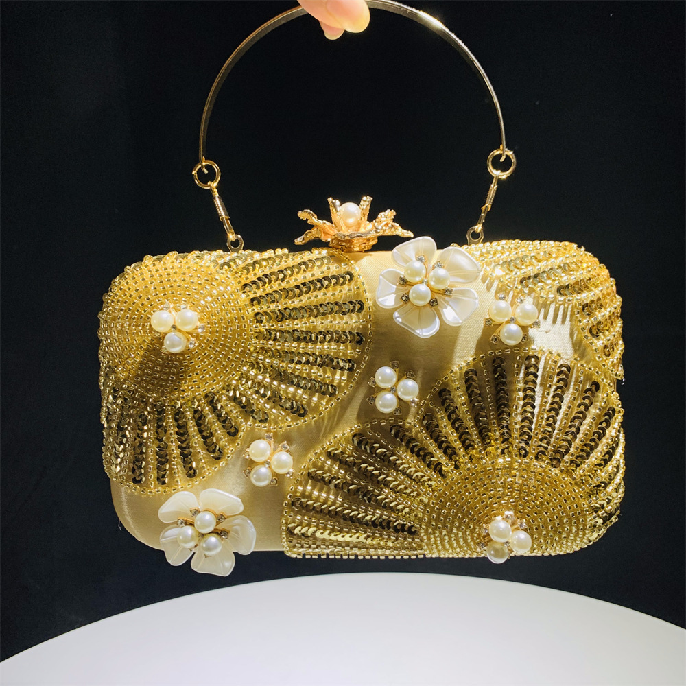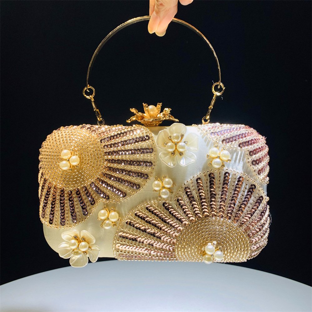 헝메이 차오 저우 새로운 꽃 진주 클러치 국경 패션 스퀸 진주 웨딩 연회 여성용 가방