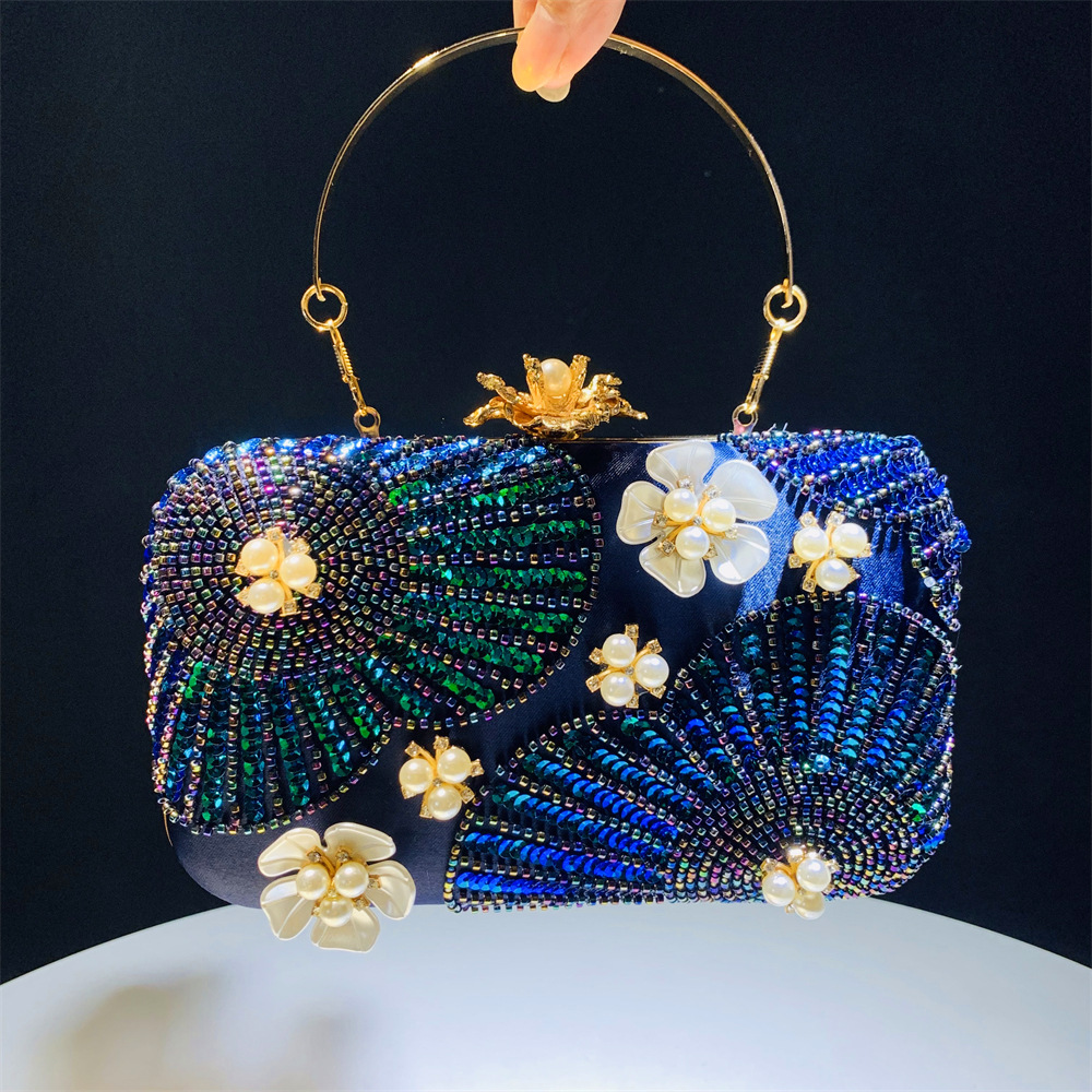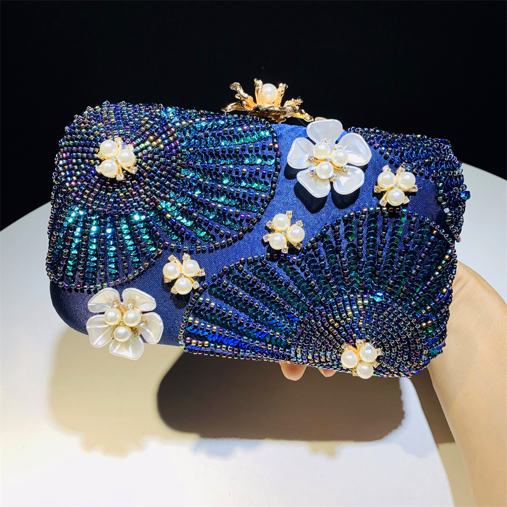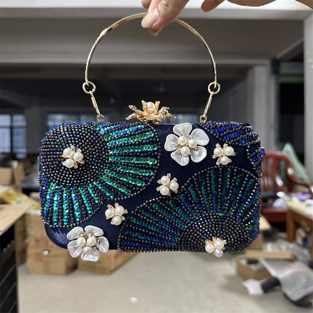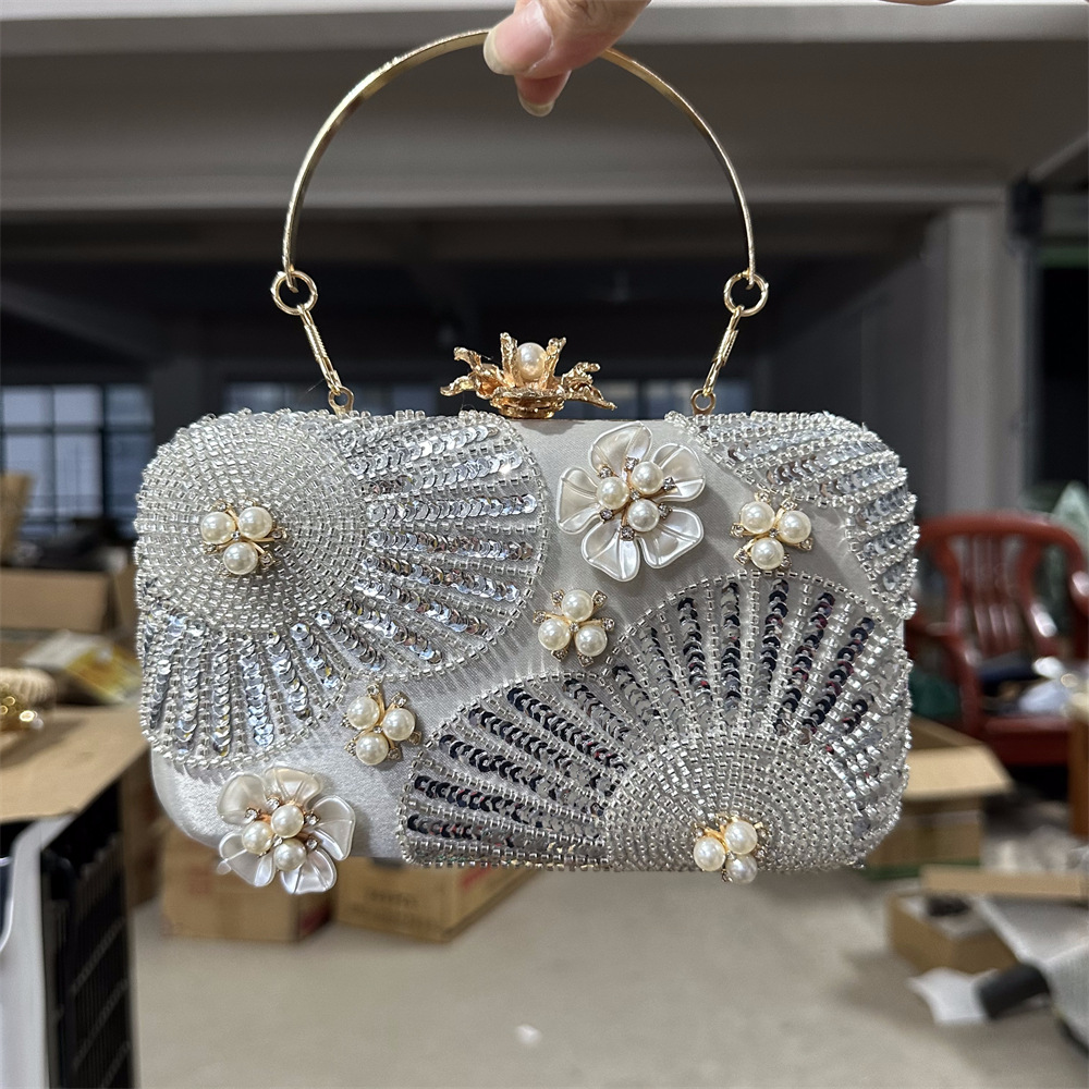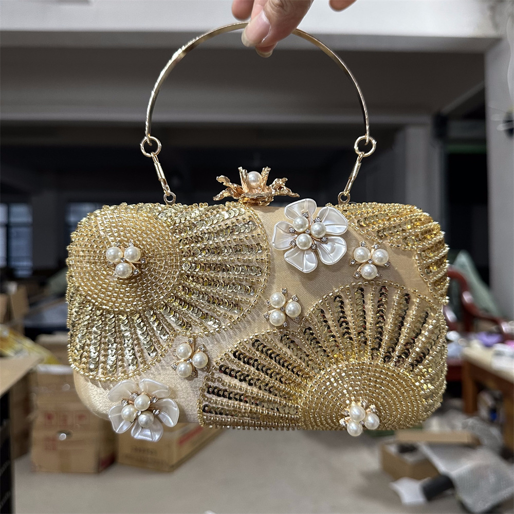 헝메이 차오 저우 새로운 꽃 진주 클러치 국경 패션 스퀸 진주 웨딩 연회 여성용 가방