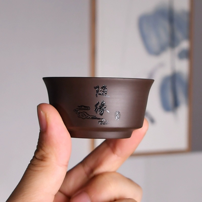 개인 수제 보라색 모래 스몰 사이즈 차 컵 조각 마스터 차 시음 컵 단일 차 케이지 중국 세라믹 쿵푸 작은 차 그릇