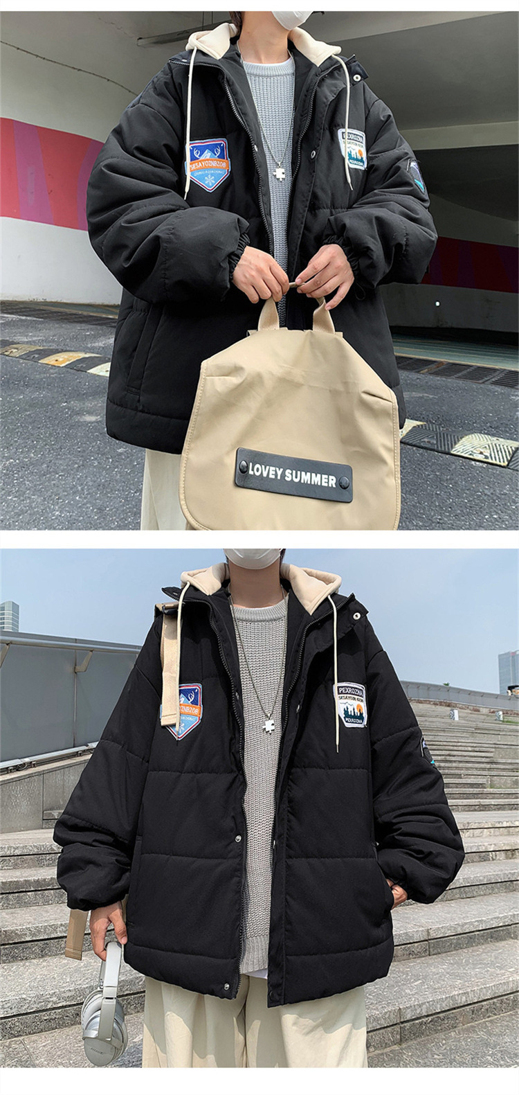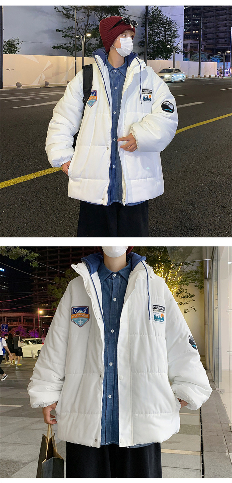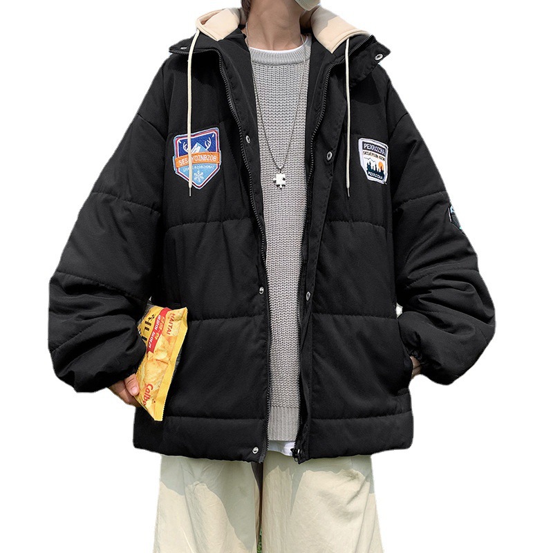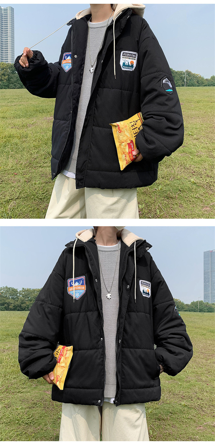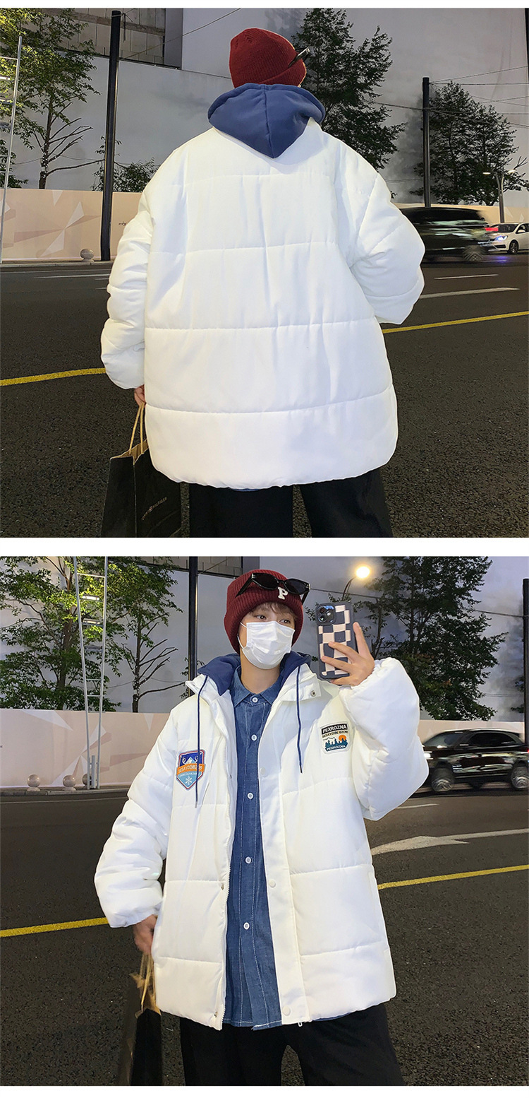 가짜 2 피스 코튼 패딩 의류 남성 2024 겨울 핸즈름 두꺼운 후드 다운 재킷 코트 루즈 트렌디 커플 옷
