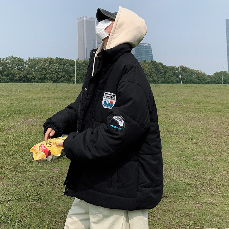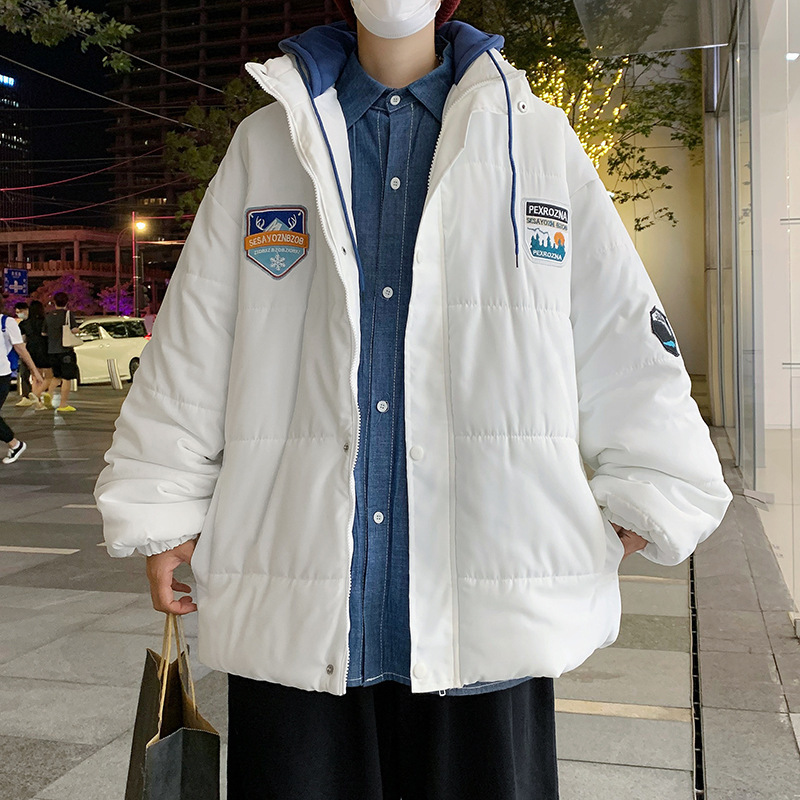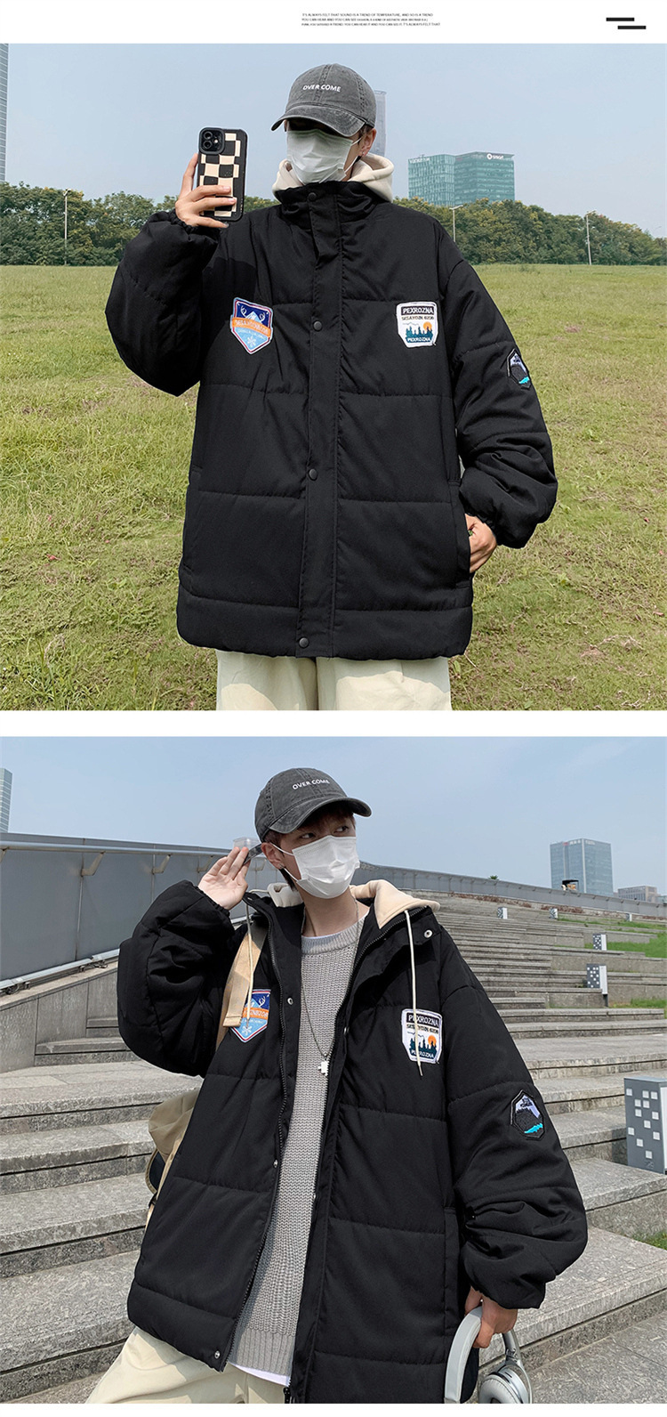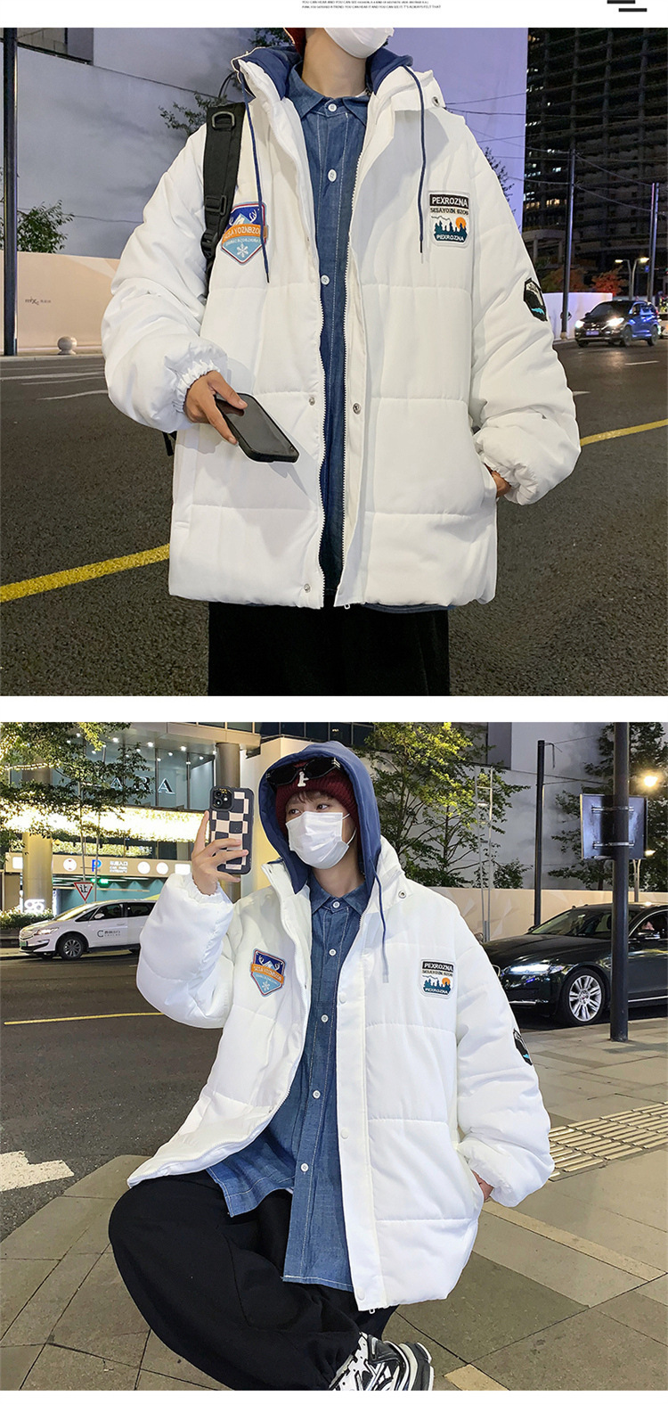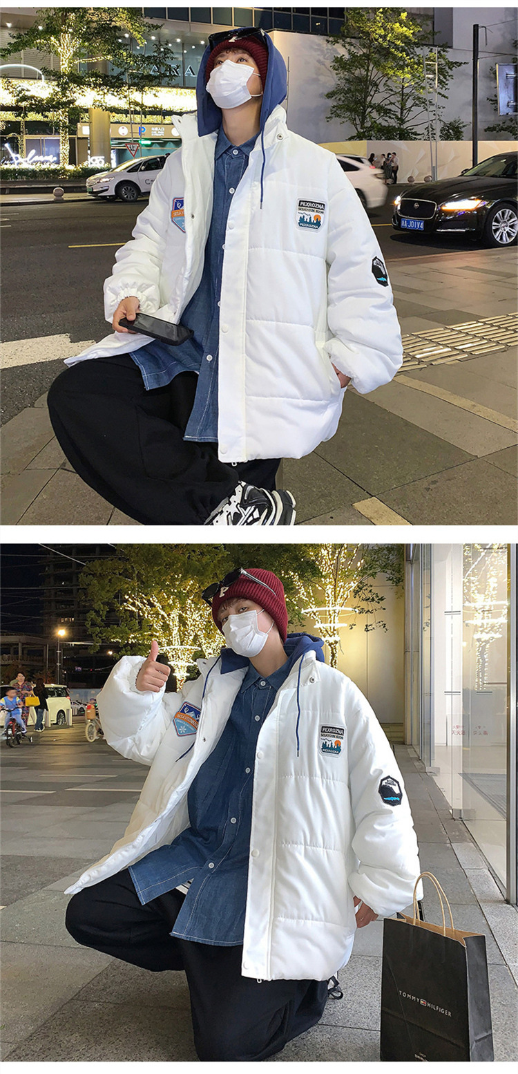 가짜 2 피스 코튼 패딩 의류 남성 2024 겨울 핸즈름 두꺼운 후드 다운 재킷 코트 루즈 트렌디 커플 옷