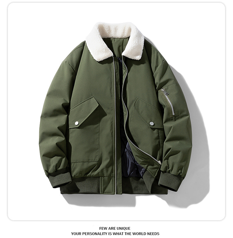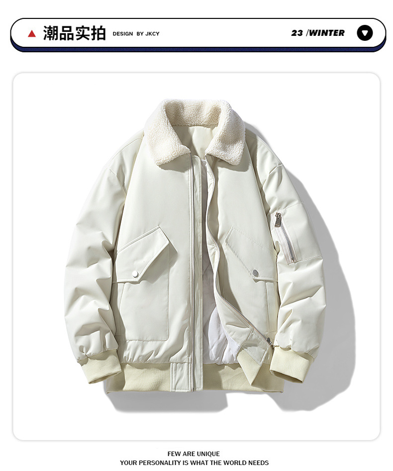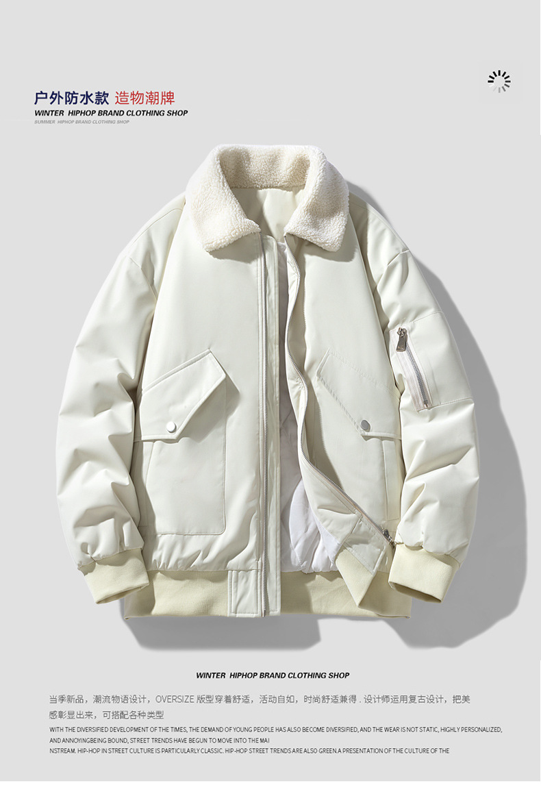 2025 새로운 겨울 다운 재킷 코튼 재킷 남성 코튼 코트 양고기 벨벳 옷깃 유행 브랜드 두꺼운 따뜻한 겨울 재킷