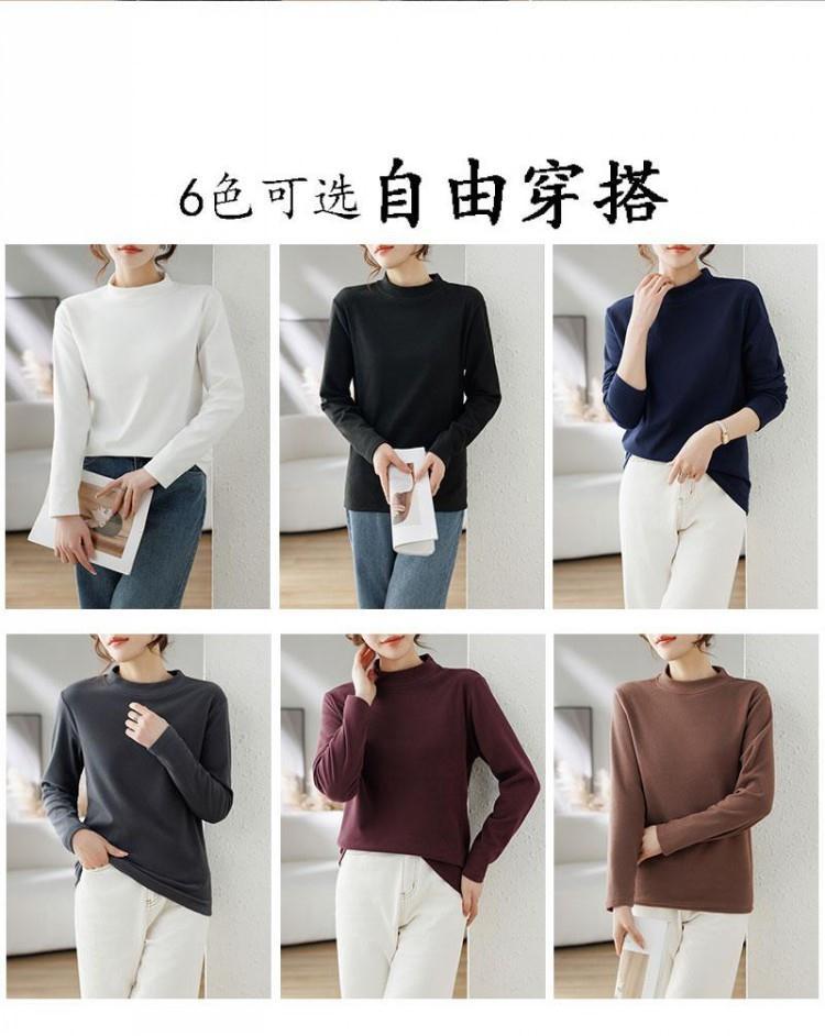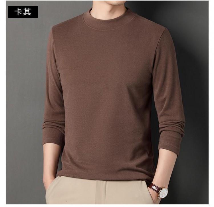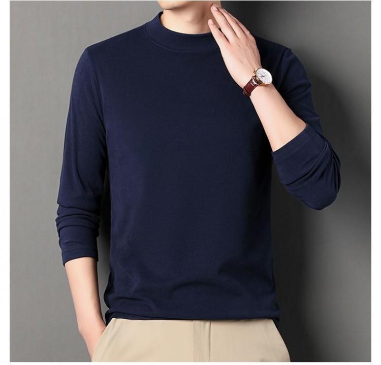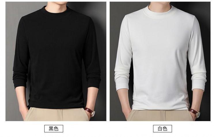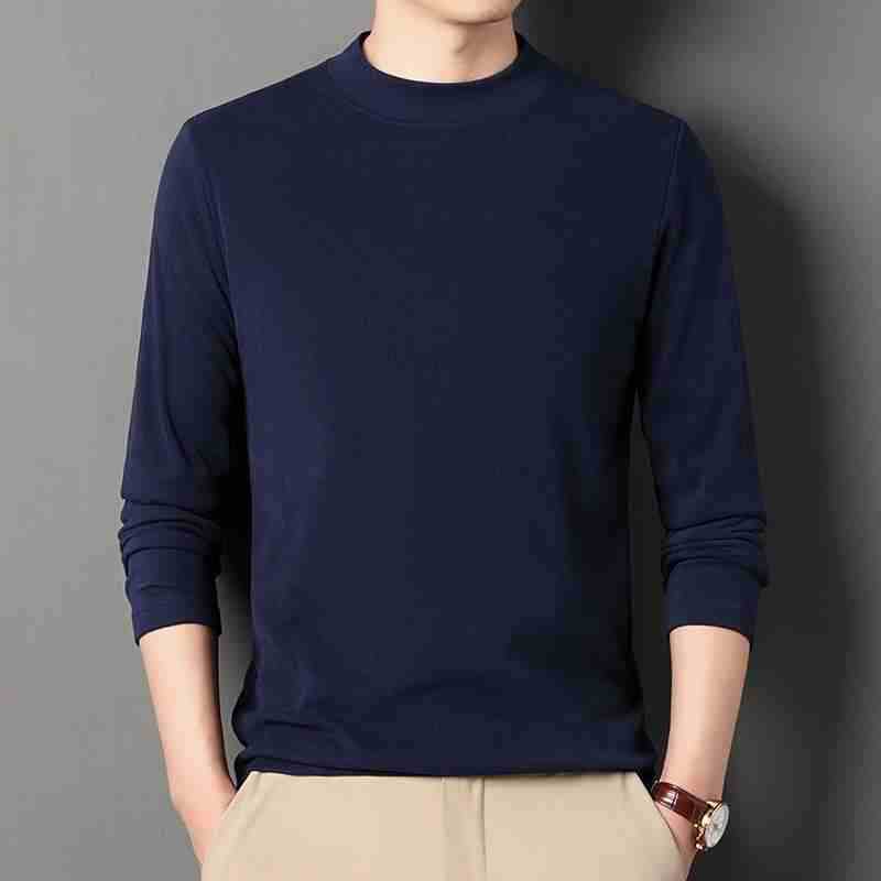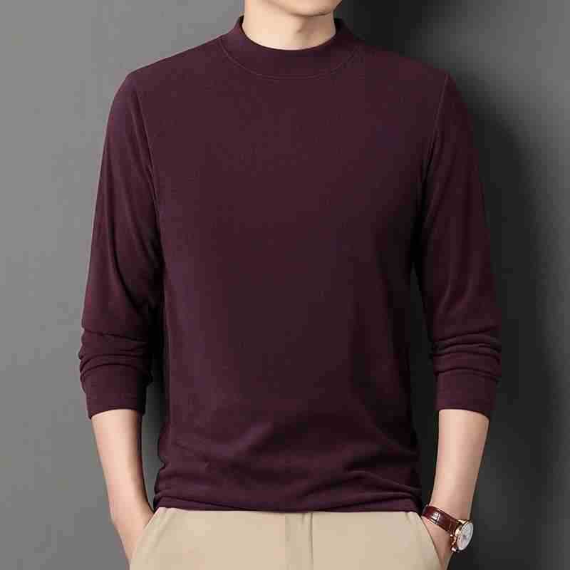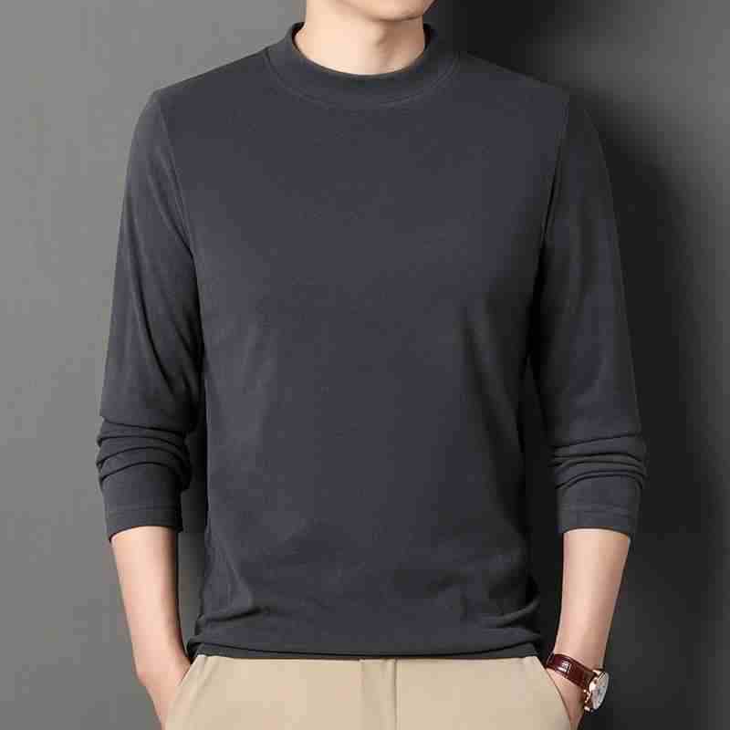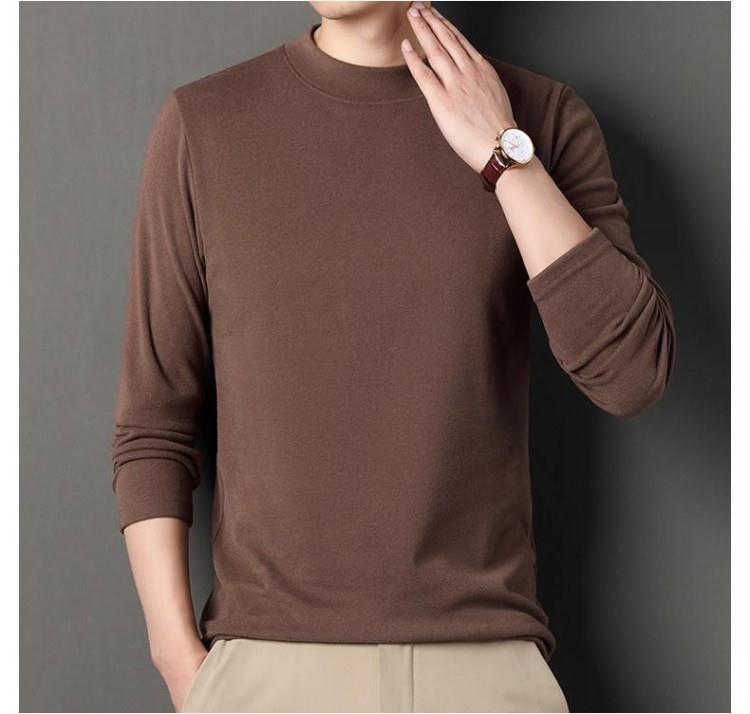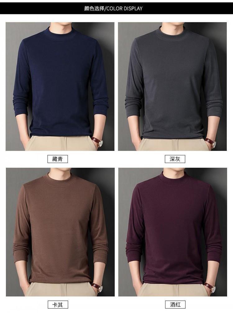 반 높이 칼라 샌딩 베이스 셔츠 2024 가을과 겨울 남자 양털 내부 긴 소매 티셔츠 중간 칼라 풀오버 스웨터 더블