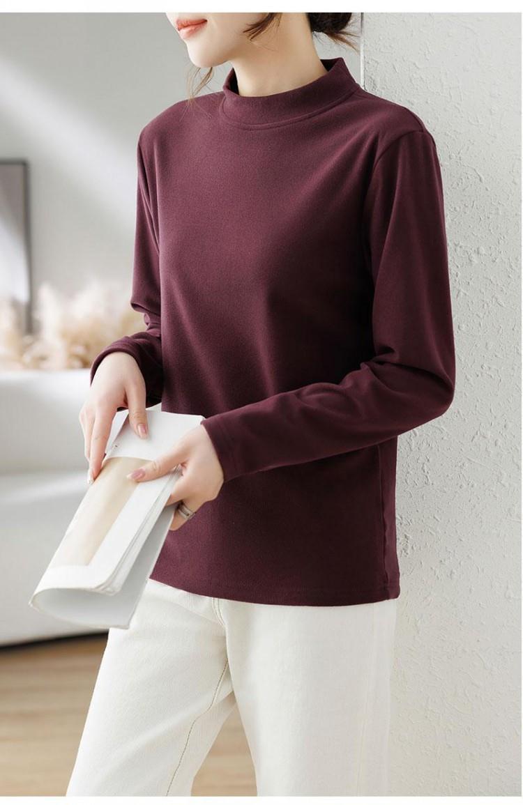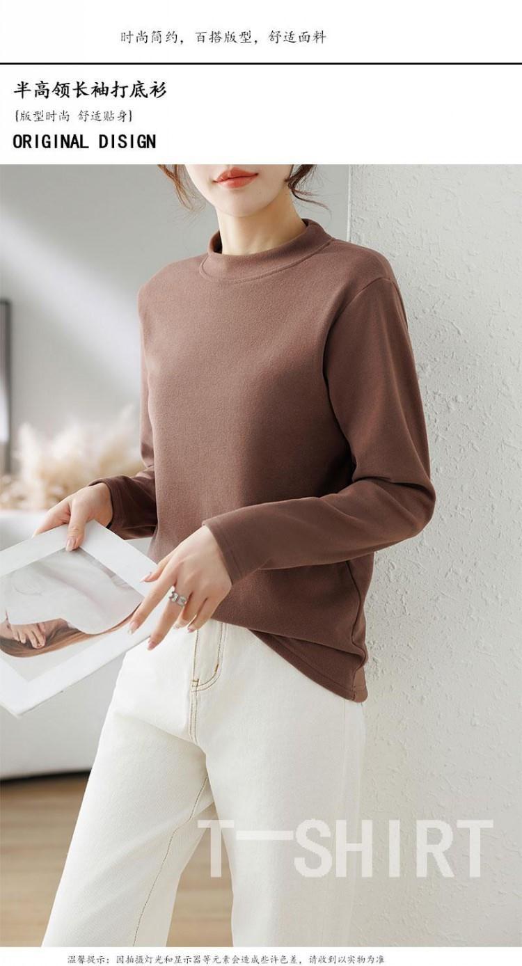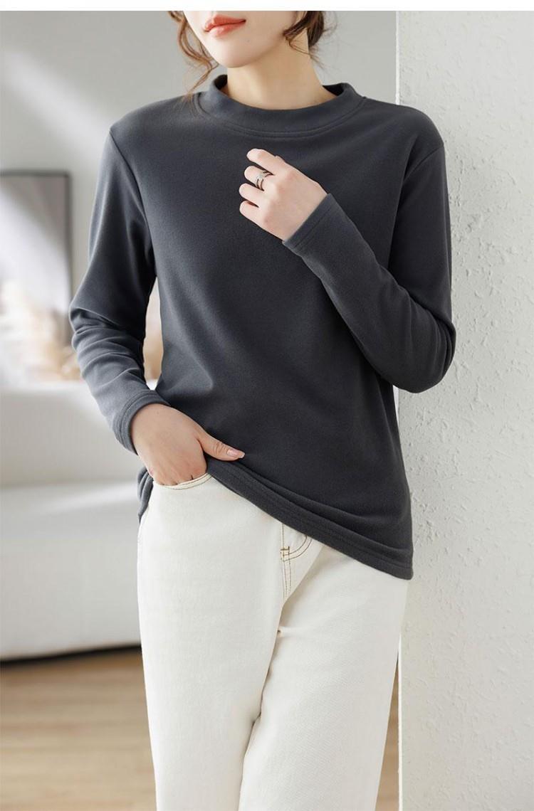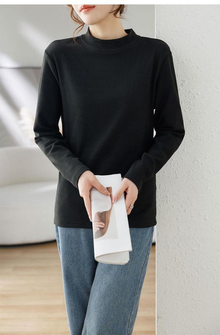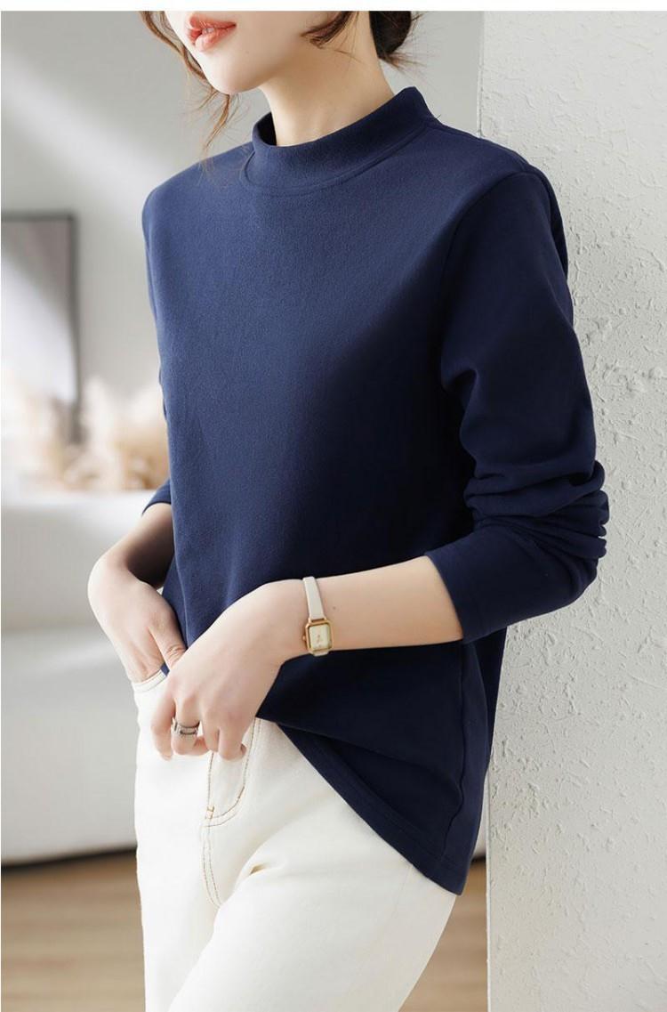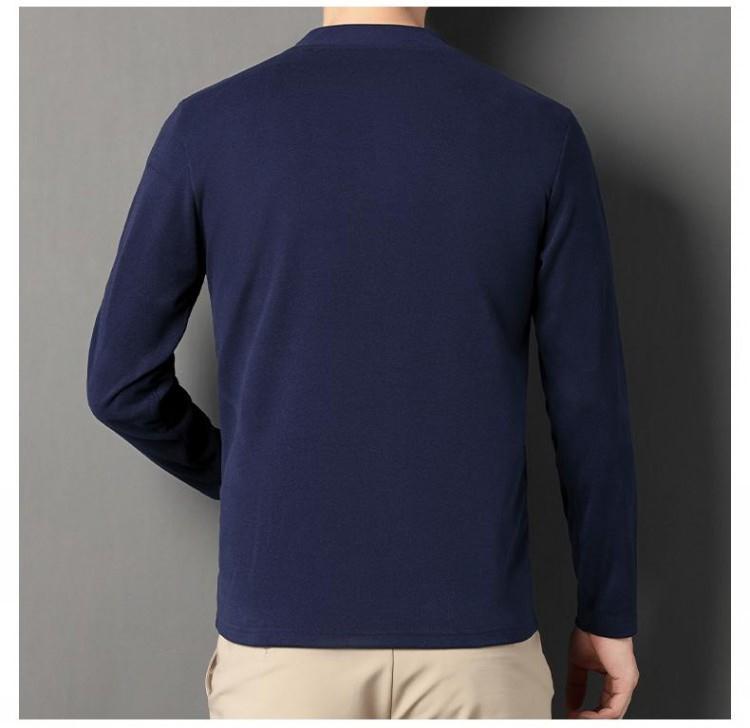 반 높이 칼라 샌딩 베이스 셔츠 2024 가을과 겨울 남자 양털 내부 긴 소매 티셔츠 중간 칼라 풀오버 스웨터 더블