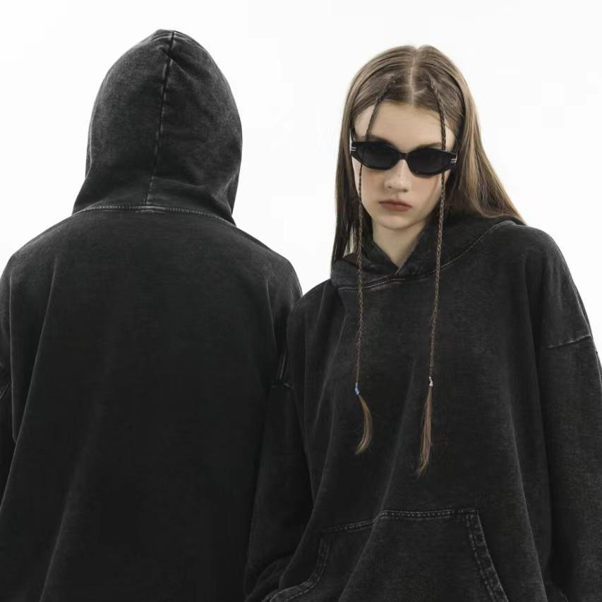 350g 워싱드 디스트레스드 후드티 남성용 헤비웨이트 트렌디 브랜드 루즈핏 오버사이즈 개성있는 디지털 프린팅 긴팔