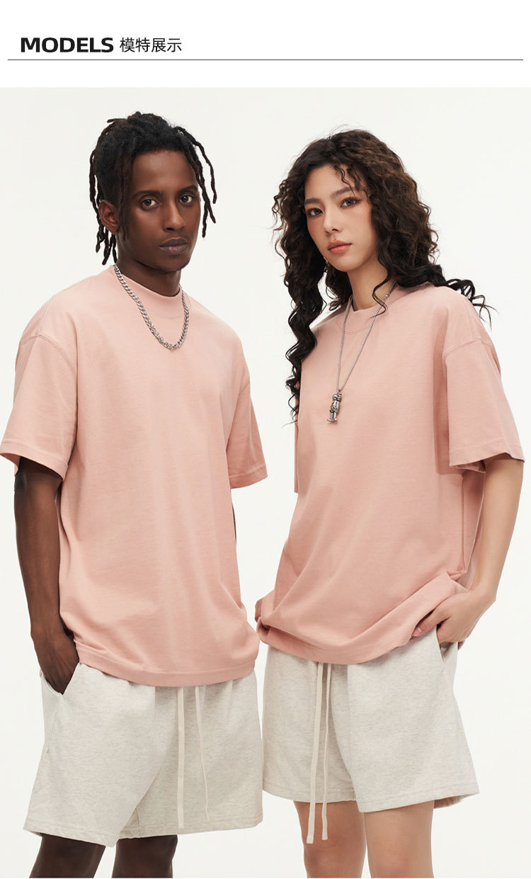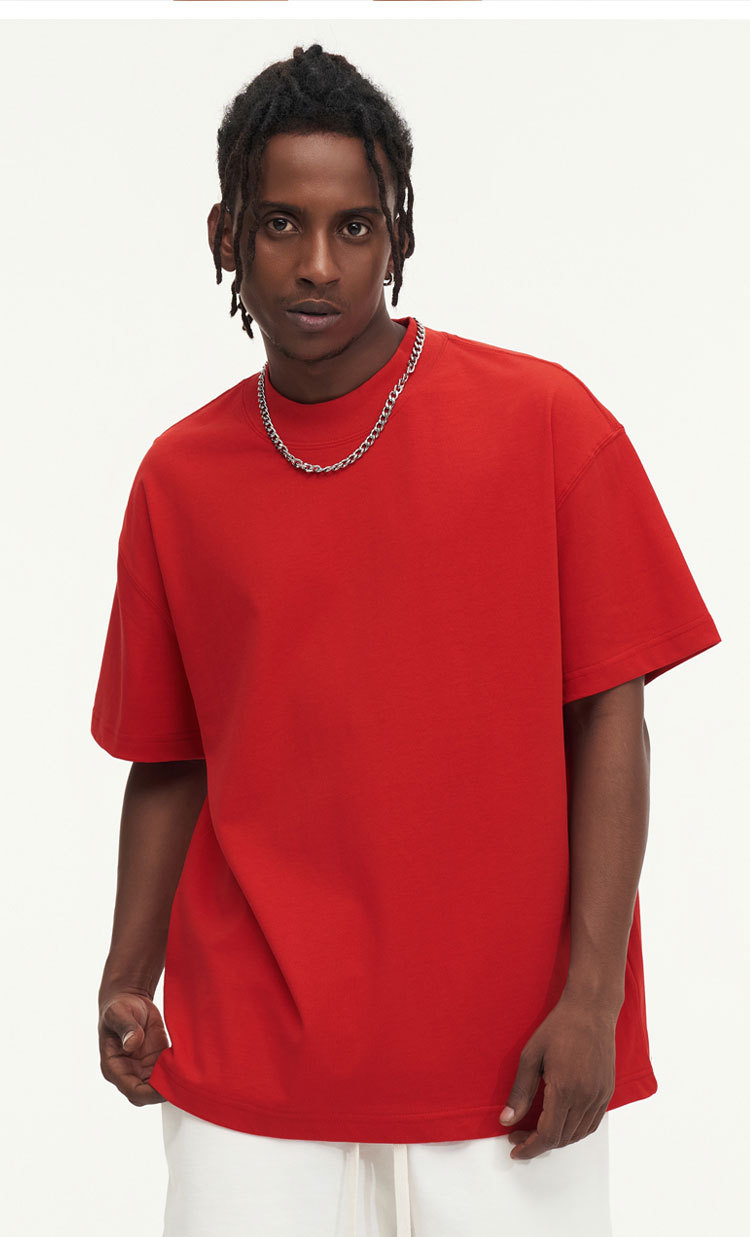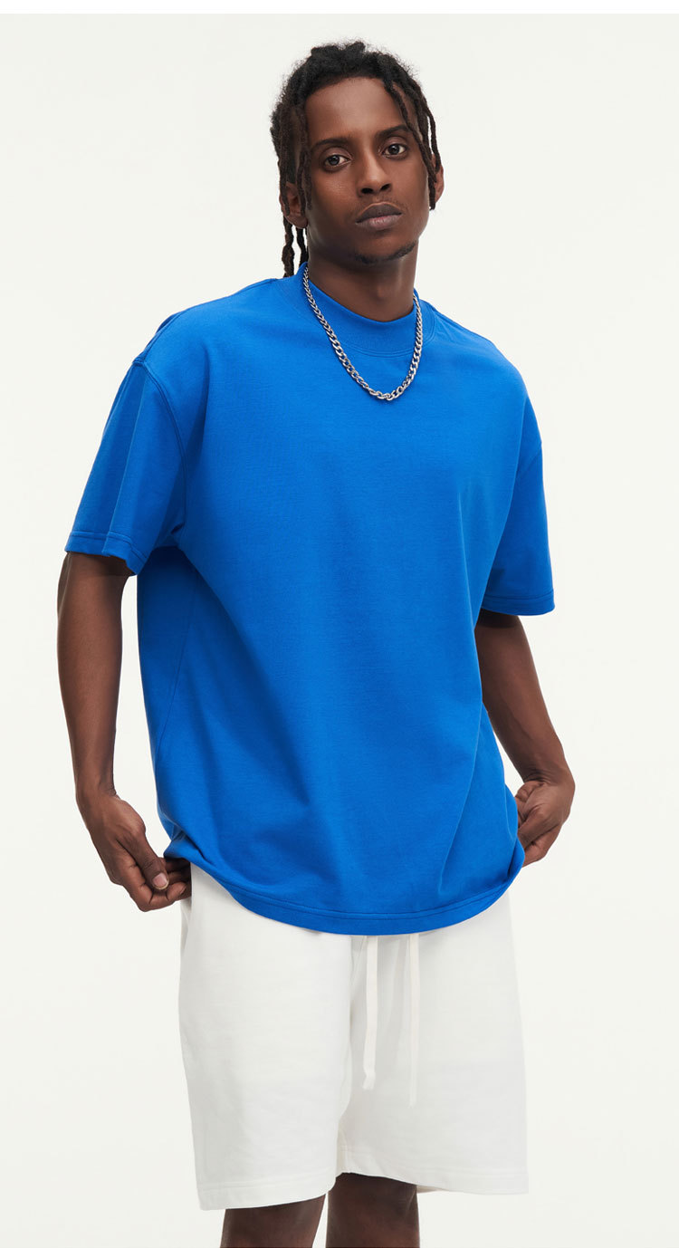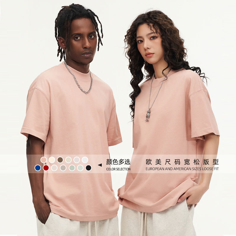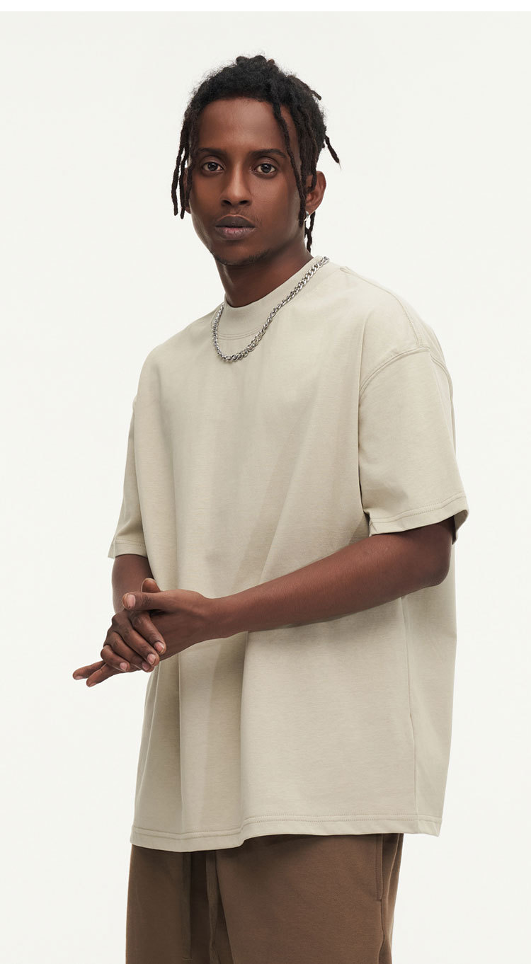 270g 오프 숄더 하이 넥 오프 숄더 슬리브 티셔츠 남성용 루즈 도매 드롭 배송 맞춤형 DIY 크로스 보더 유럽과 미국 트렌디 퓨어 코튼 와이드