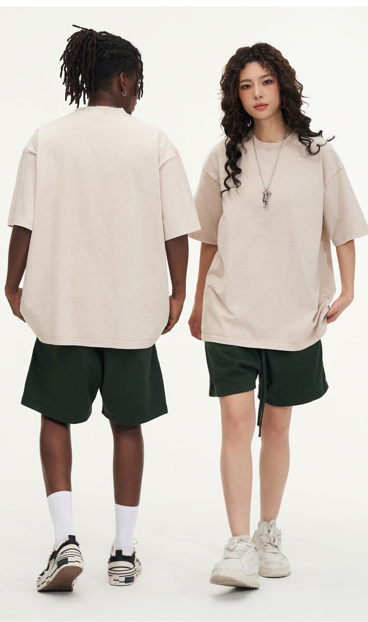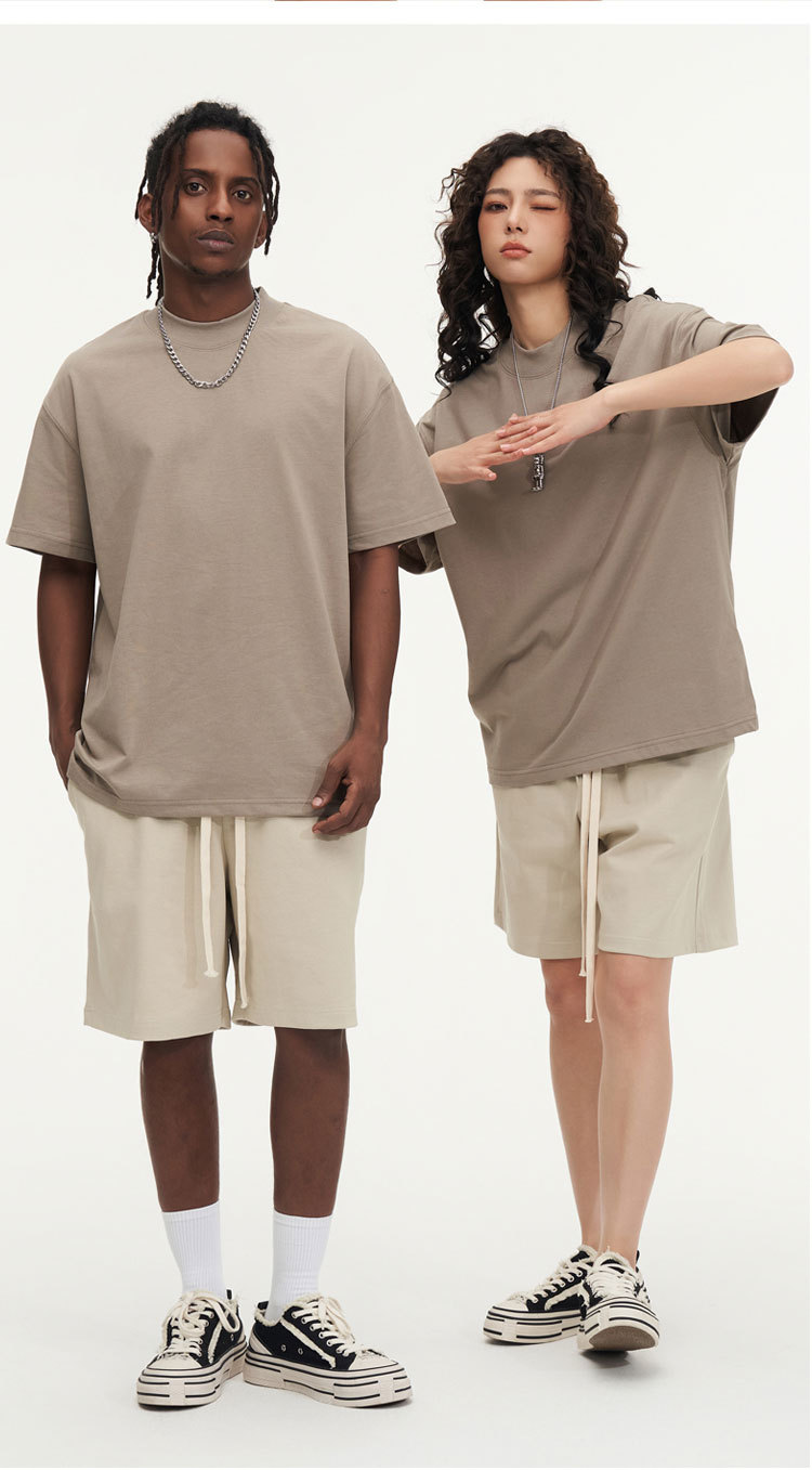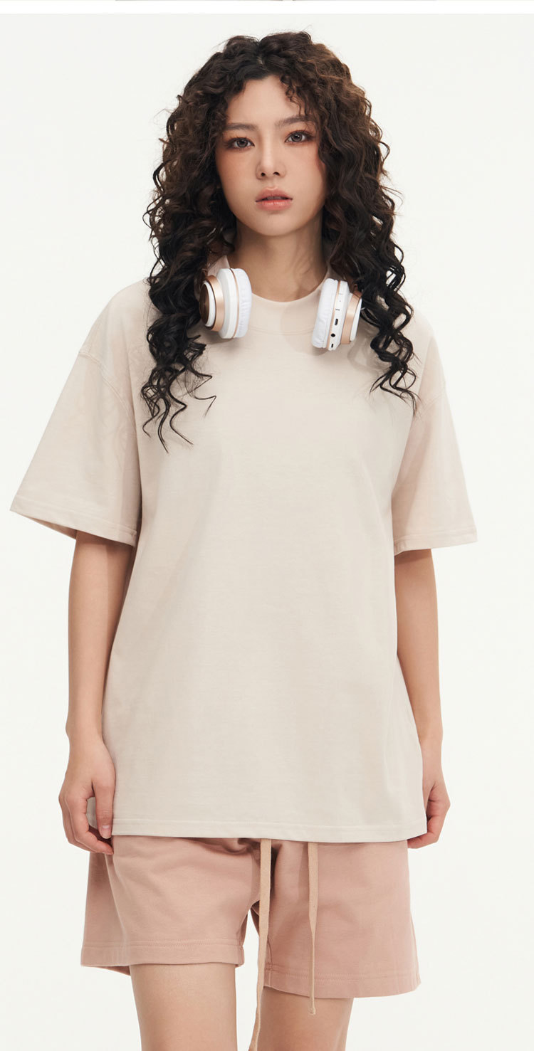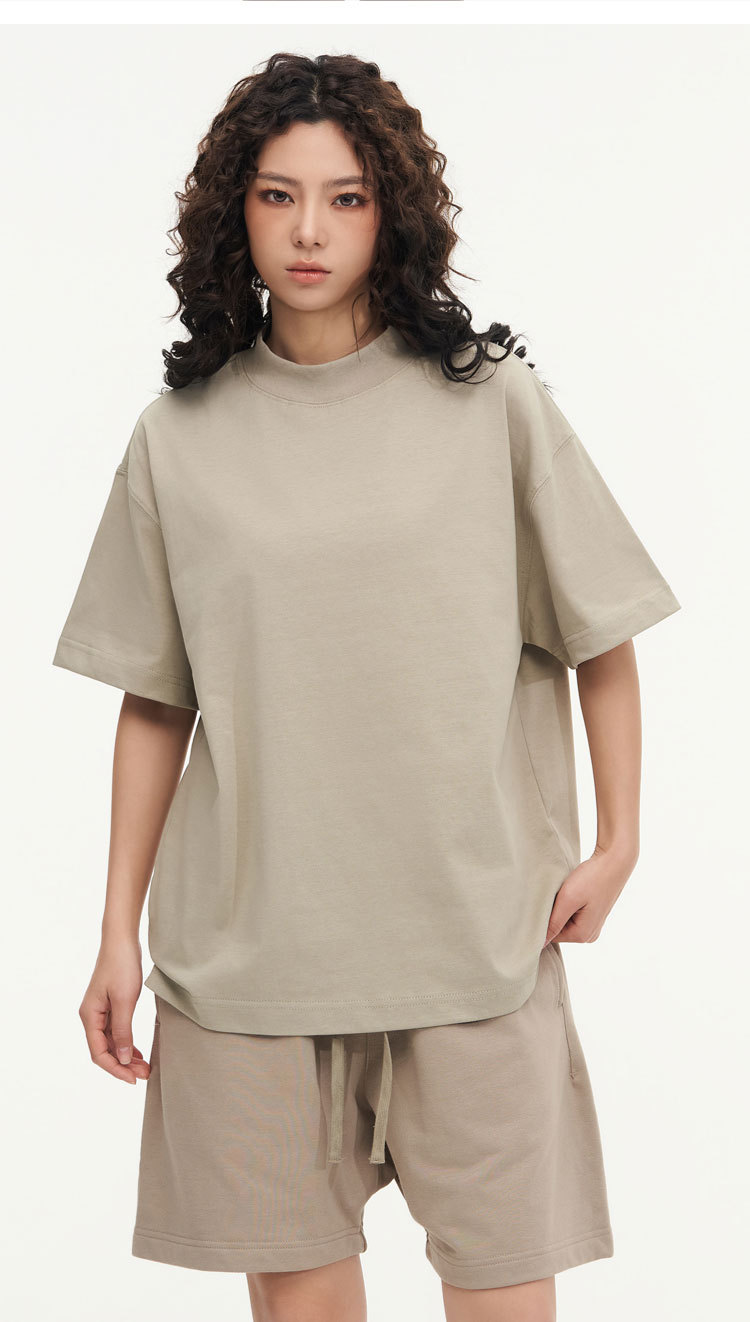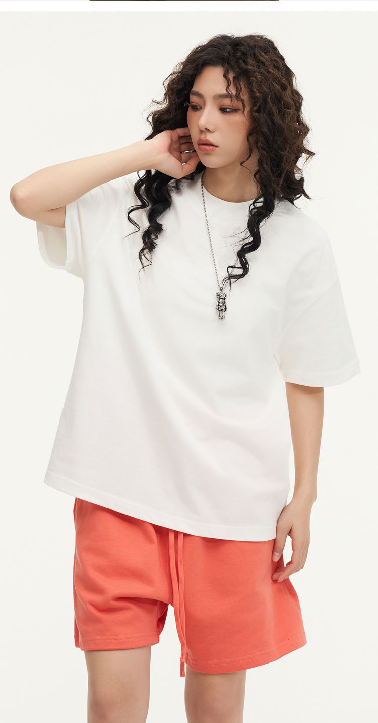 270g 오프 숄더 하이 넥 오프 숄더 슬리브 티셔츠 남성용 루즈 도매 드롭 배송 맞춤형 DIY 크로스 보더 유럽과 미국 트렌디 퓨어 코튼 와이드