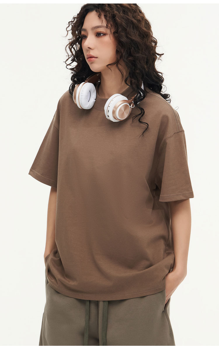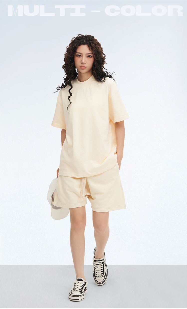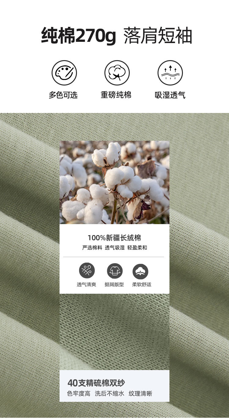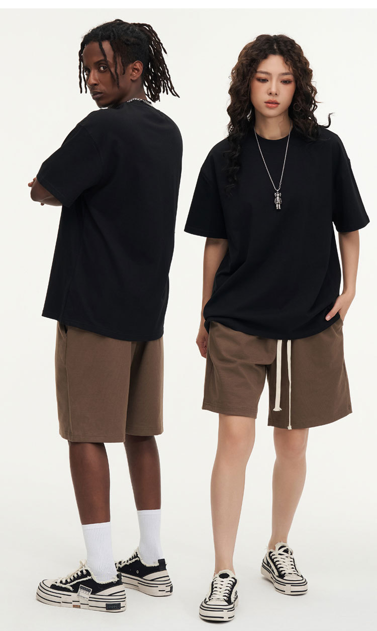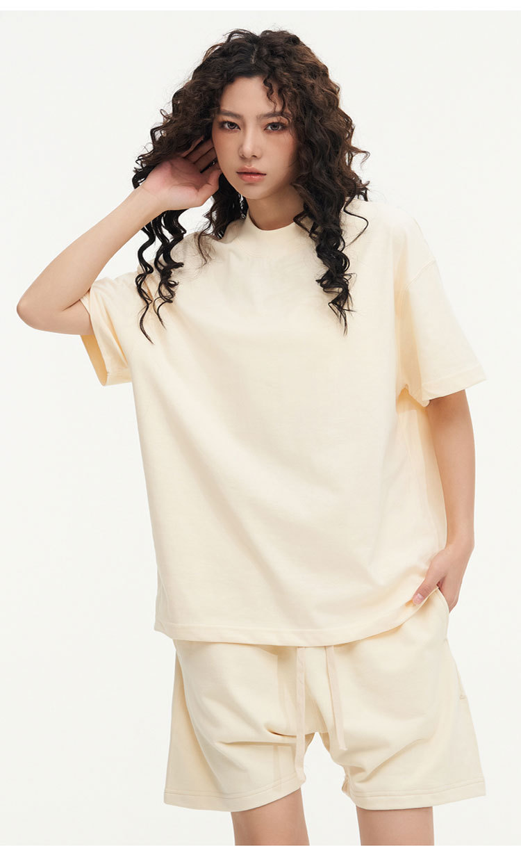 270g 오프 숄더 하이 넥 오프 숄더 슬리브 티셔츠 남성용 루즈 도매 드롭 배송 맞춤형 DIY 크로스 보더 유럽과 미국 트렌디 퓨어 코튼 와이드