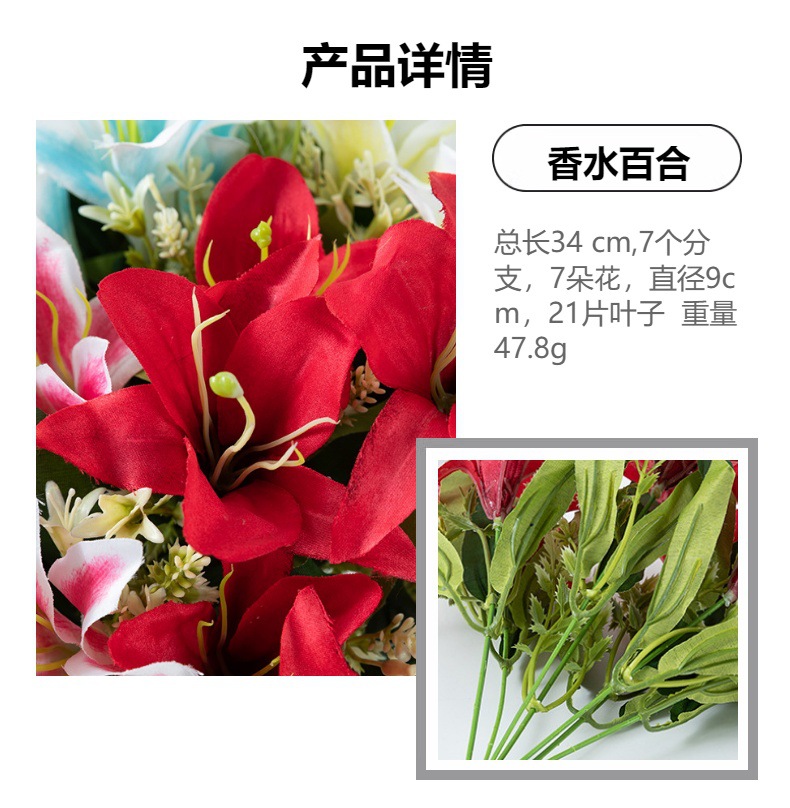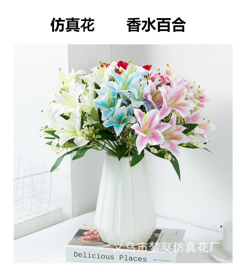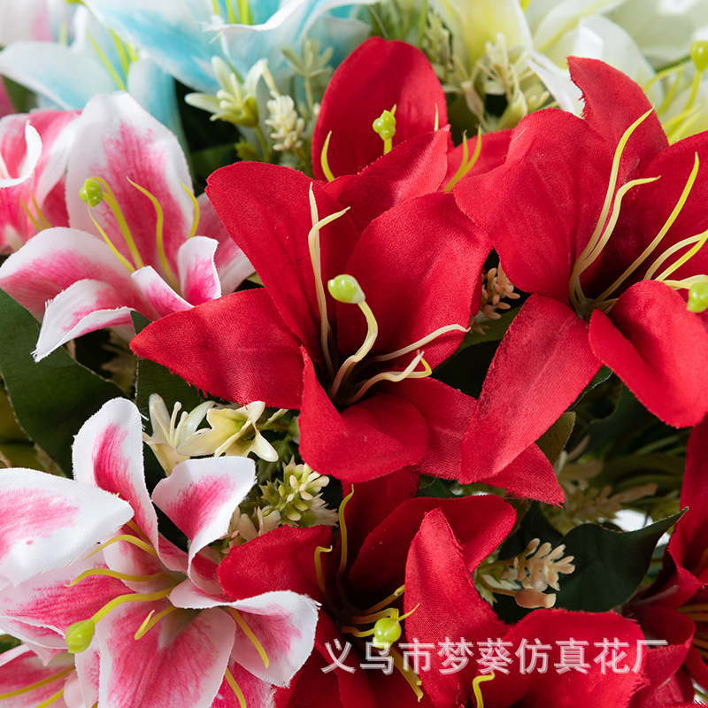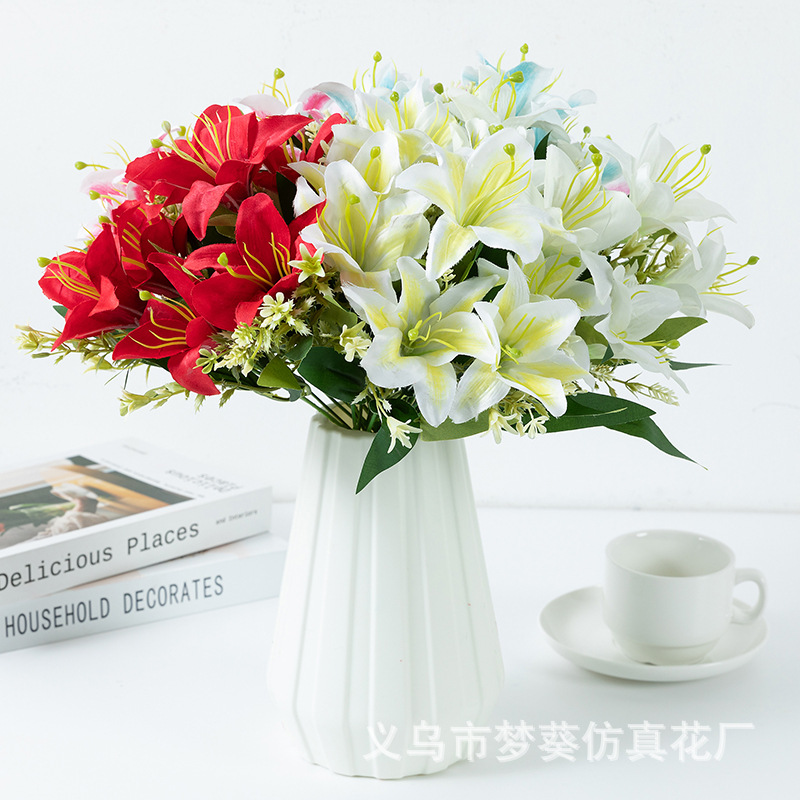 시뮬레이션 7 머리 백합 도매 결혼식 도로 꽃 줄 꽃 홈 장식 가짜 꽃 사진 소품 실크 꽃