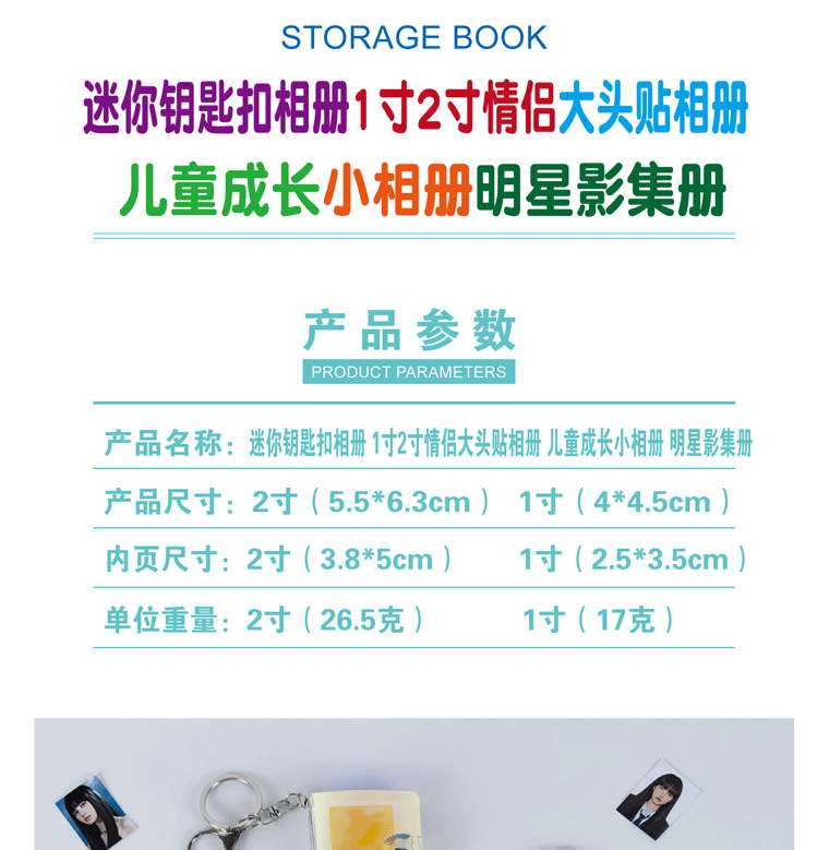 미니 키 체인 앨범 1 인치 2 인치 커플 빅 헤드 스티커 앨범 어린이 성장 작은 앨범 스타 앨범