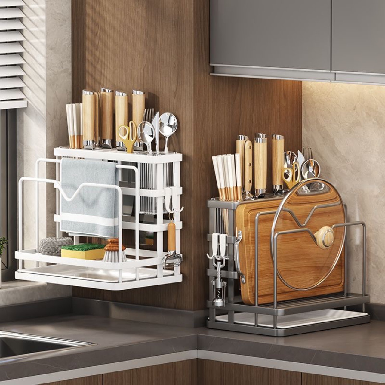 주방 나이프 스토리지 통합 랙 주방 나이프 홀더 젓가락 도마 스토리지 튜브 도마 드로잉 랙 벽 장착 스토리지 랙