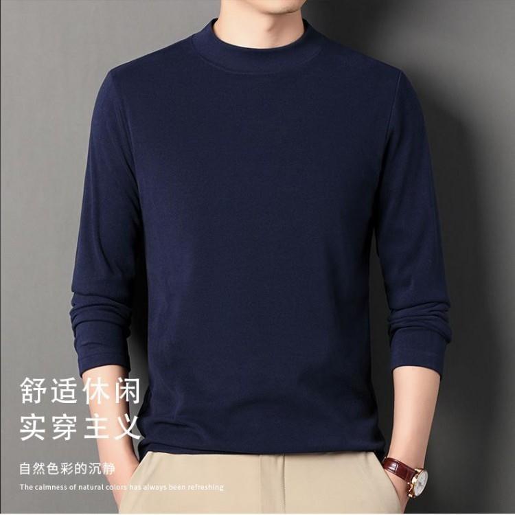 남성용 하프 터틀넥 기모 바텀 셔츠, 독일 벨벳 이너 긴팔 티셔츠, 미드 칼라 풀오버 스웨트 셔츠, 가을 겨울 양면 벨벳