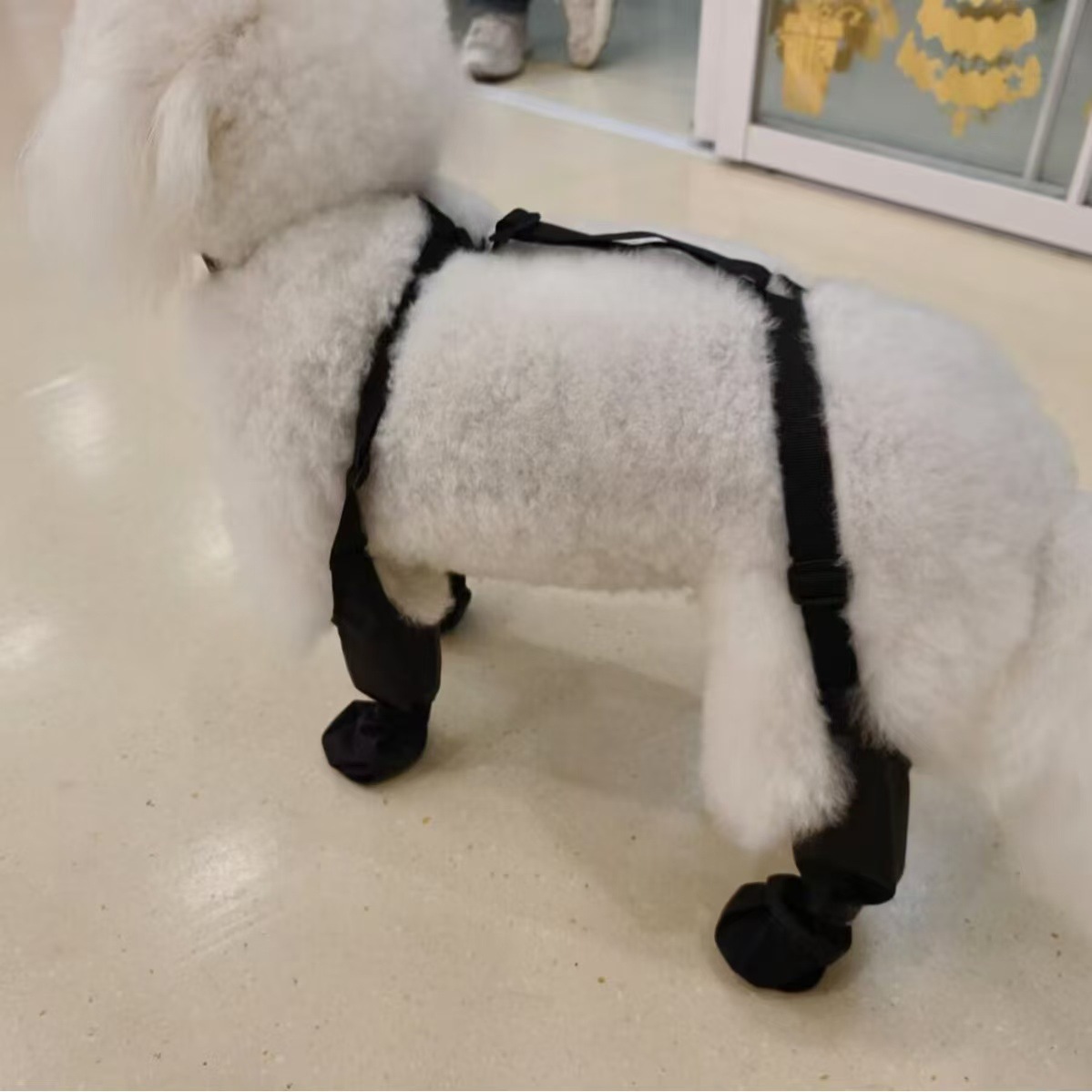 애완 동물 아웃 개 신발 사계절 통기성 개 신발 더러운 방수 비 신발 안티 드롭 결합 신발 스트랩 신발