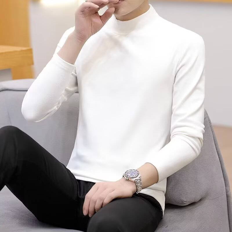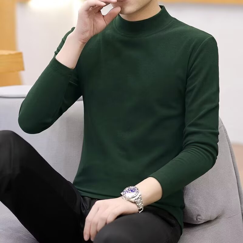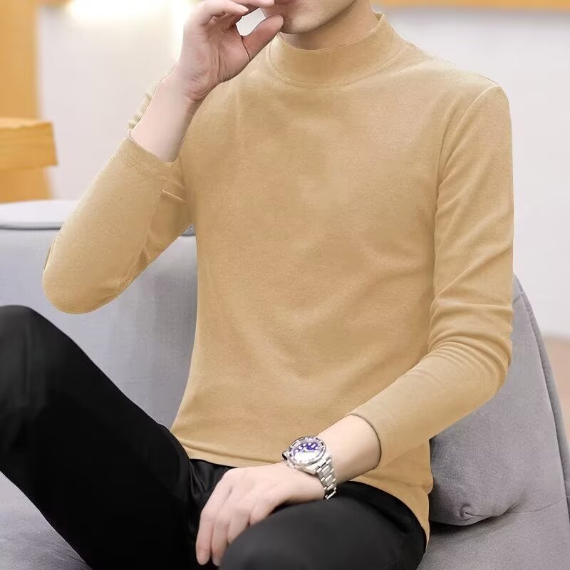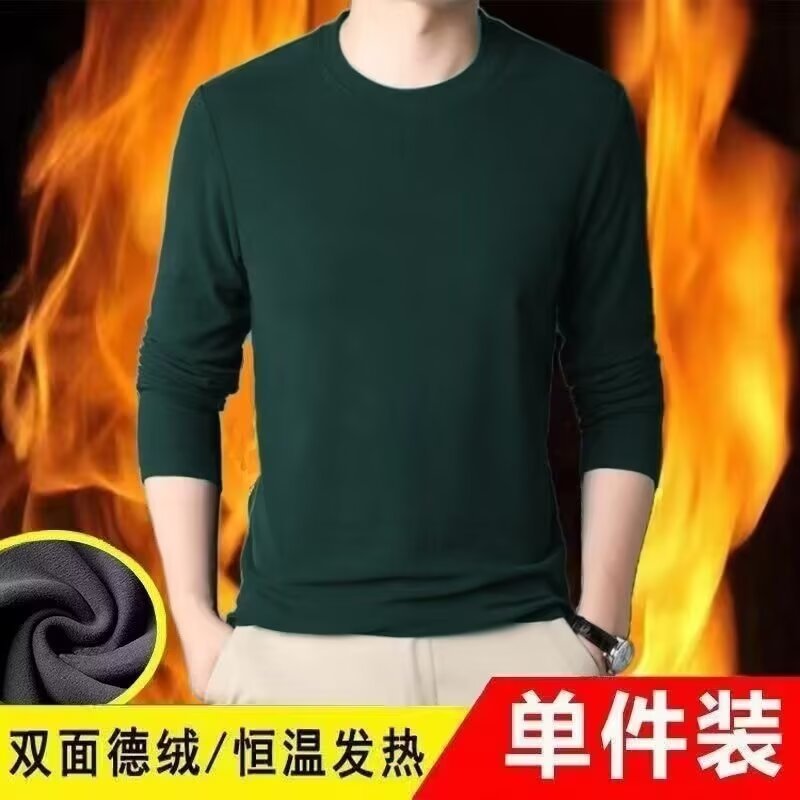 가을과 겨울 기모 따뜻한 긴팔 티셔츠 남자 라운드 넥 탑베이스 셔츠 가을 속옷 내부 슬림핏 올매치