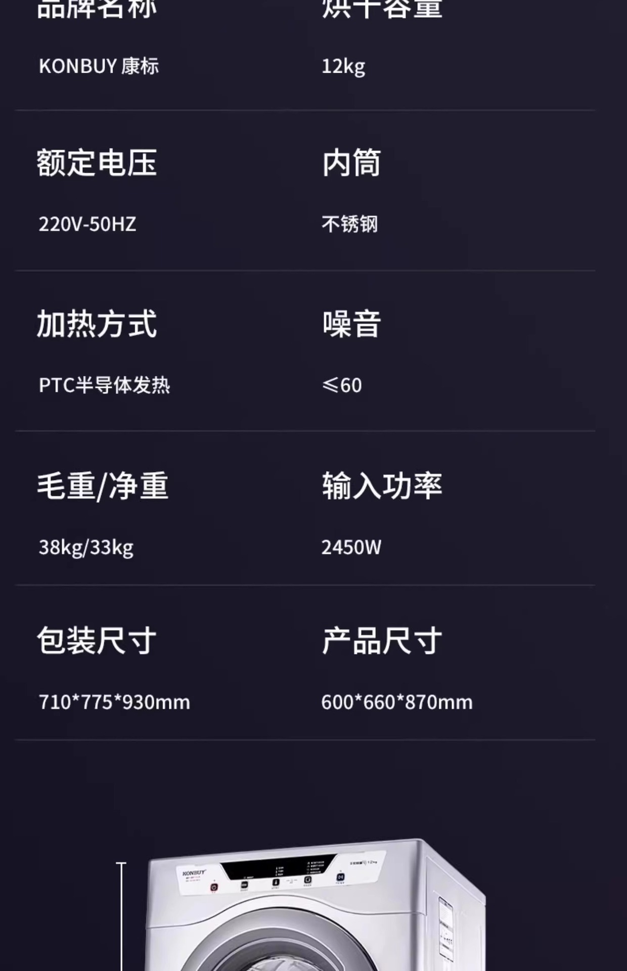 Kangbiao 건조기 상업용 대형 12kg 대용량 호텔 특수 수건 시트 퀼트 커버 건조기