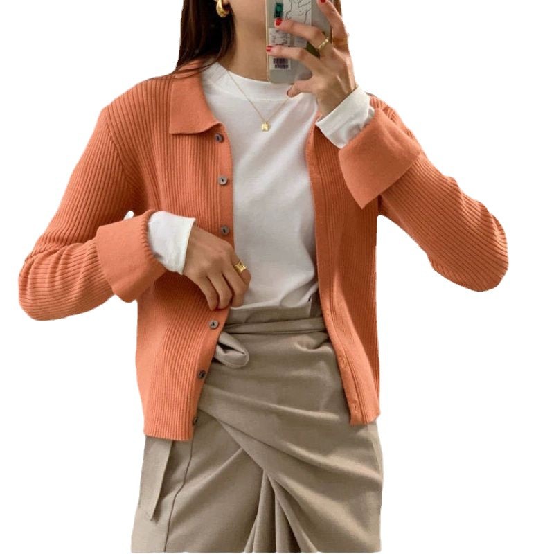 프랑스 옷깃 슬림 니트 솔리드 컬러 긴팔 카디건 여성을위한 새로운 내부 스웨터 슬림핏 베이스 스웨터 탑