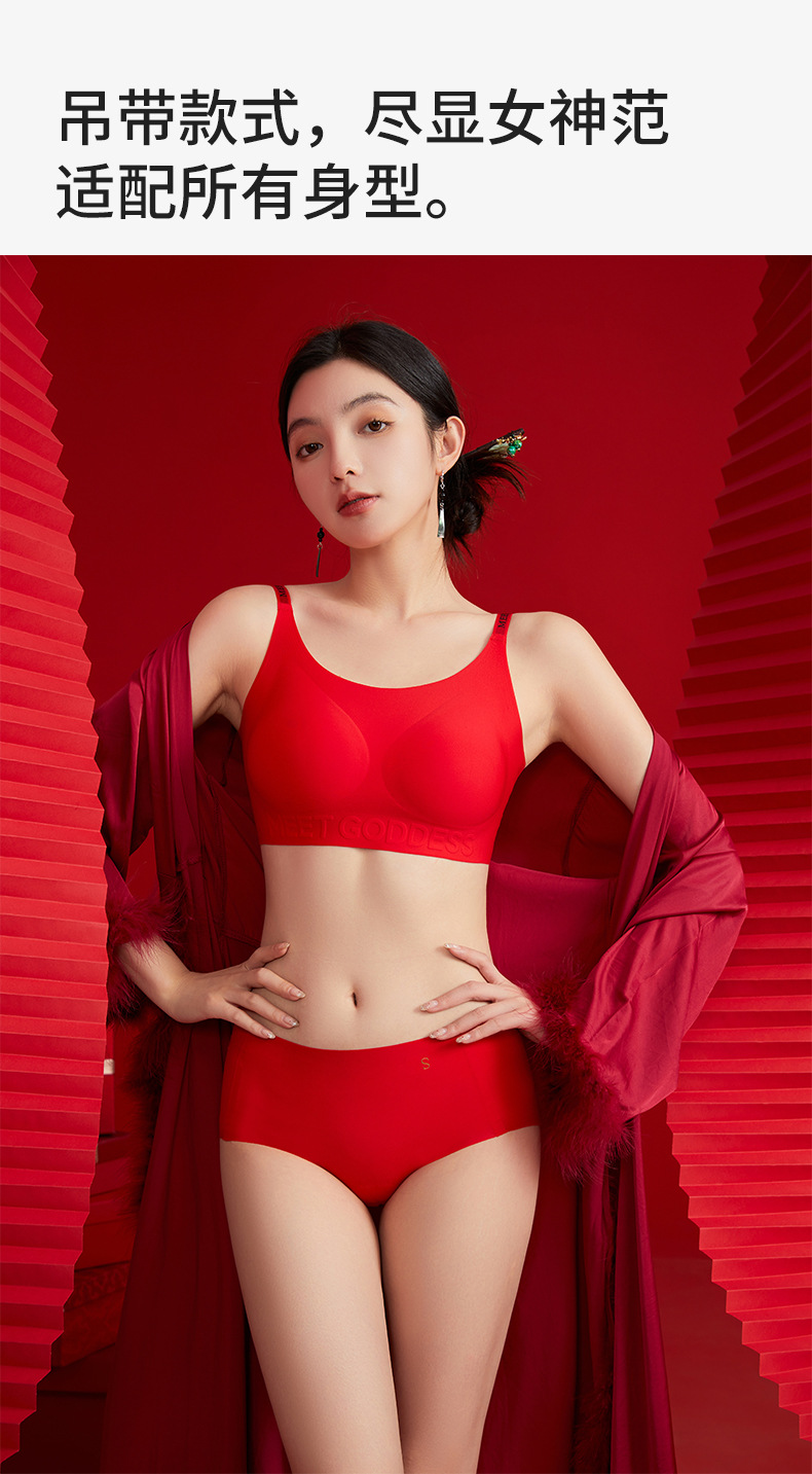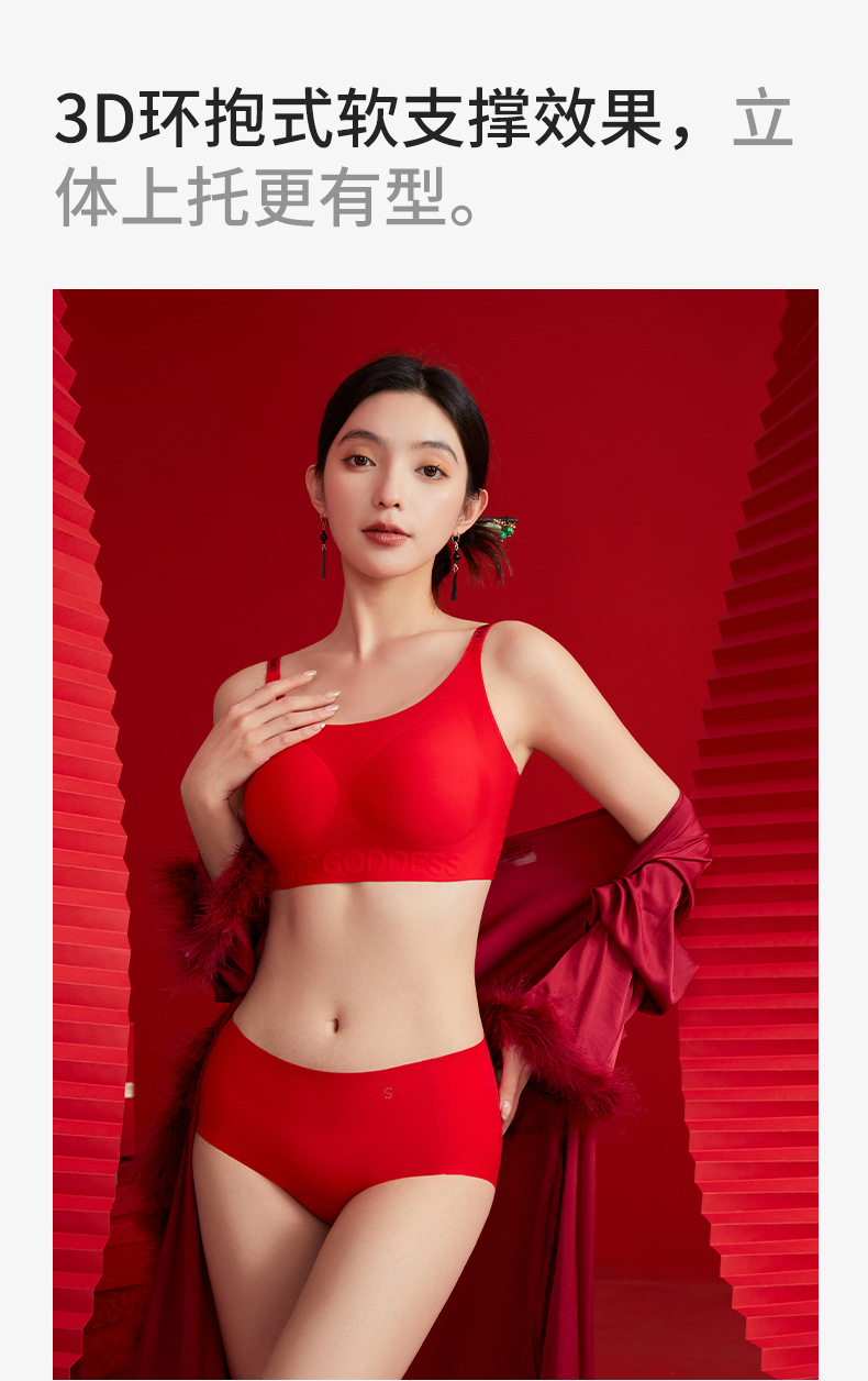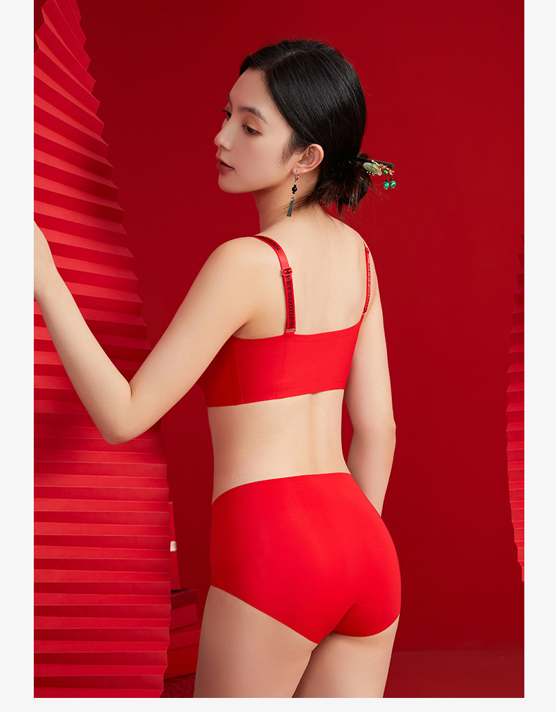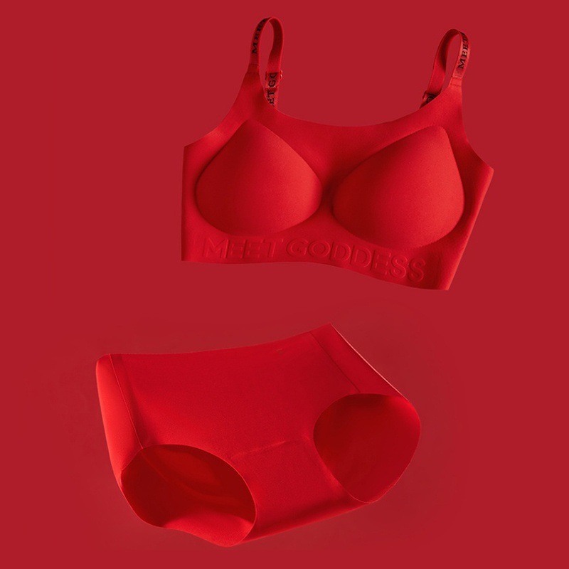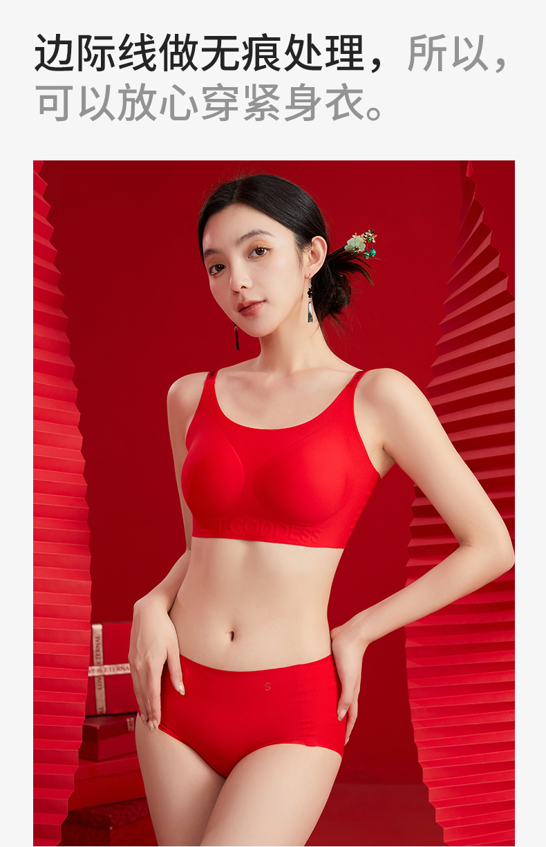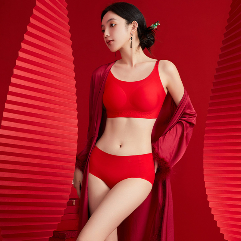 빅 레드 여성의 tracless 속옷 연못 스틸 링 젤리 스트립 브라 세트 웨딩 신부 속옷 팬티