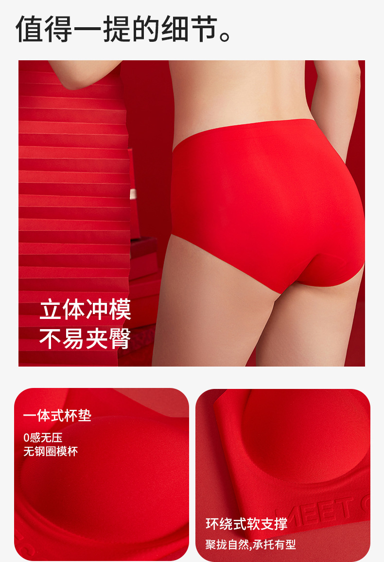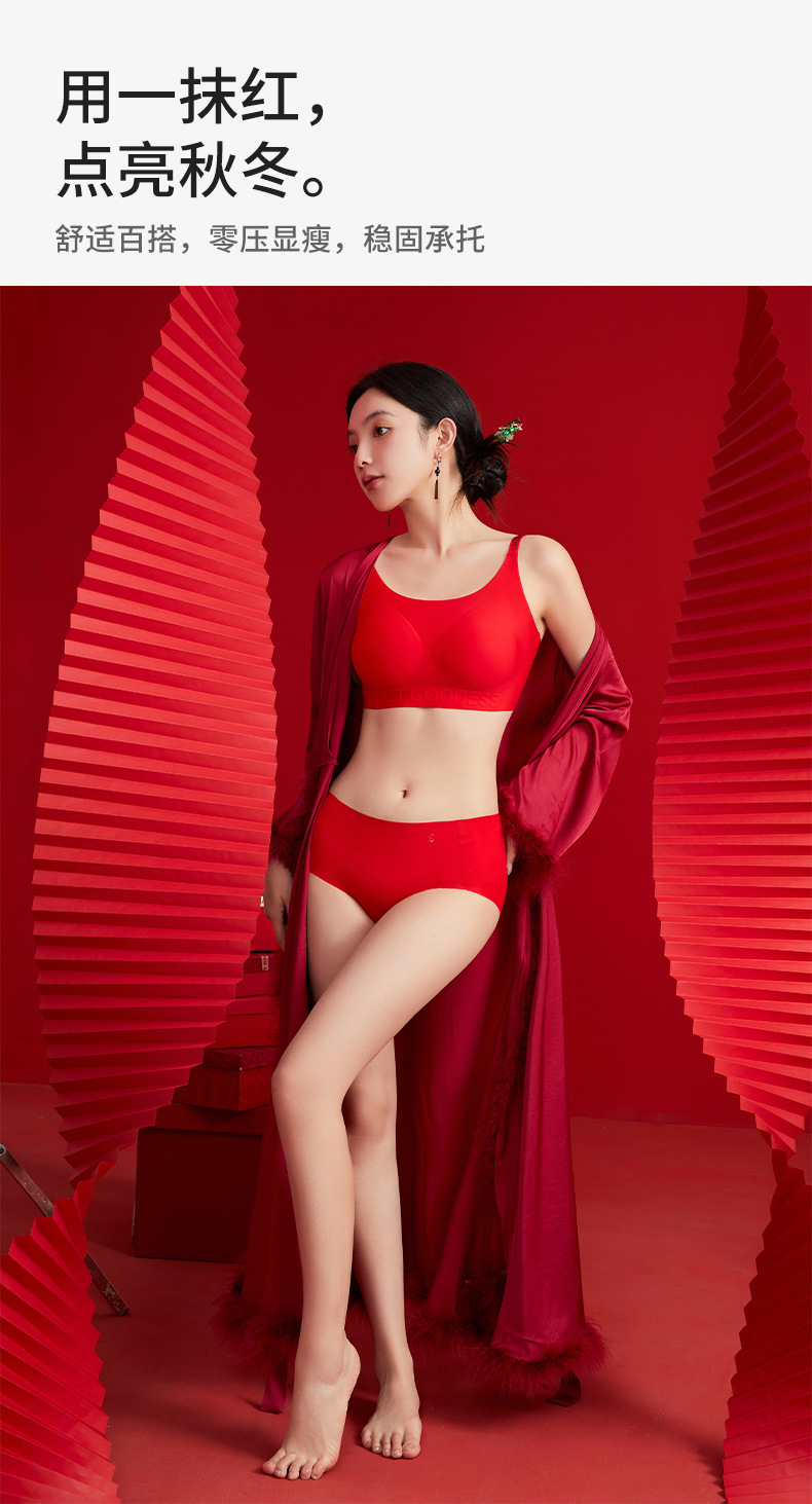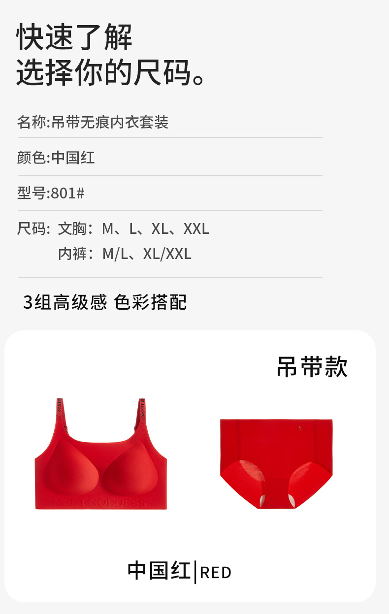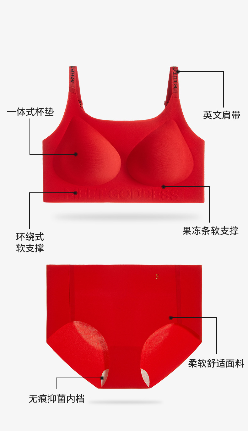 빅 레드 여성의 tracless 속옷 연못 스틸 링 젤리 스트립 브라 세트 웨딩 신부 속옷 팬티