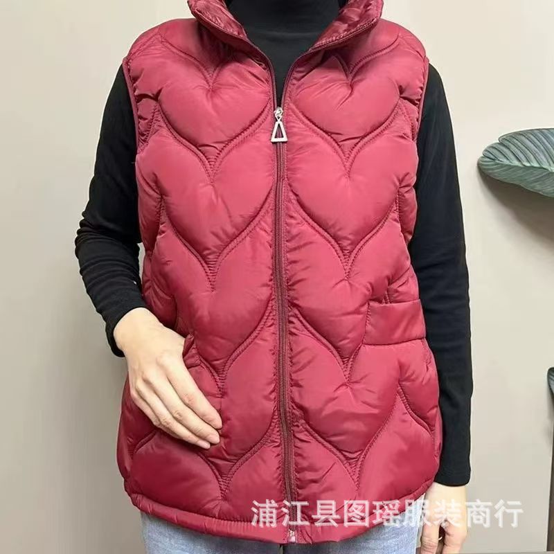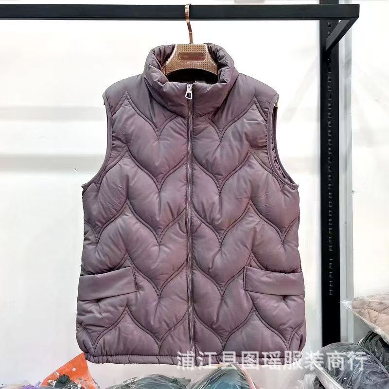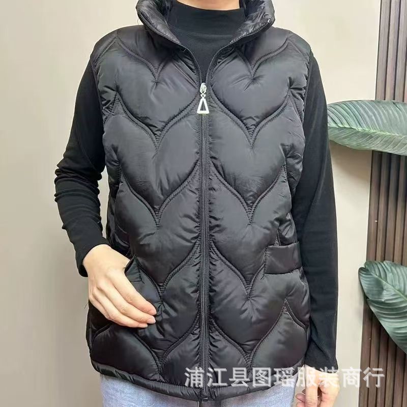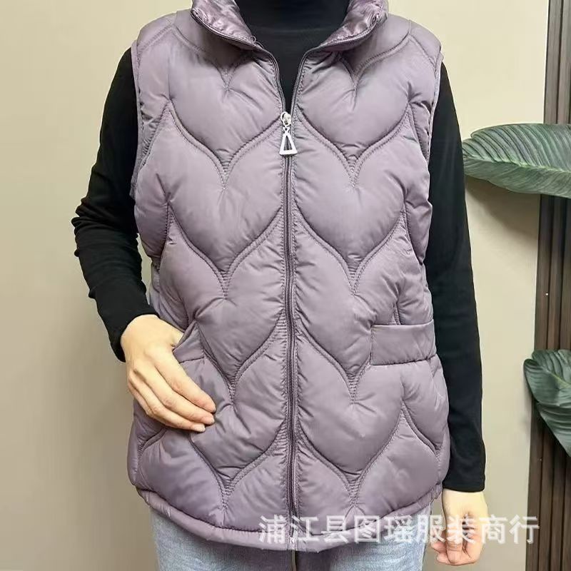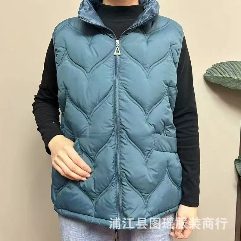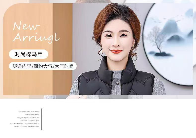 2025 가을 겨울 얇은 다운 코튼 조끼 엄마용 대형 사이즈 스탠드 칼라 코튼 조끼 중년 여성용 상의 조끼 도매