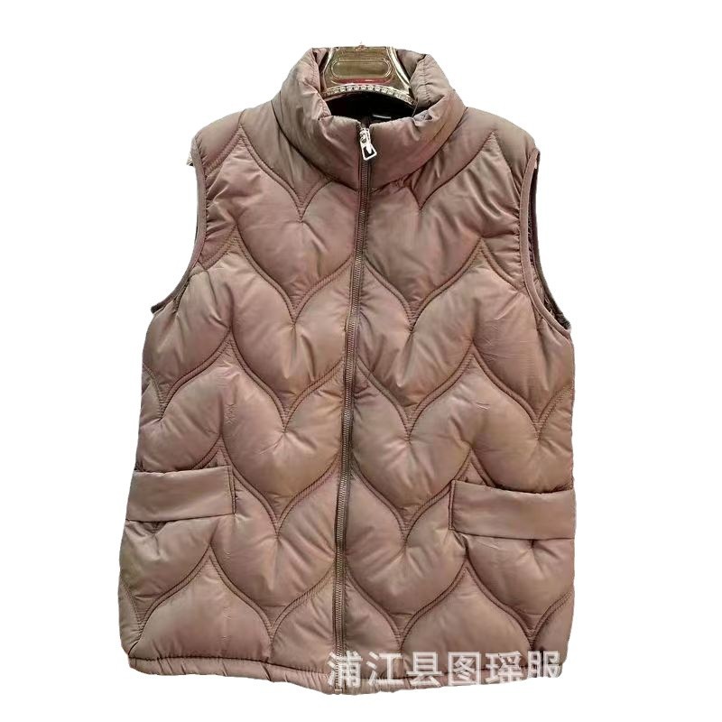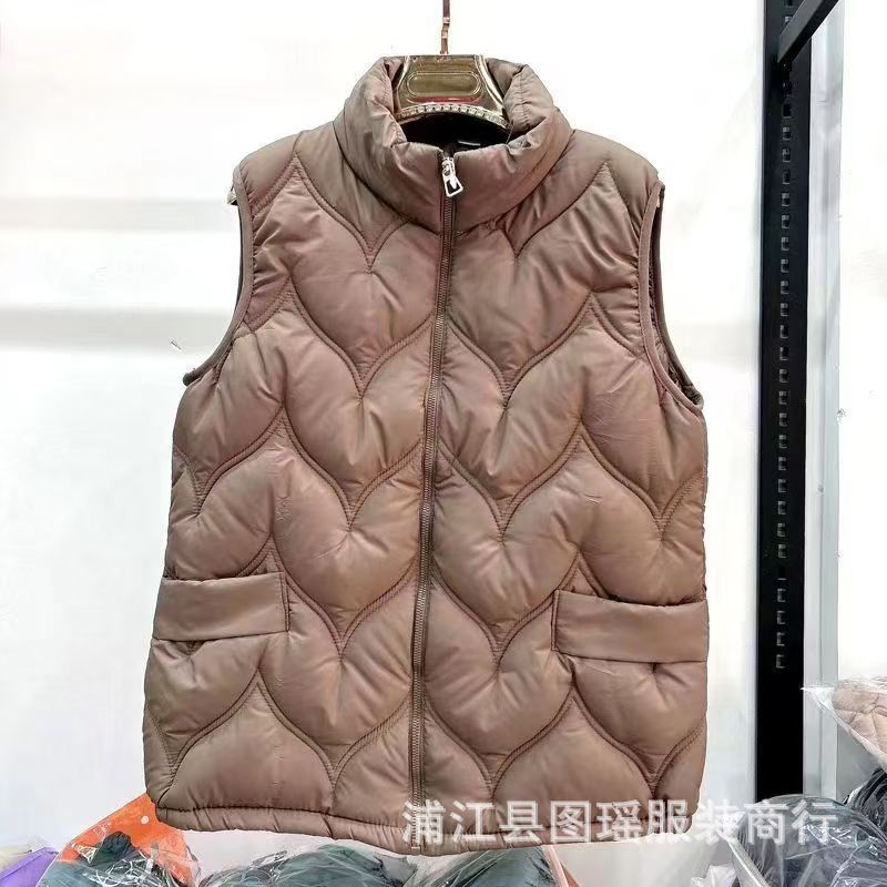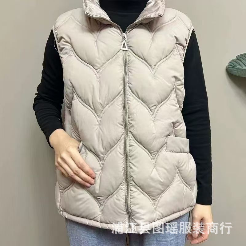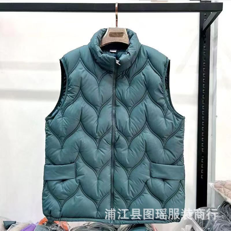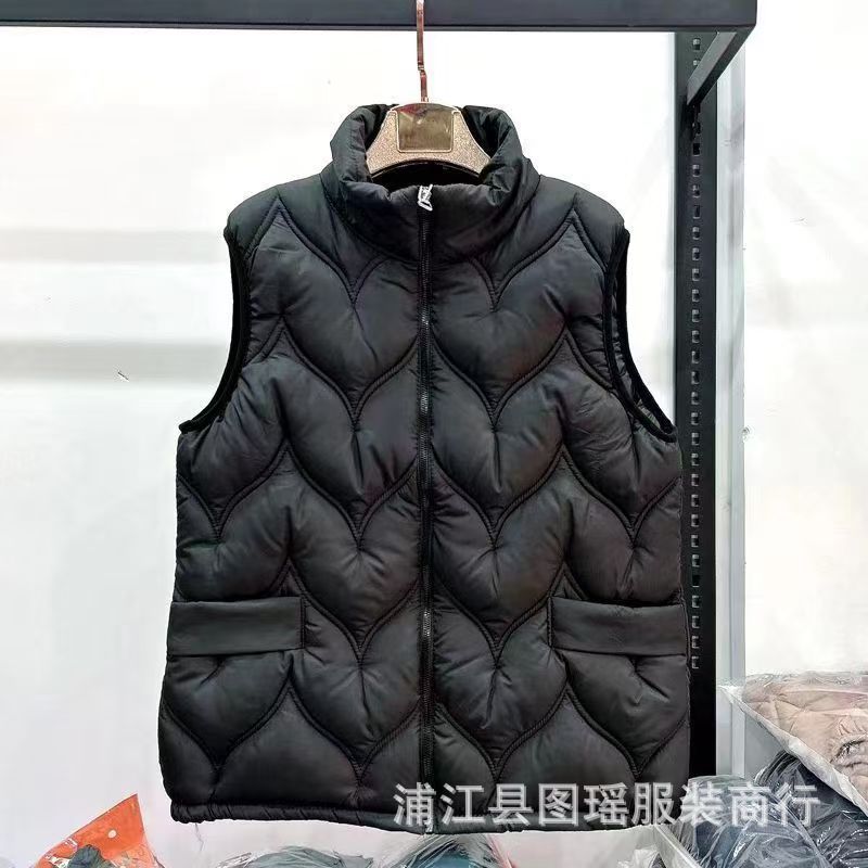 2025 가을 겨울 얇은 다운 코튼 조끼 엄마용 대형 사이즈 스탠드 칼라 코튼 조끼 중년 여성용 상의 조끼 도매