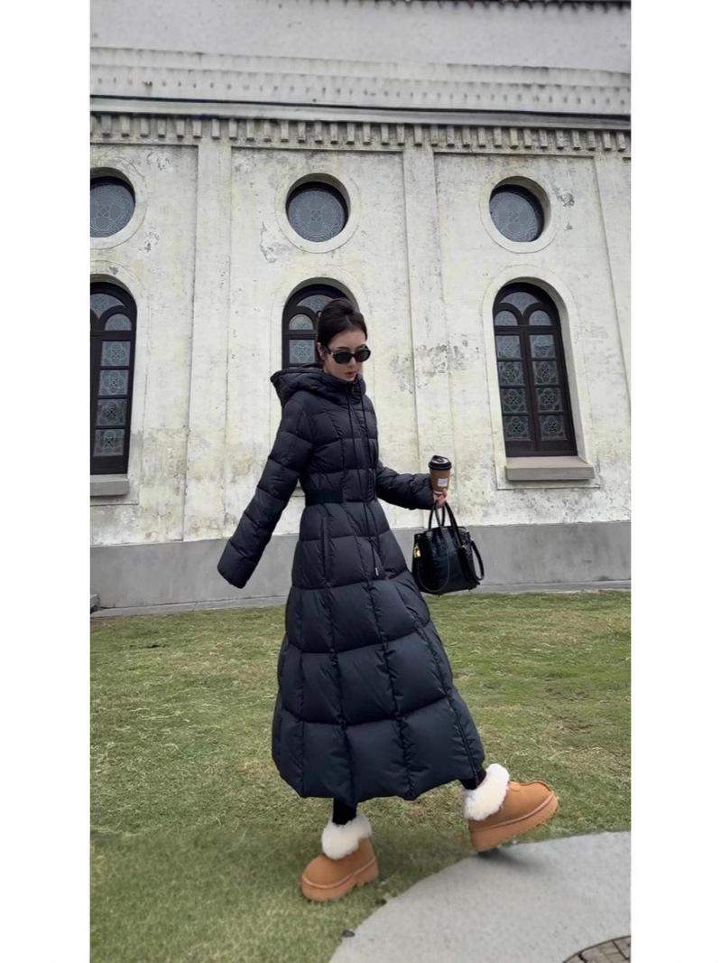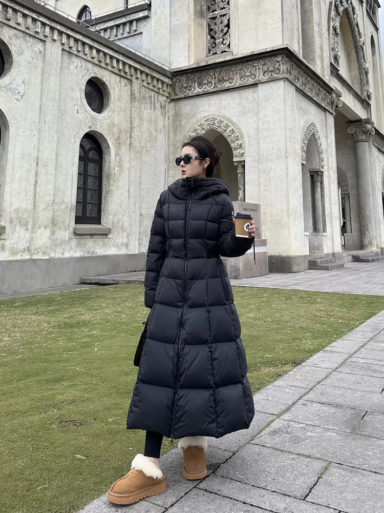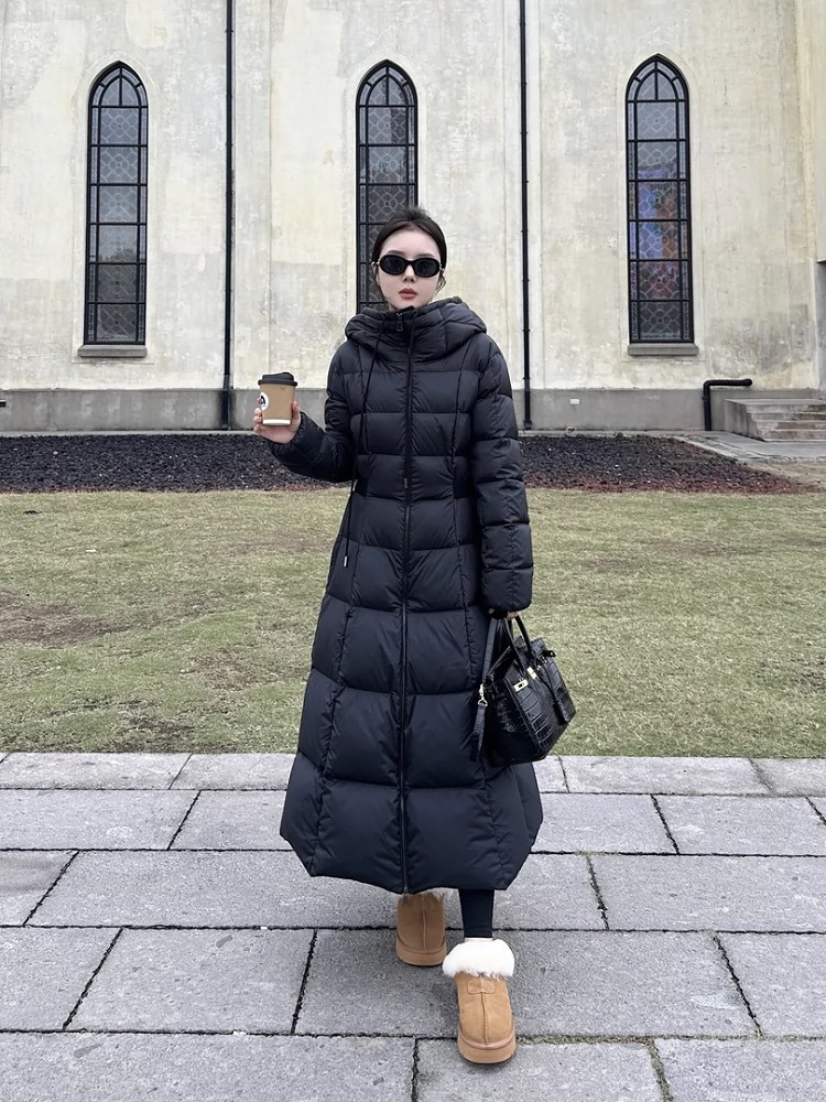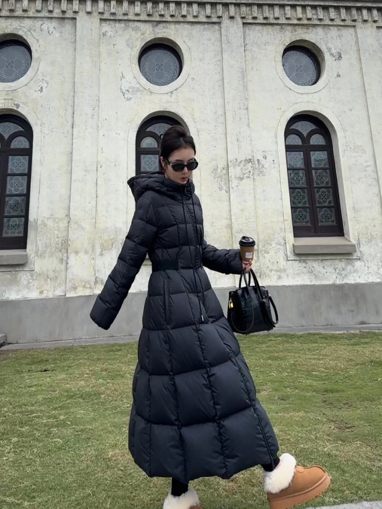 몽자 두꺼운 허리 조절 가능한 여성용 롱 다운 재킷, 무릎부터 발목까지, 슬림핏, 여성스러운 2025년 신상 코트