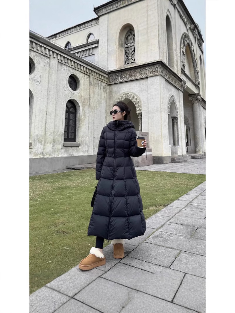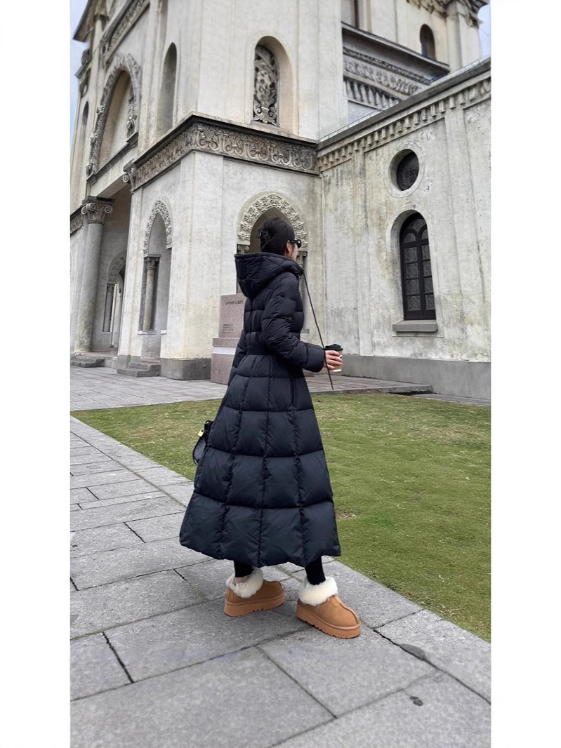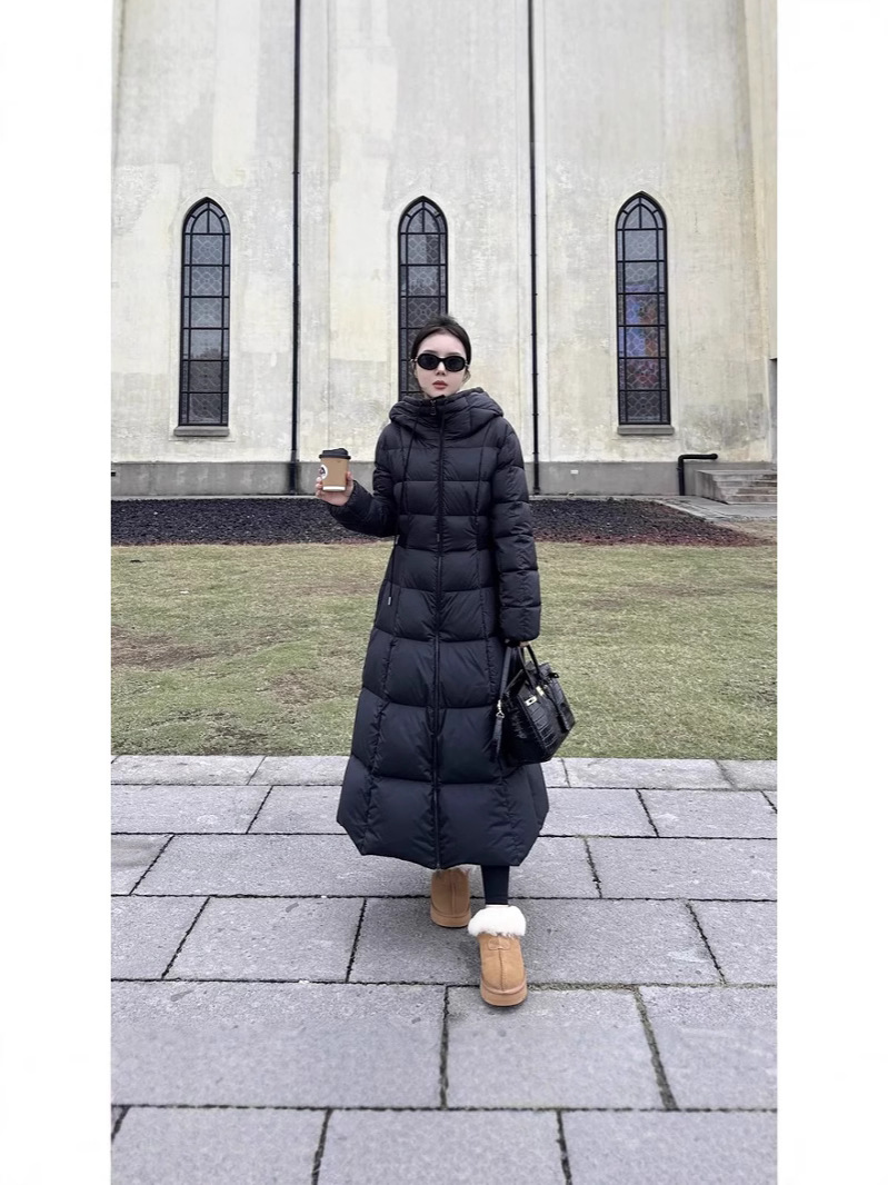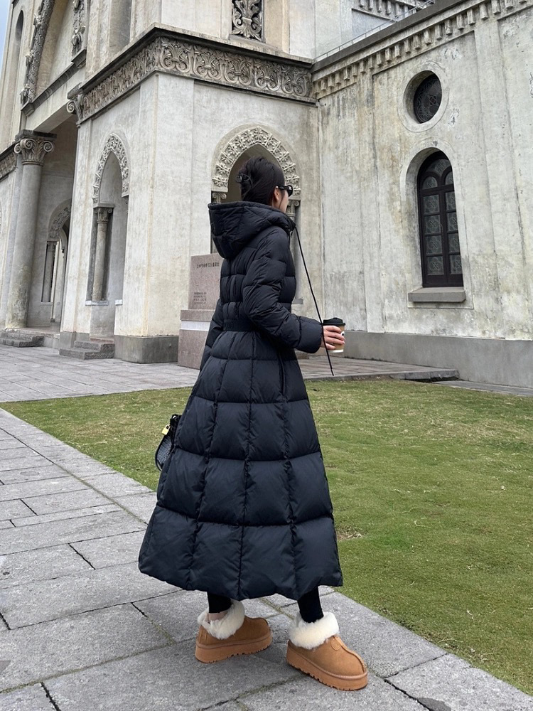 몽자 두꺼운 허리 조절 가능한 여성용 롱 다운 재킷, 무릎부터 발목까지, 슬림핏, 여성스러운 2025년 신상 코트