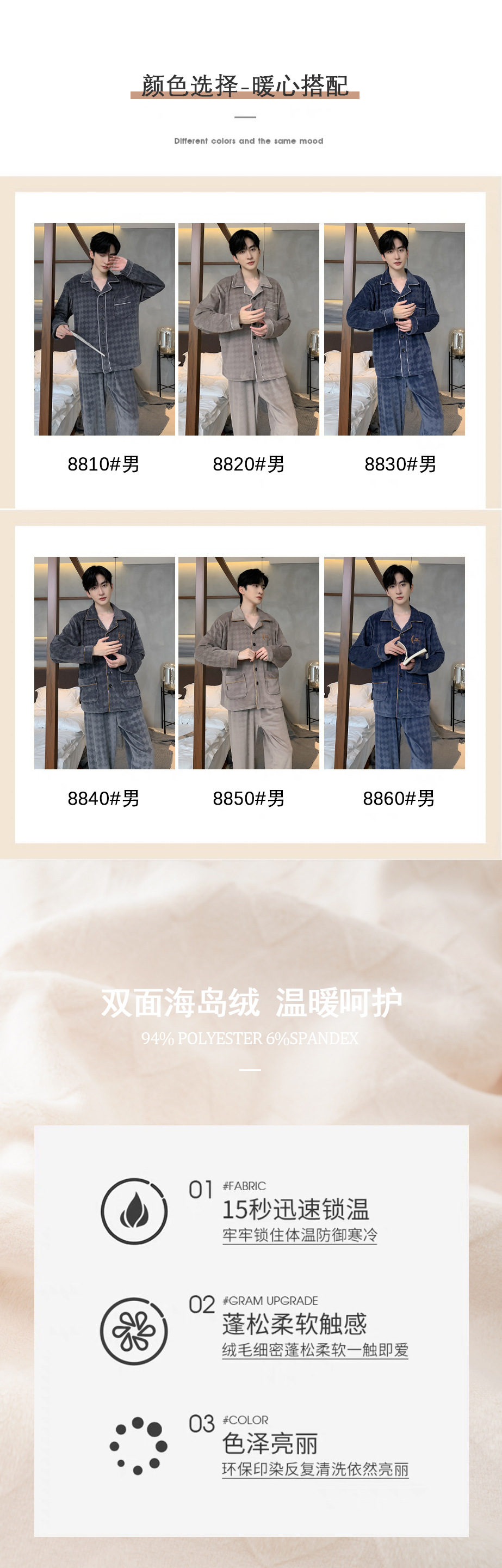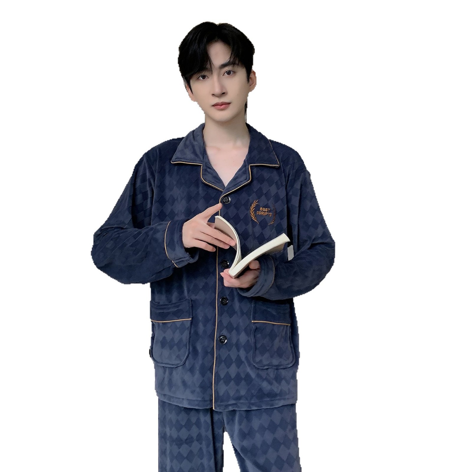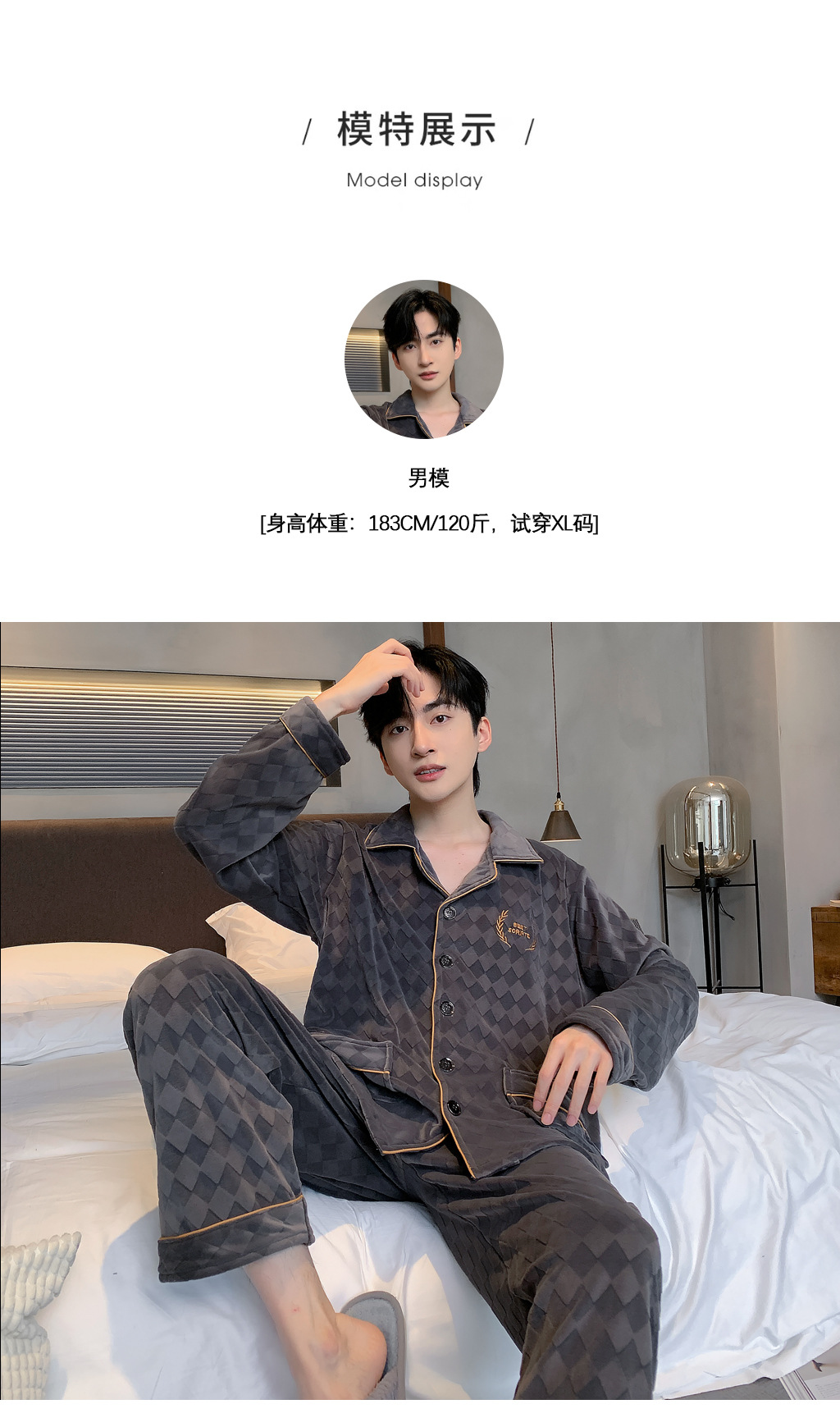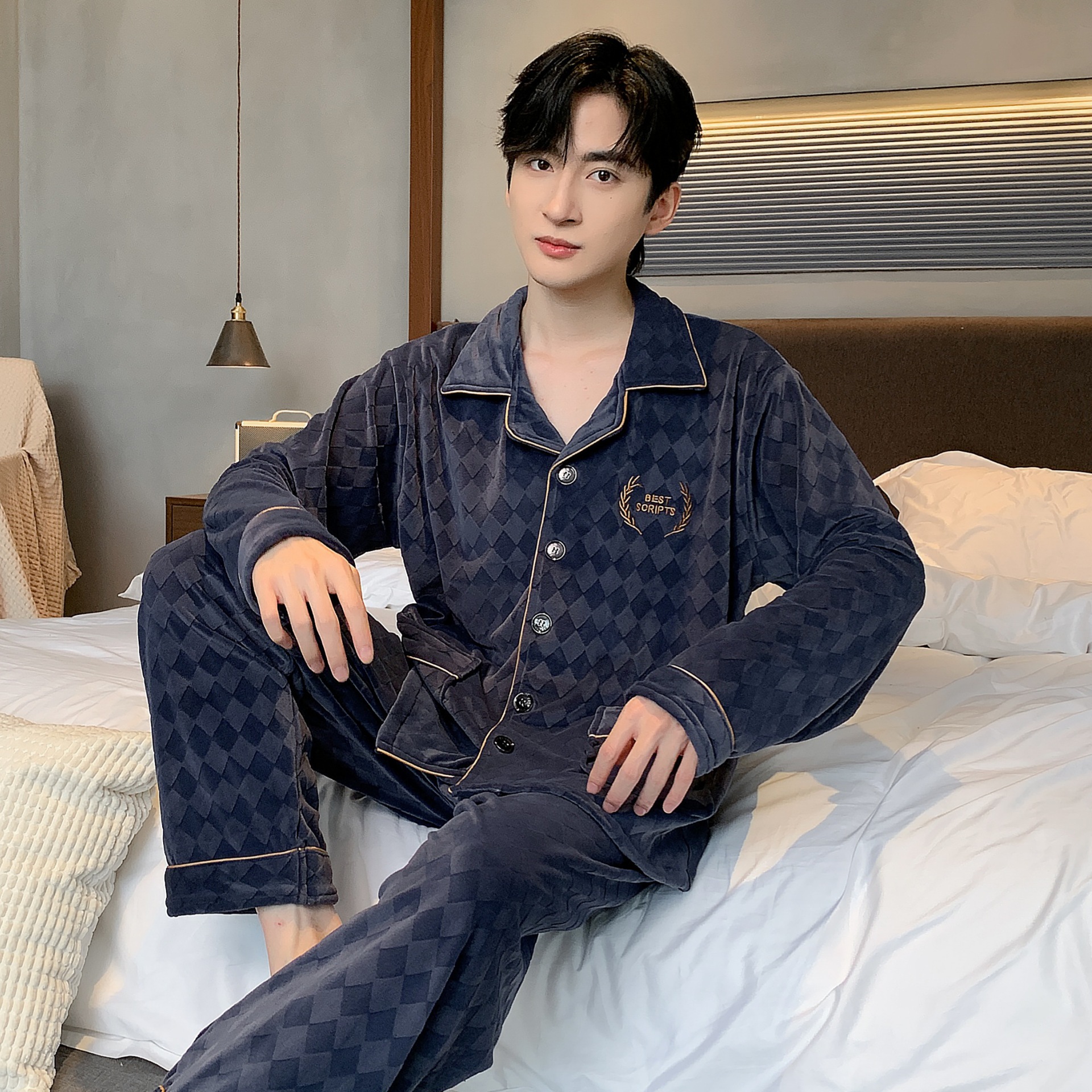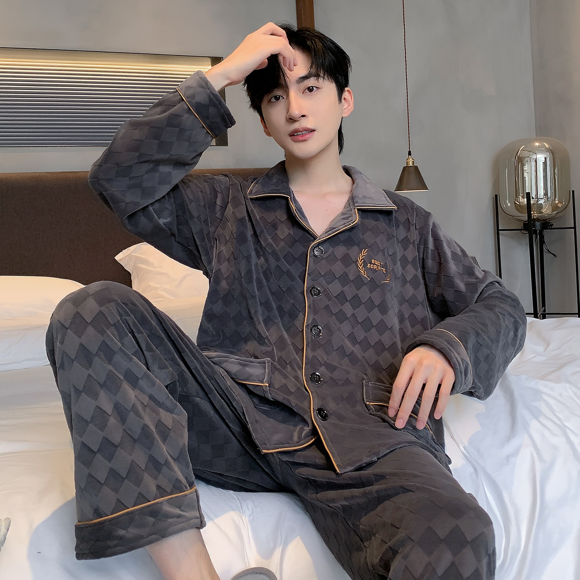 신상품 남성용 아일랜드 벨벳 잠옷 가을 겨울용 플러스 벨벳 보온 루즈핏 코랄 벨벳 얇은 벨벳 외출복 겸용 홈웨어