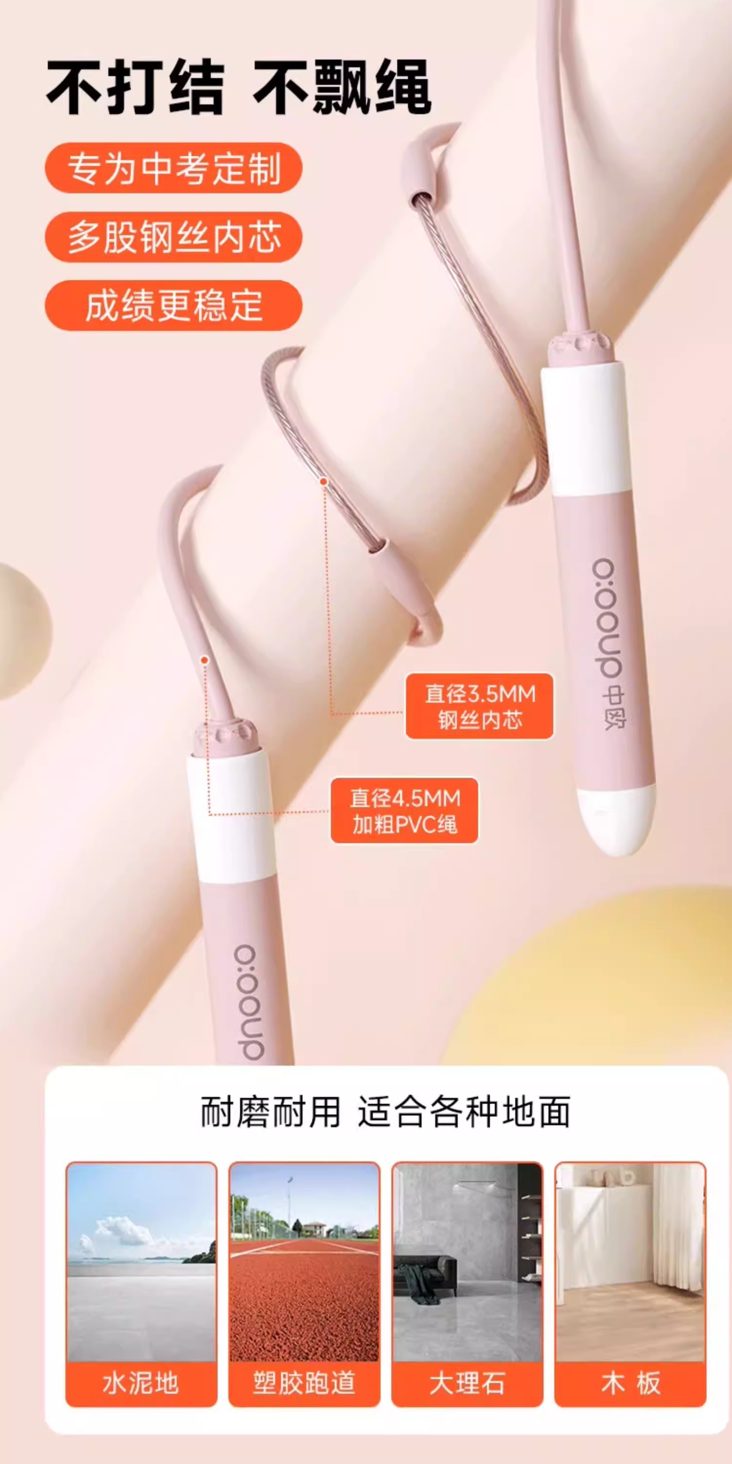 스무스 스타일 [와이어 로프 + 고속 베어링] 로프 길이 3m 조절 가능/사쿠라 핑크