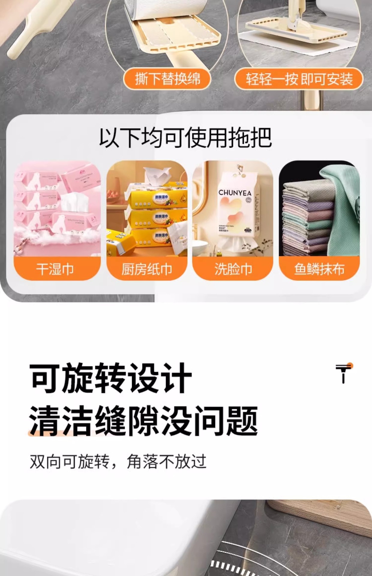 데스크탑 얼굴 수건 걸레 다기능 미니 게으른 클립 헝겊 2024 새로운 핸즈프리 플랫 걸레