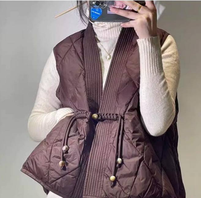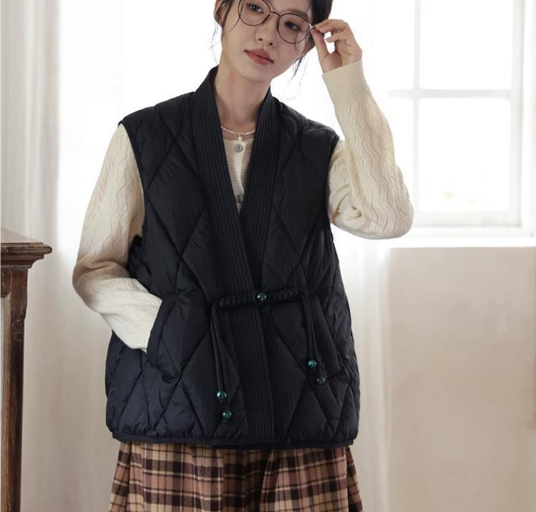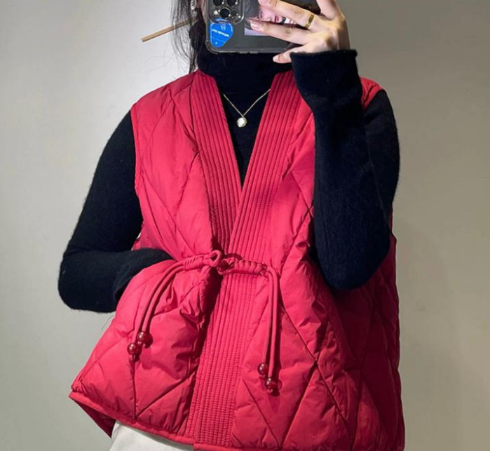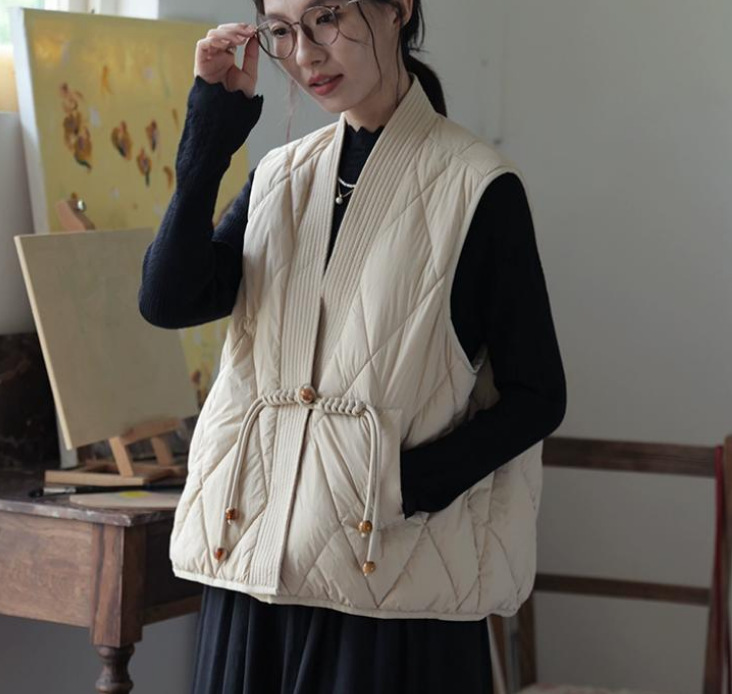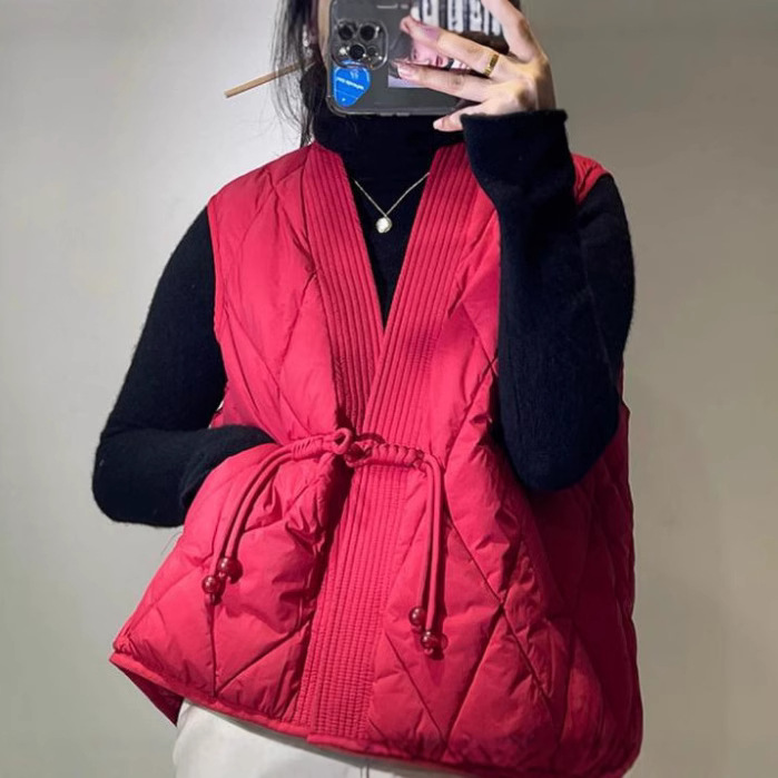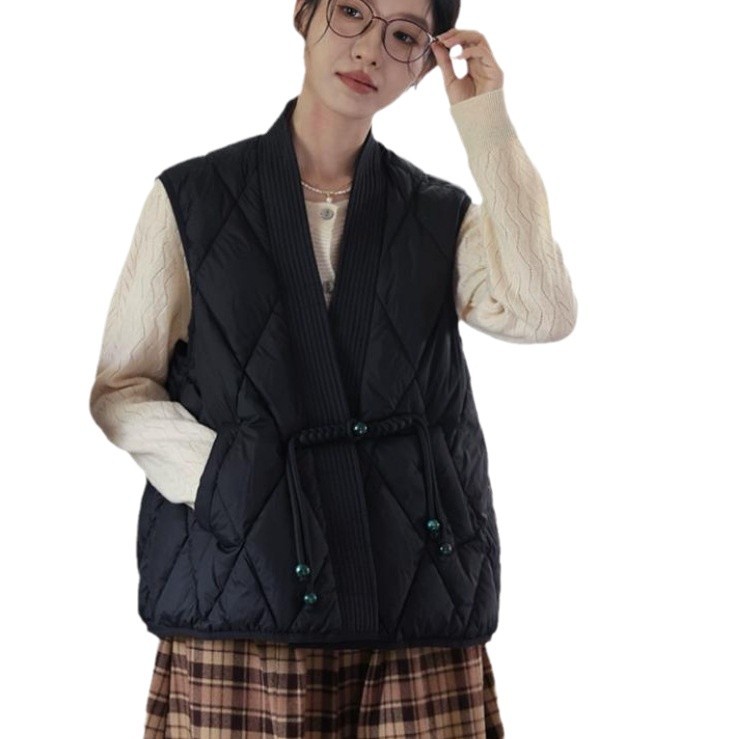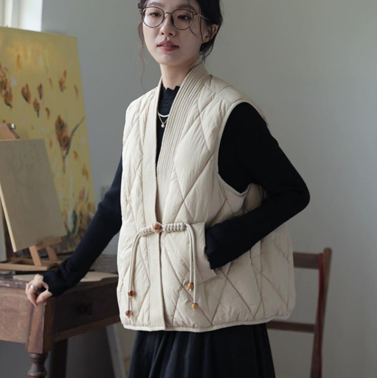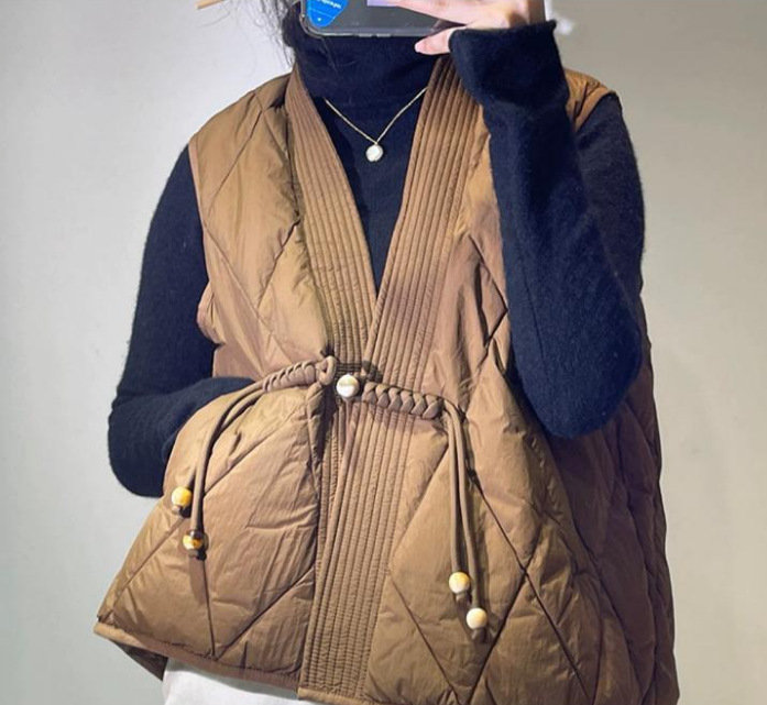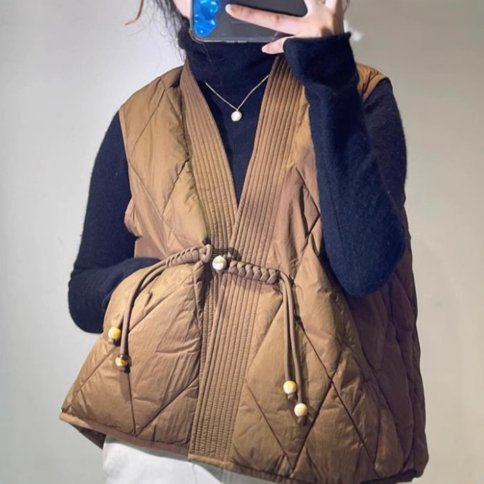 새로운 빈티지 단순한 독특한 V 넥 싱글 버클 다목적 느슨한 민소매 다운 조끼